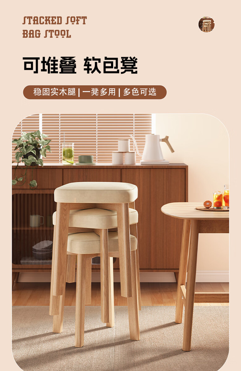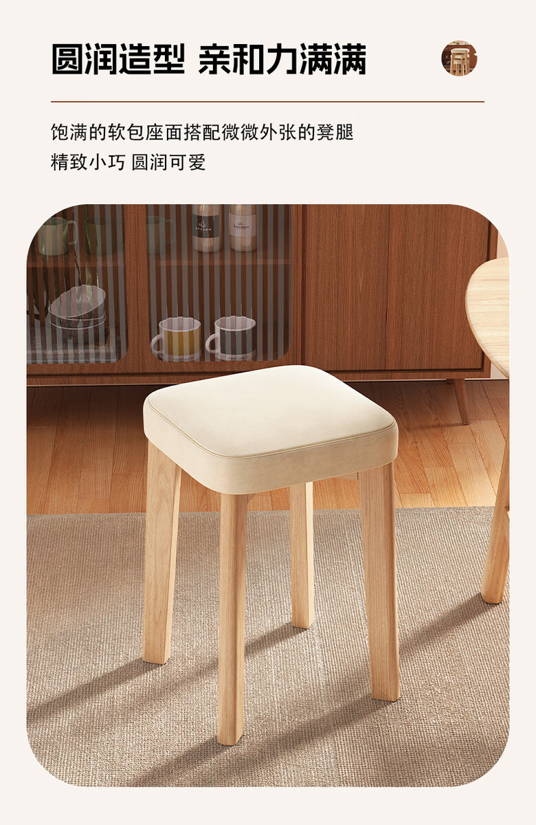 Fantasy solid wood dining chairs stackable soft-covered stools household dining tables and chairs simple wooden dressing stools chairs leisure chairs flat soft-covered walnut + dark green - oil wax leather solid wood legs