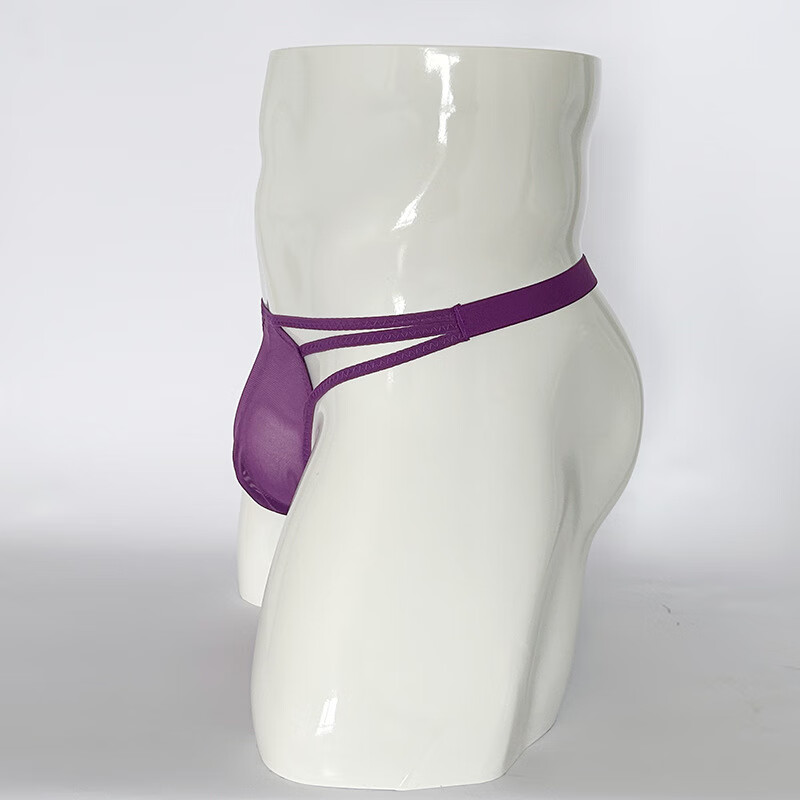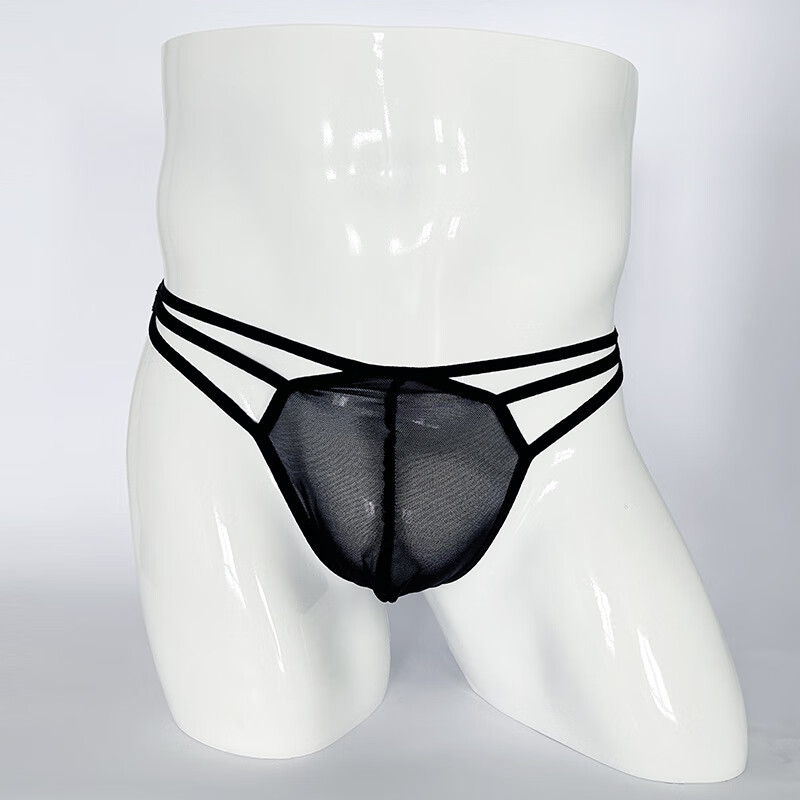 Men's elastic thong transparent sexy mesh underwear hollow underwear gay sexy suit hollow strap 1 black