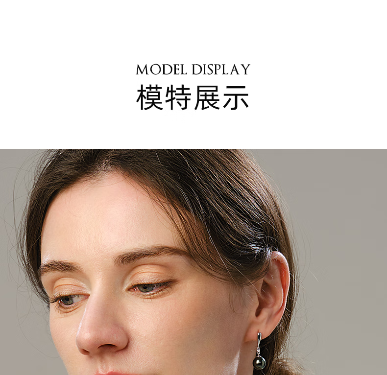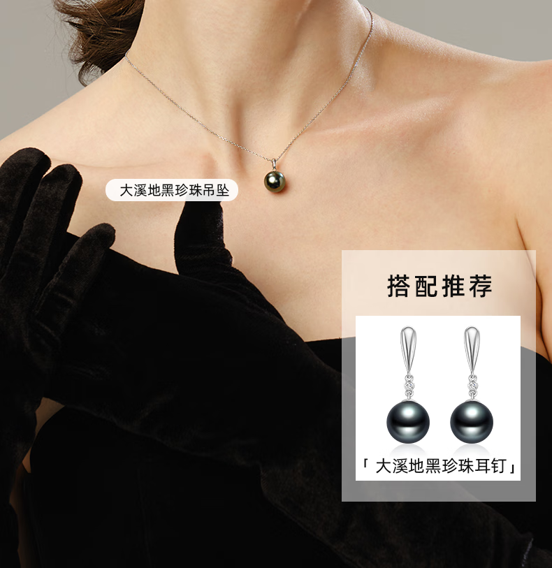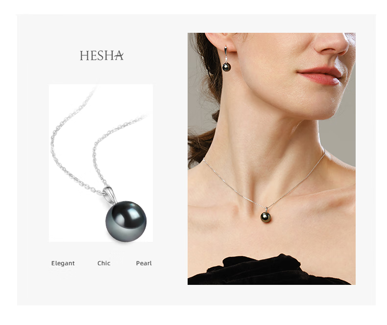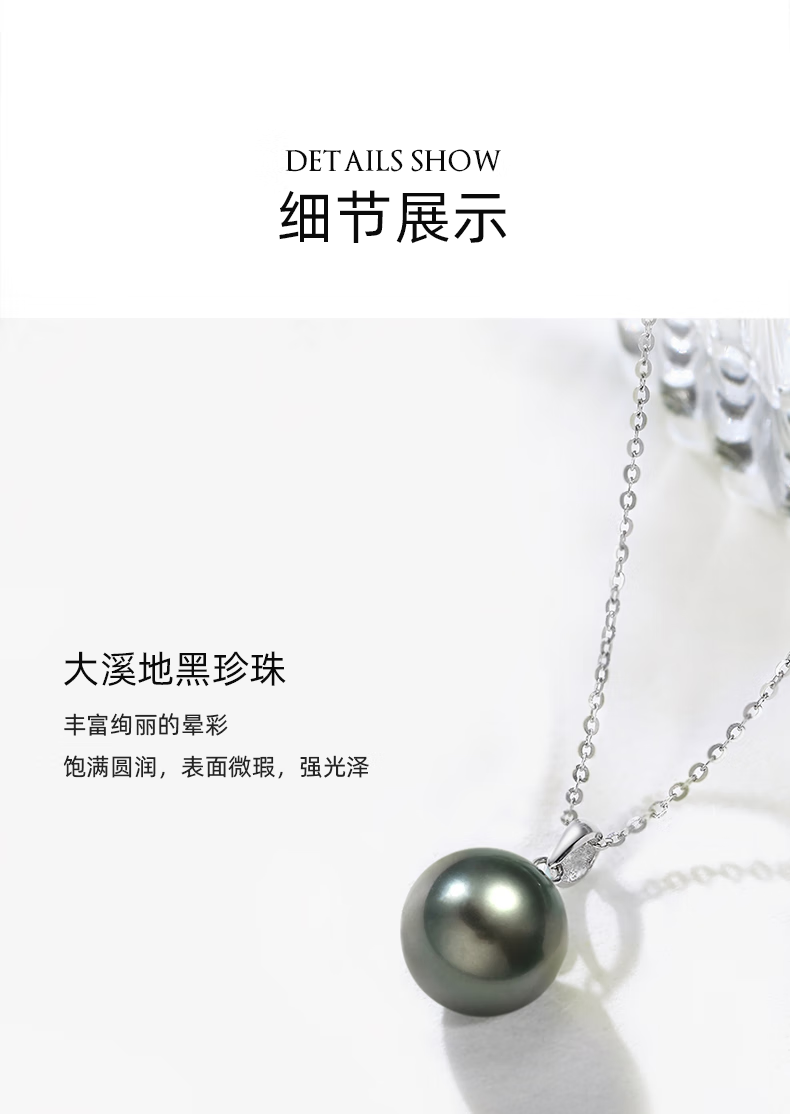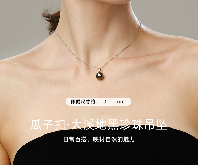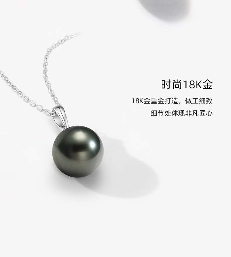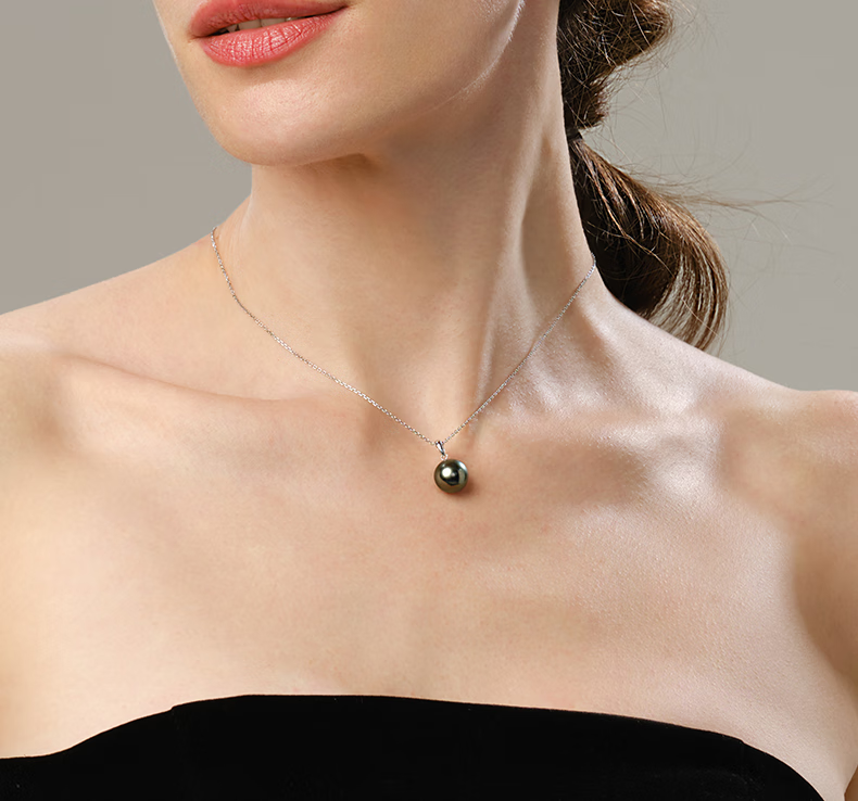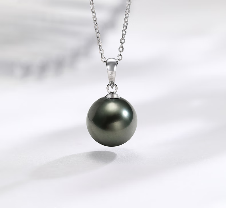 Qianpei Black Pearl Pendant Necklace Seawater Pearl Clavicle Chain Malachite Green for Girls S-Class Perfect Round Flawless + Silver Cross Chain 9-10mm
