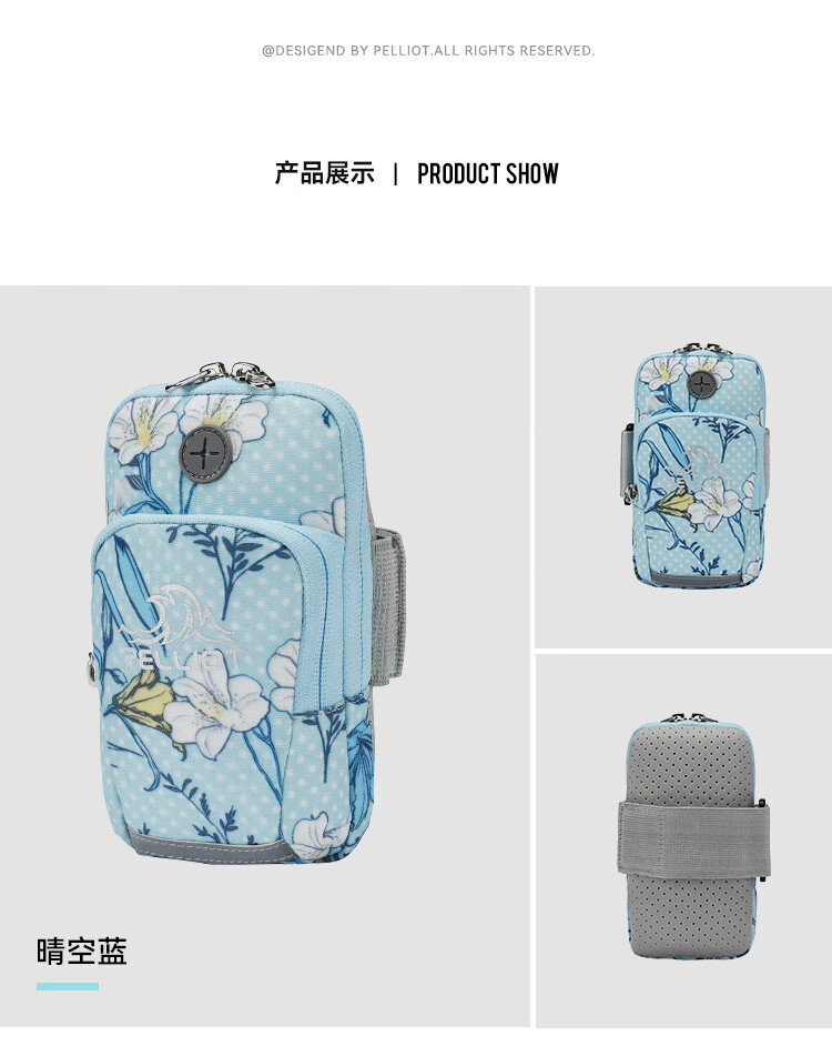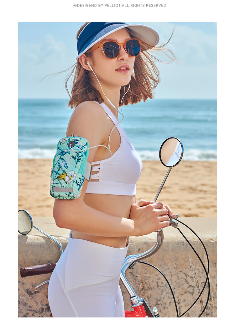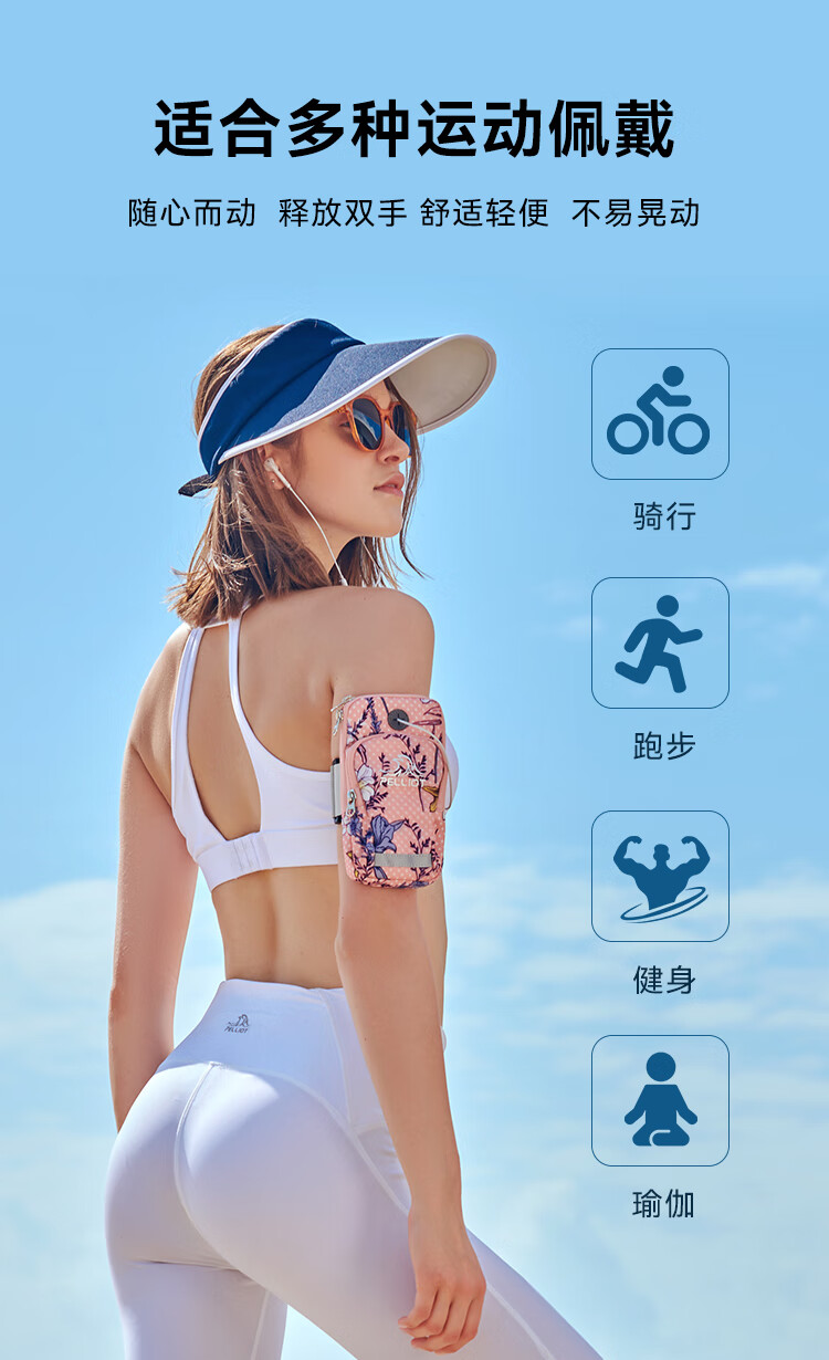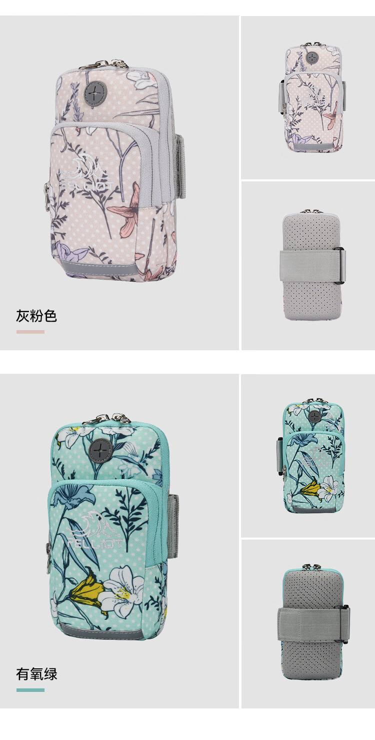 Mobile phone arm bag running fitness armband outdoor sports multifunctional unisex wrist phone bag cycling gray pink printed M size
