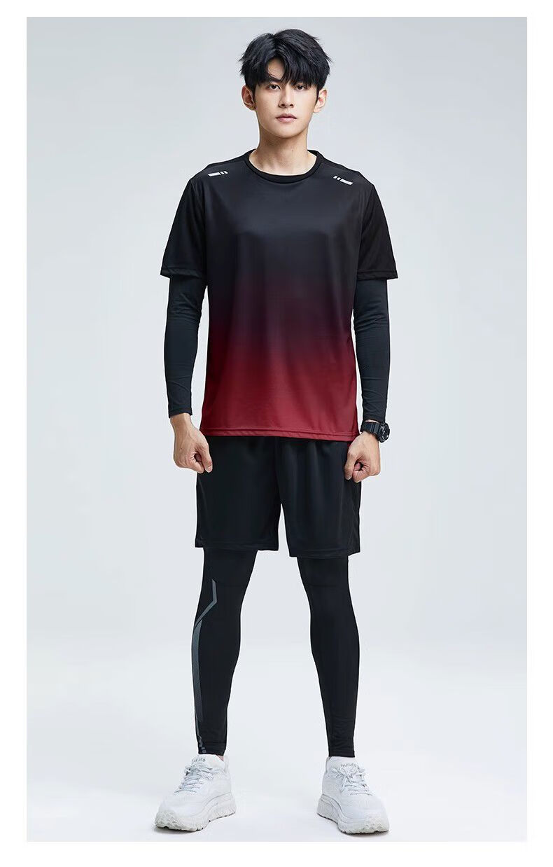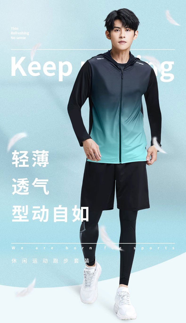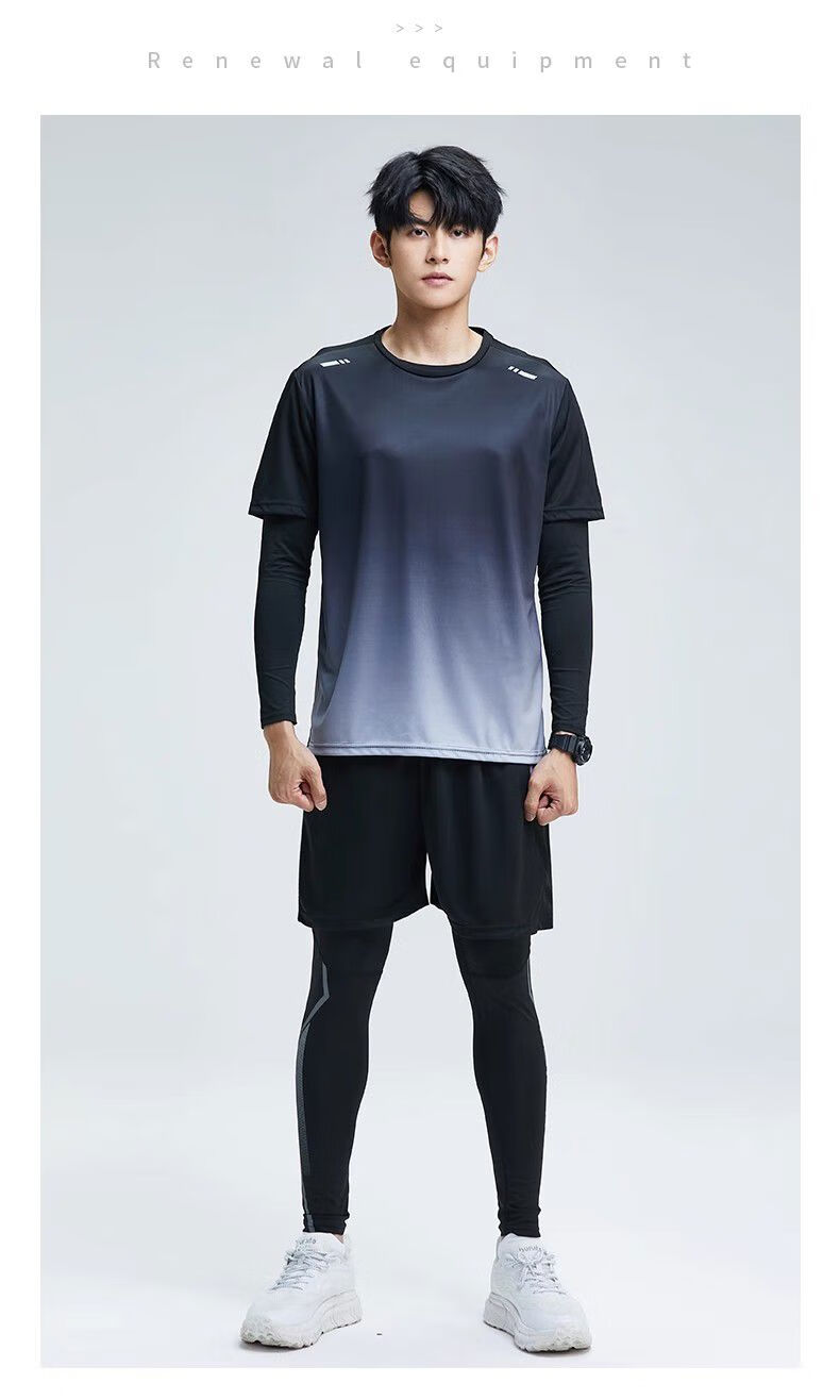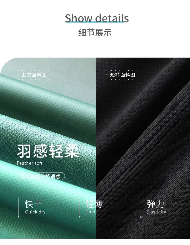 Summer mesh sports suit for men, running training, fitness, morning jogging, cycling clothes, tight-fitting quick-drying clothes, five-piece set, thin five-piece set - green L L