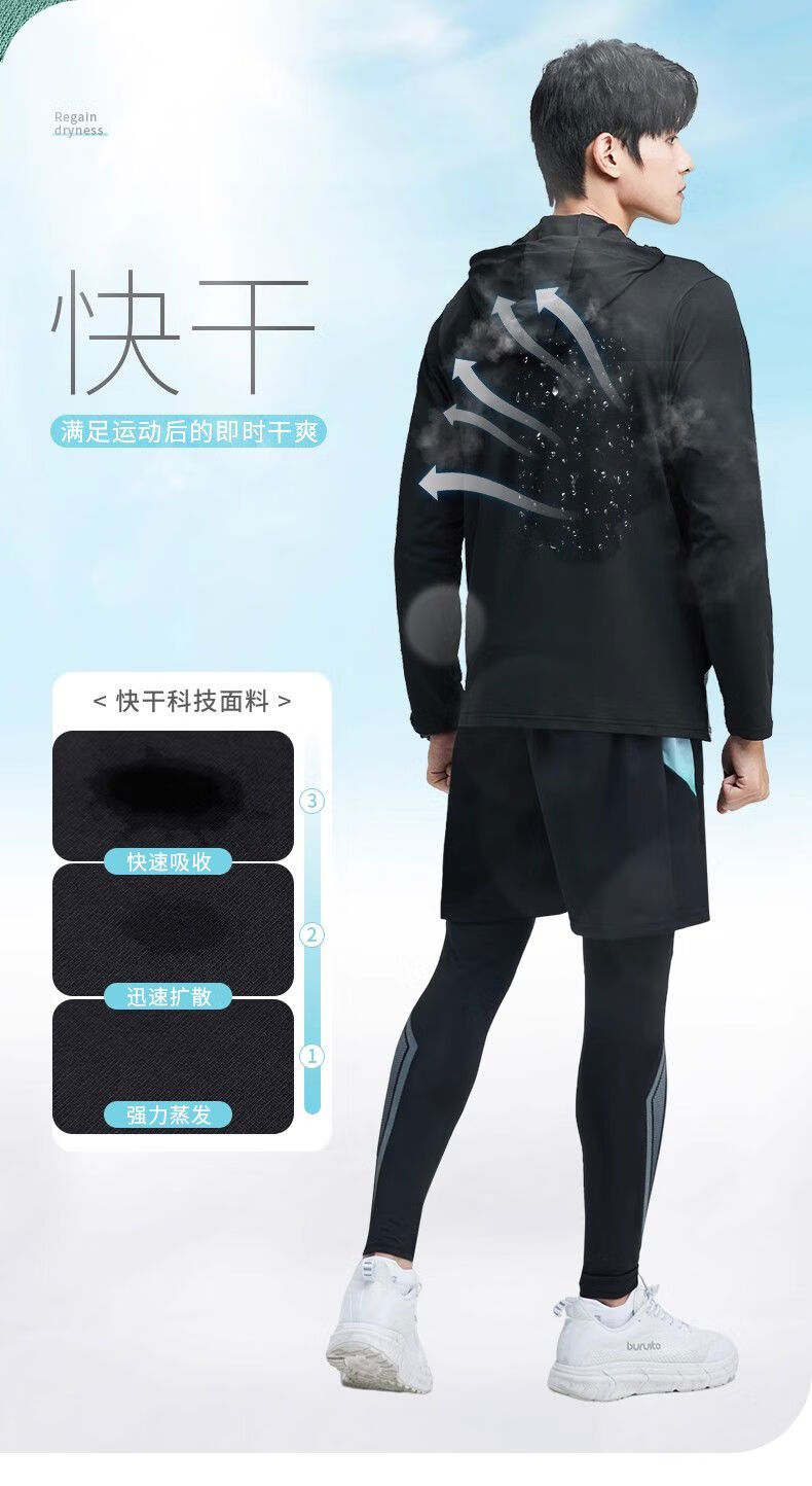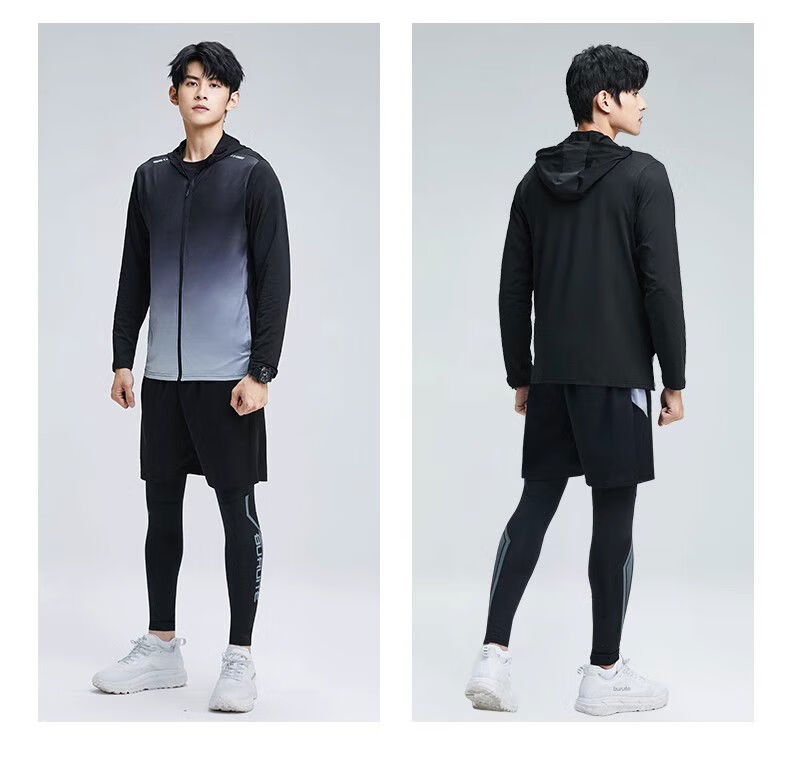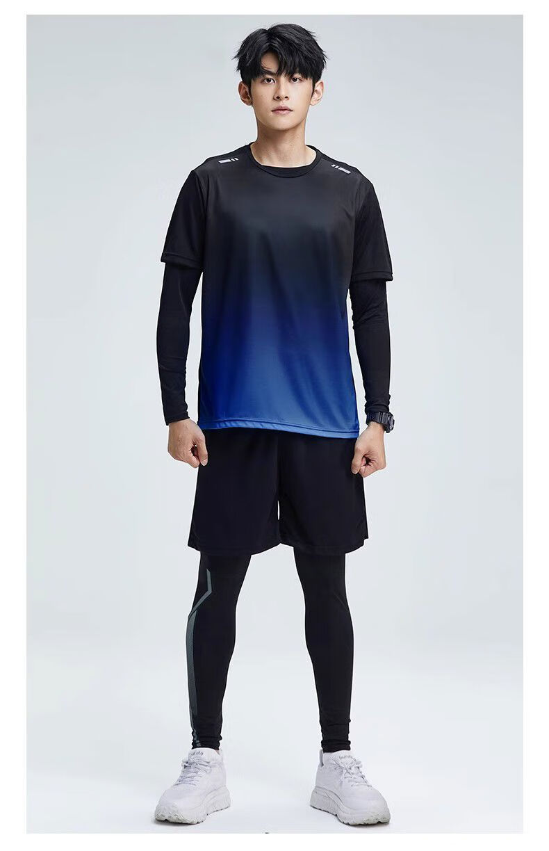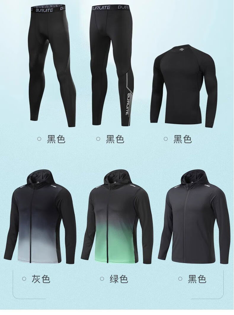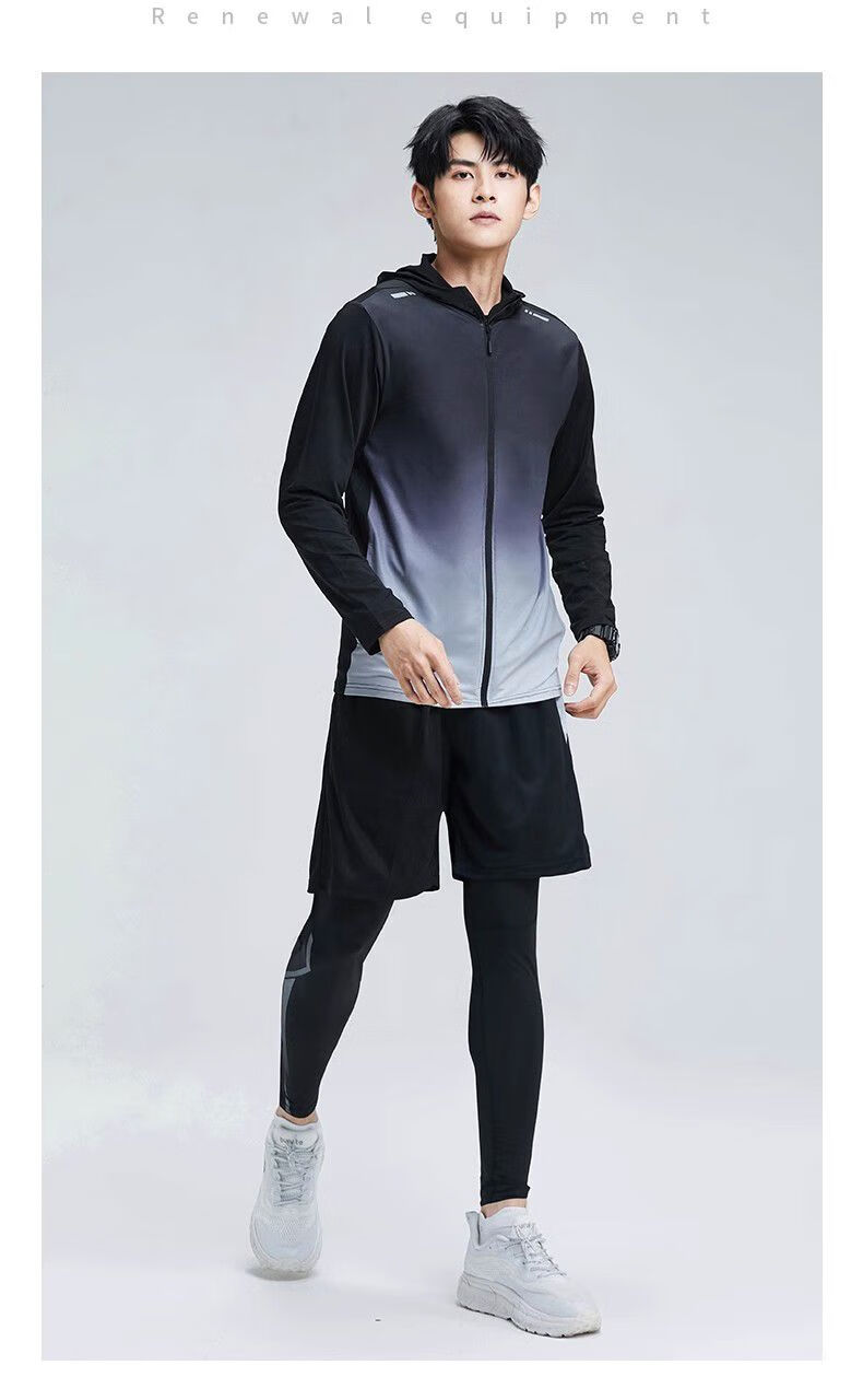 Summer mesh sports suit for men, running training, fitness, morning jogging, cycling clothes, tight-fitting quick-drying clothes, five-piece set, thin five-piece set - green L L