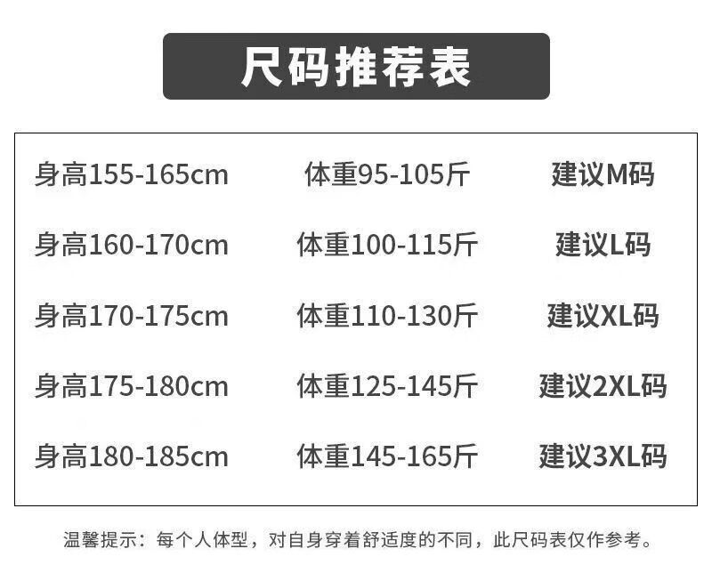 China (cm) 165 / 88-90 170 / 96-98 175 / 108-110 180 / 118-122 185 / 126-130
