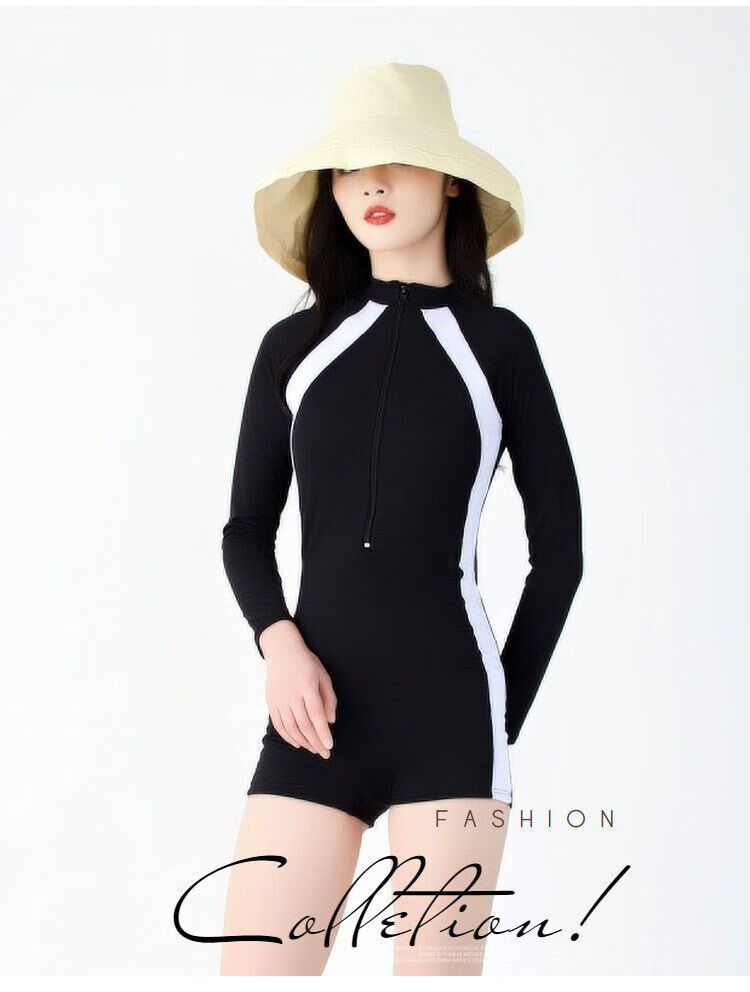 Zailu long-sleeved swimsuit for women, ins style, conservative, 2022 new style, young, beautiful, sexy, belly-covering, slimming swimsuit, 990 long sleeves + swimming goggles, swimming cap, earplugs and nose clip, 4XL 4XL138-155Jin Jin is equal to 0.5kg