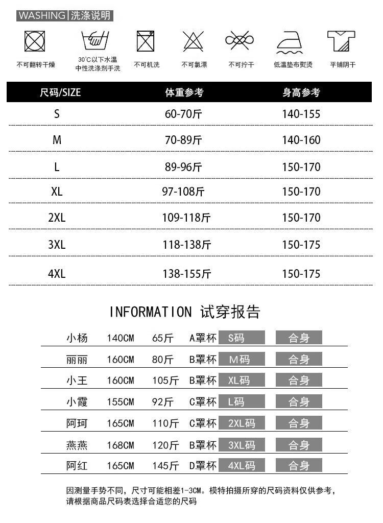 China (cm) 160-165/84-86 165-170 / 88-90 167-172 / 92-96 168-173 / 98-102 170-176 / 106-110
