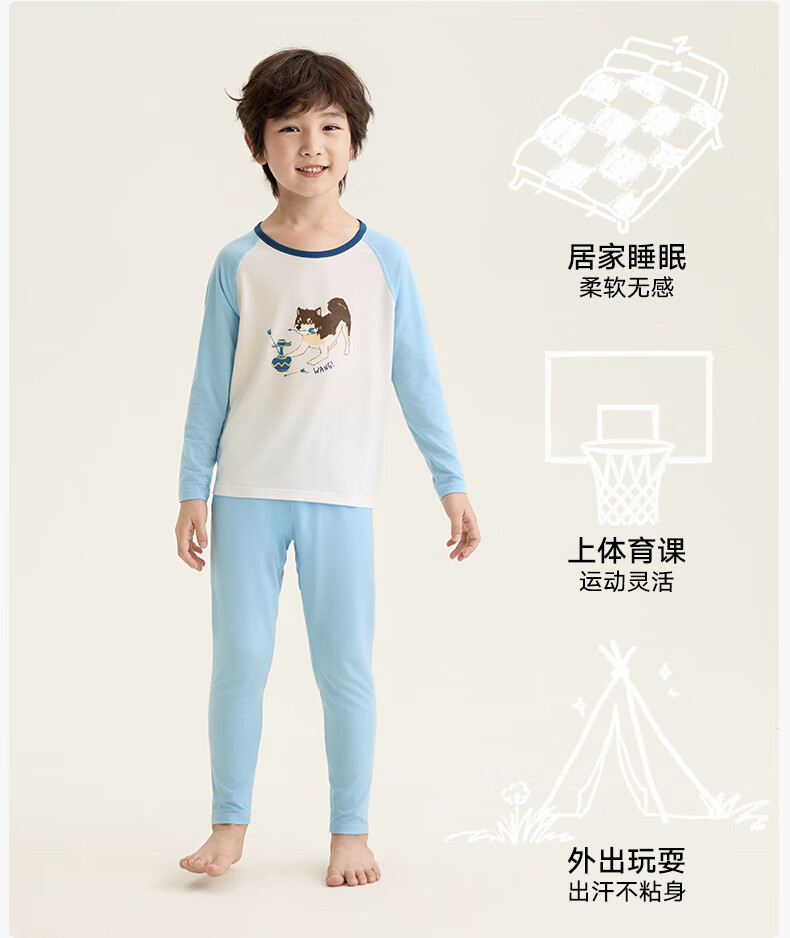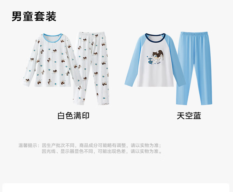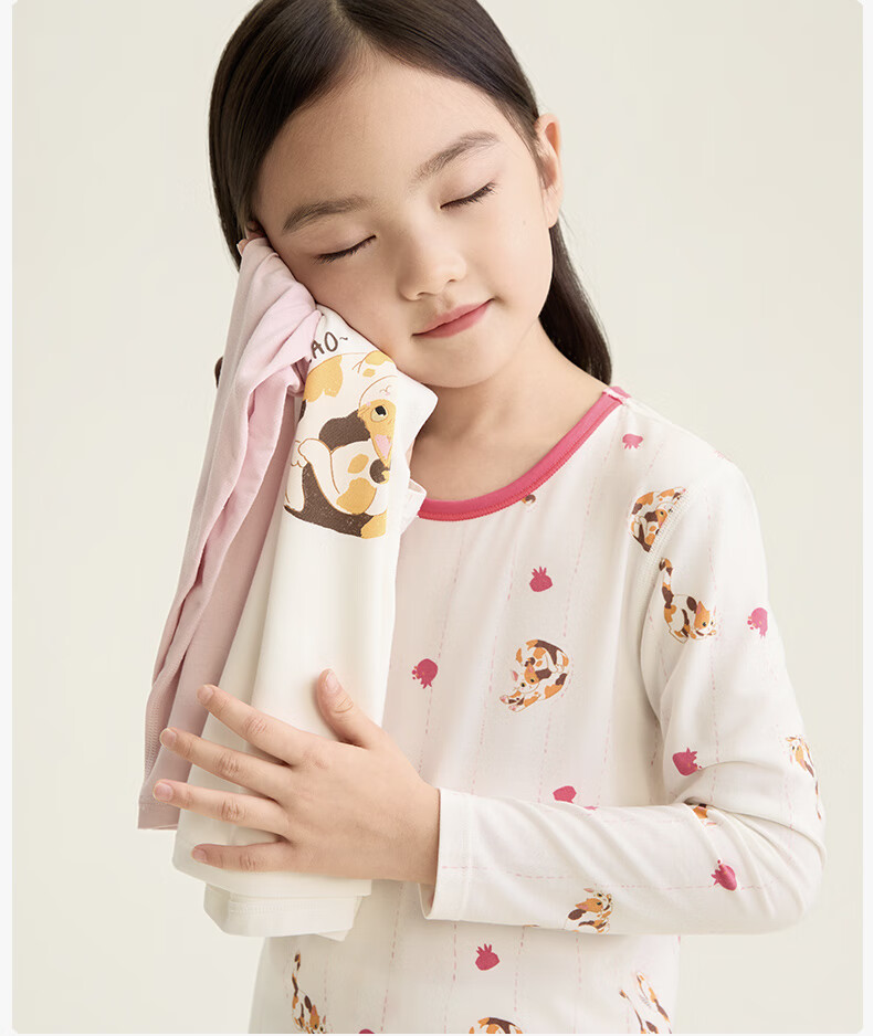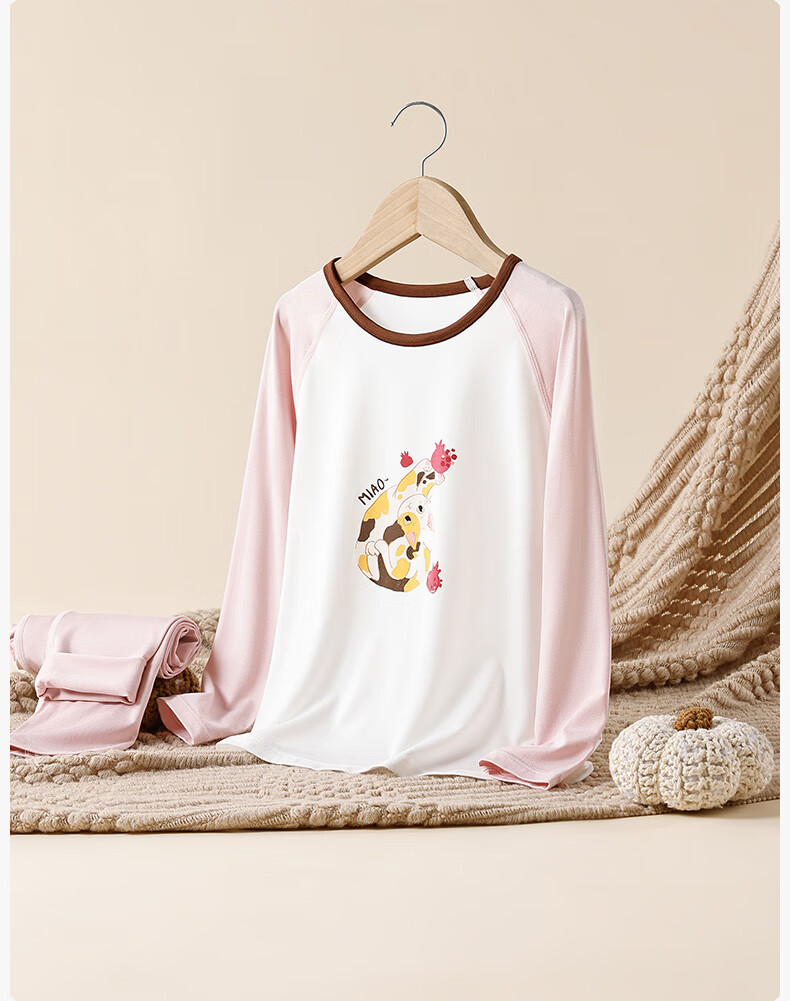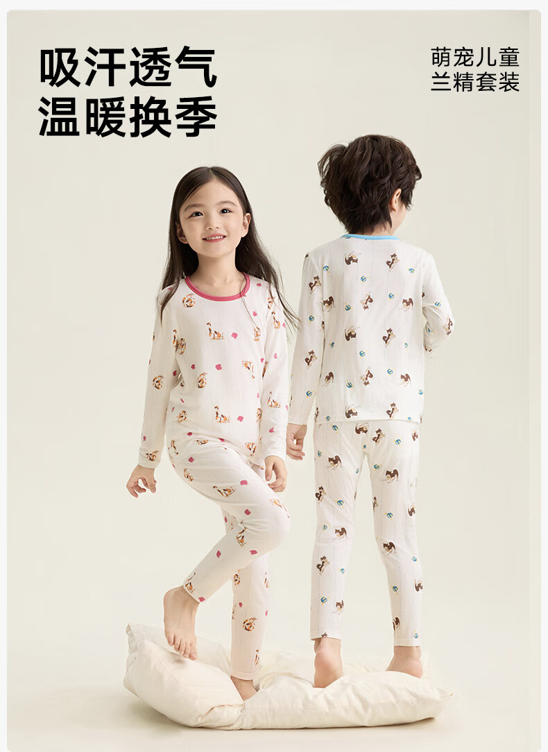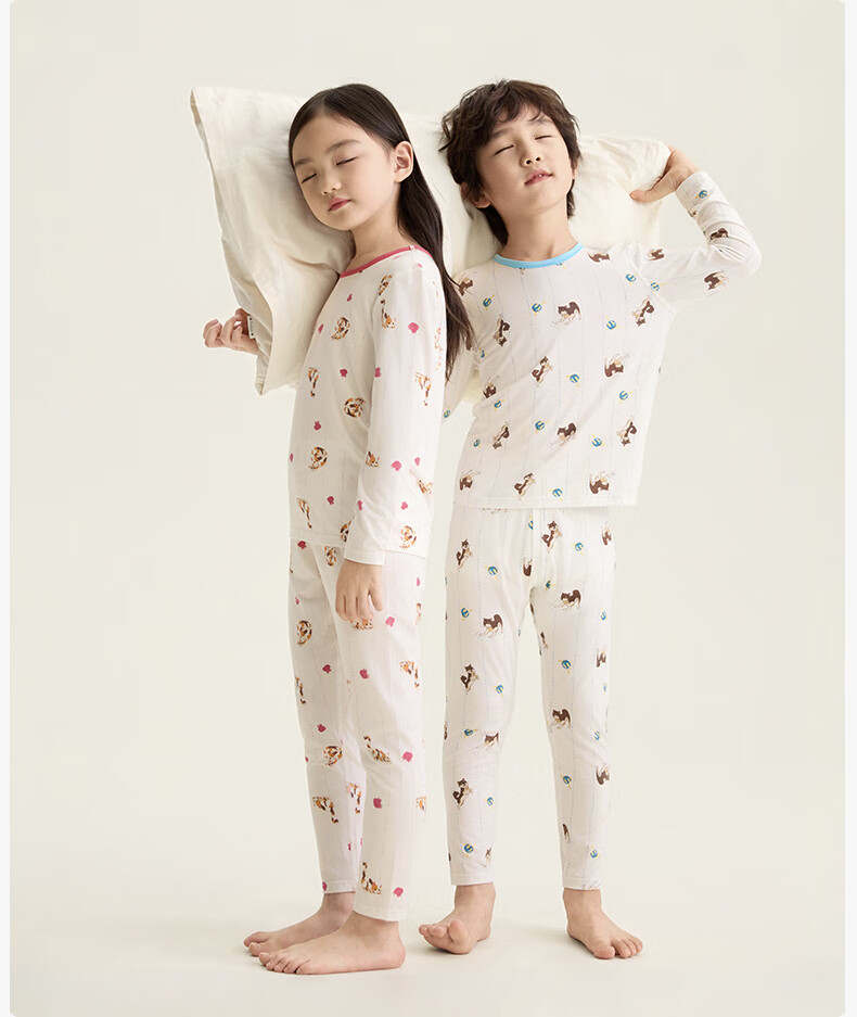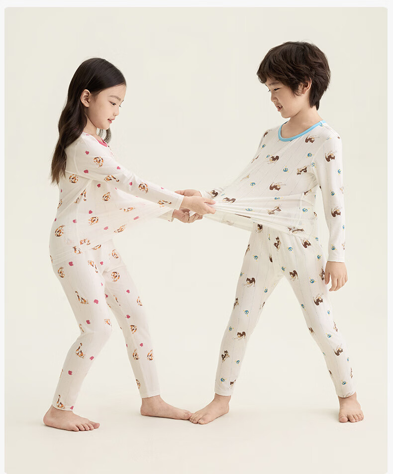Songshan Cotton Store Children's Soft Clothes Tencel Underwear Pajamas Modal Home Clothes Set Boys and Girls Autumn Clothes and Autumn Pants Girls - White Full Print 150 cm