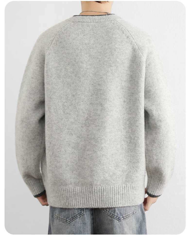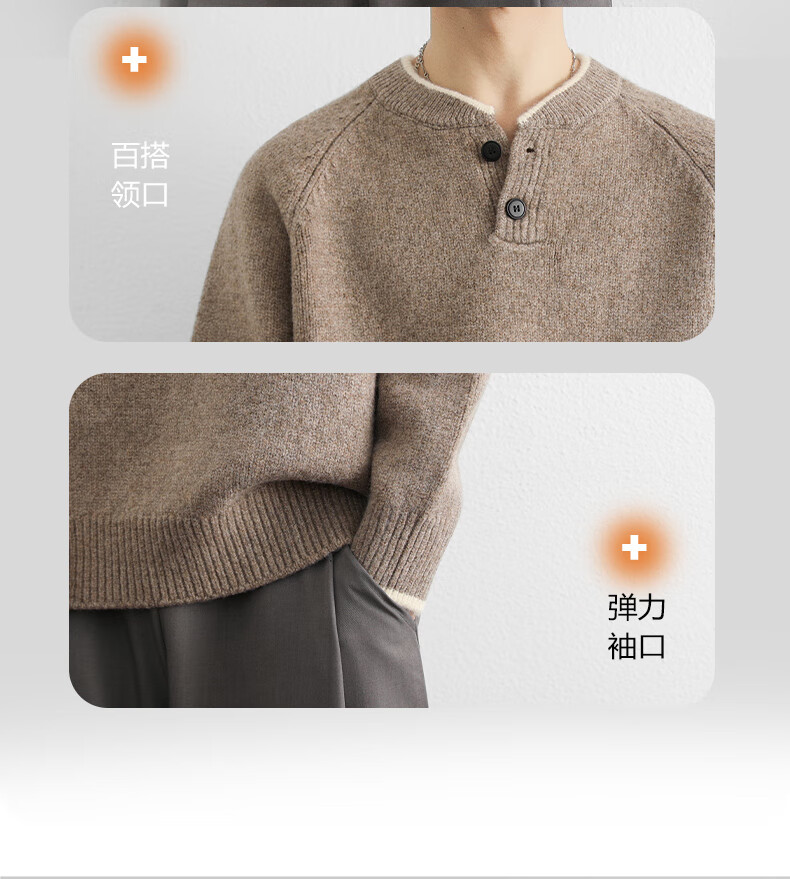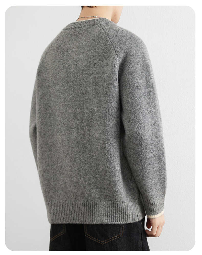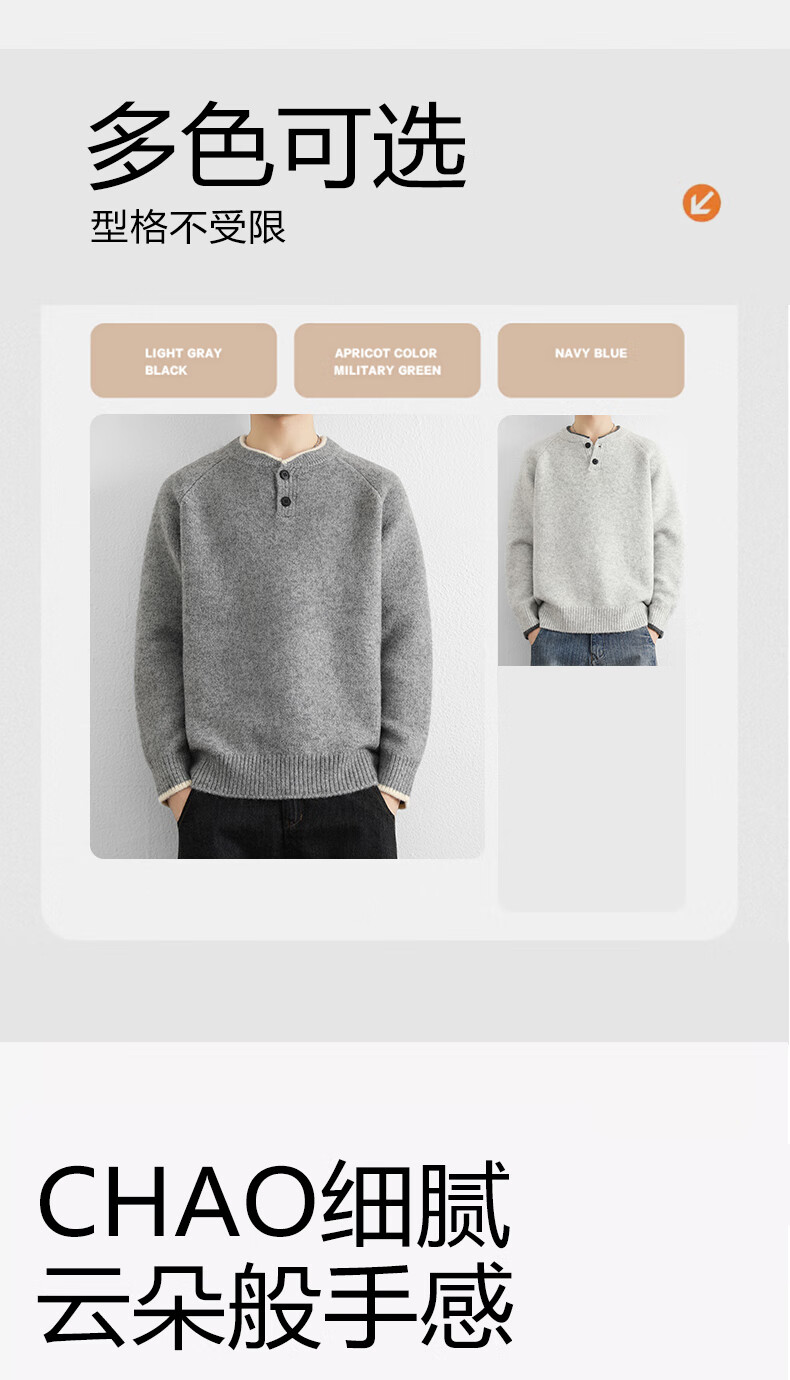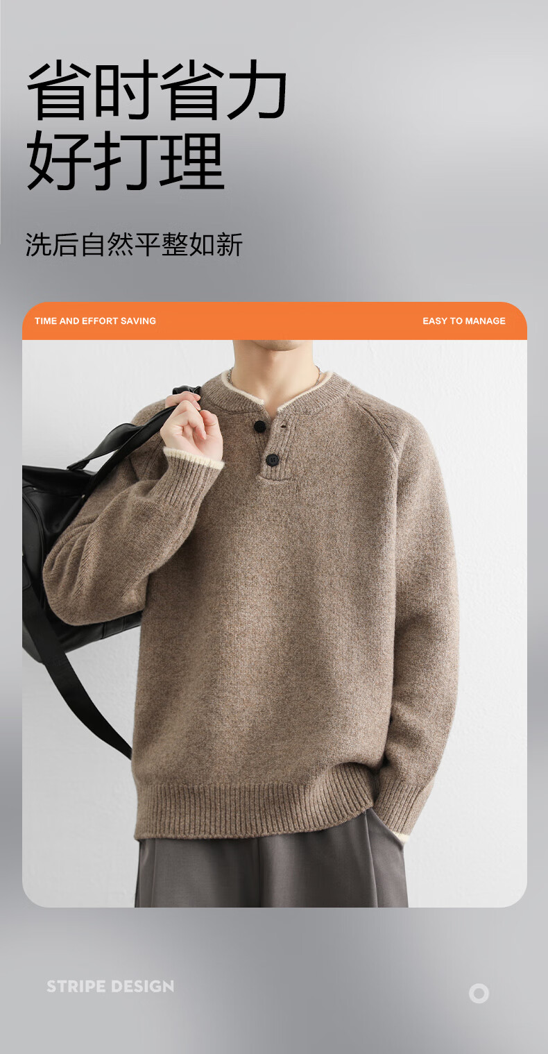 MONTAGUT Wool Blended Henley Collar Retro Sweater Men's Winter New Thickened Warm Sweater with Pullover Top Light Gray L 120-140Jin Jin equals 0.5kg