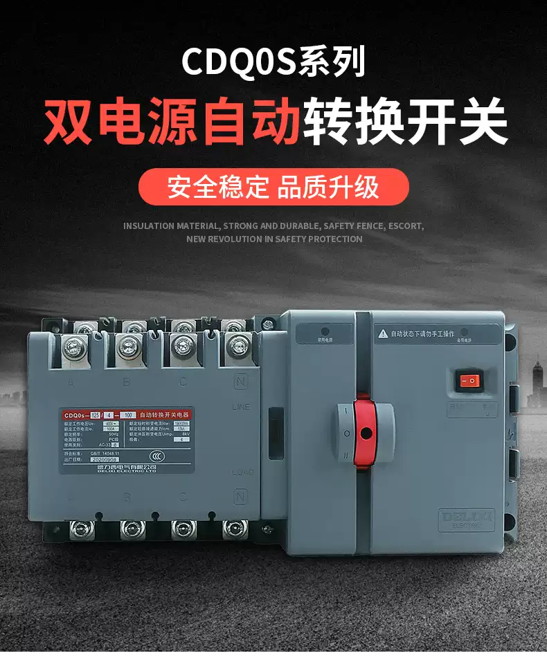 Delixi CDQ0S dual power automatic transfer switch isolation type switching PC level two in and one out 2P3P4P63A 16A 2P