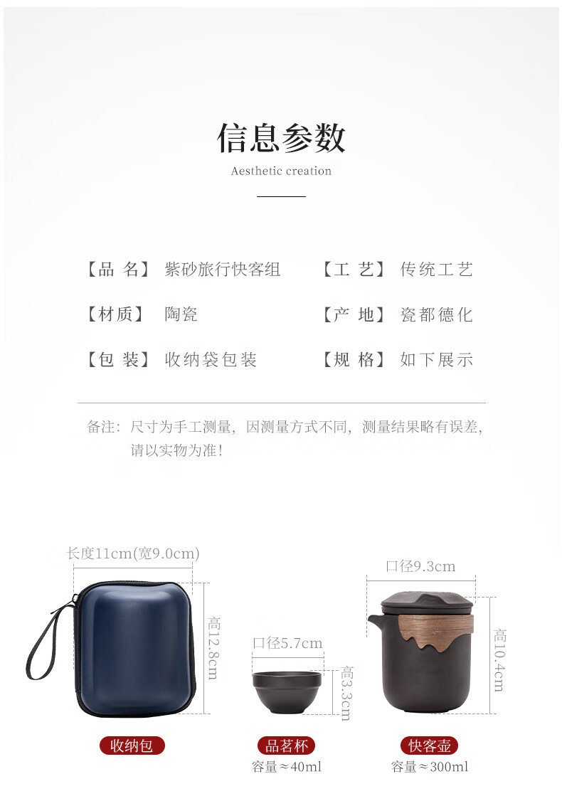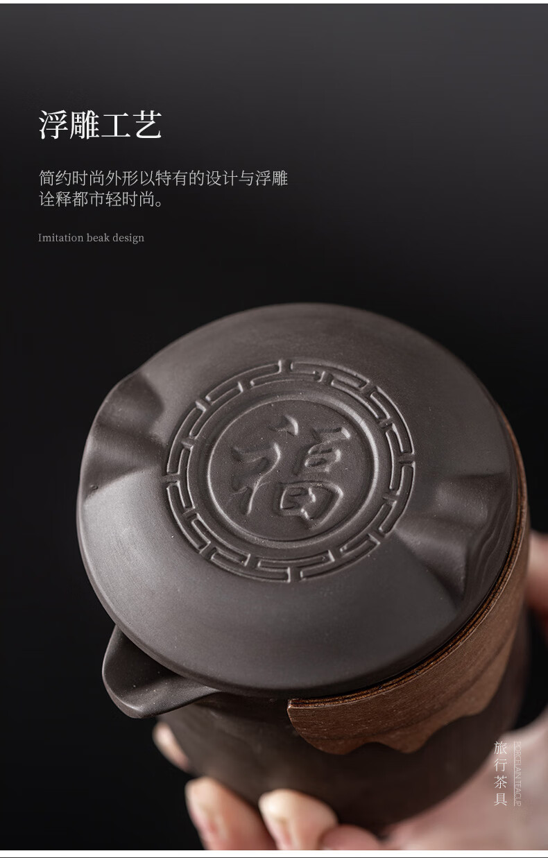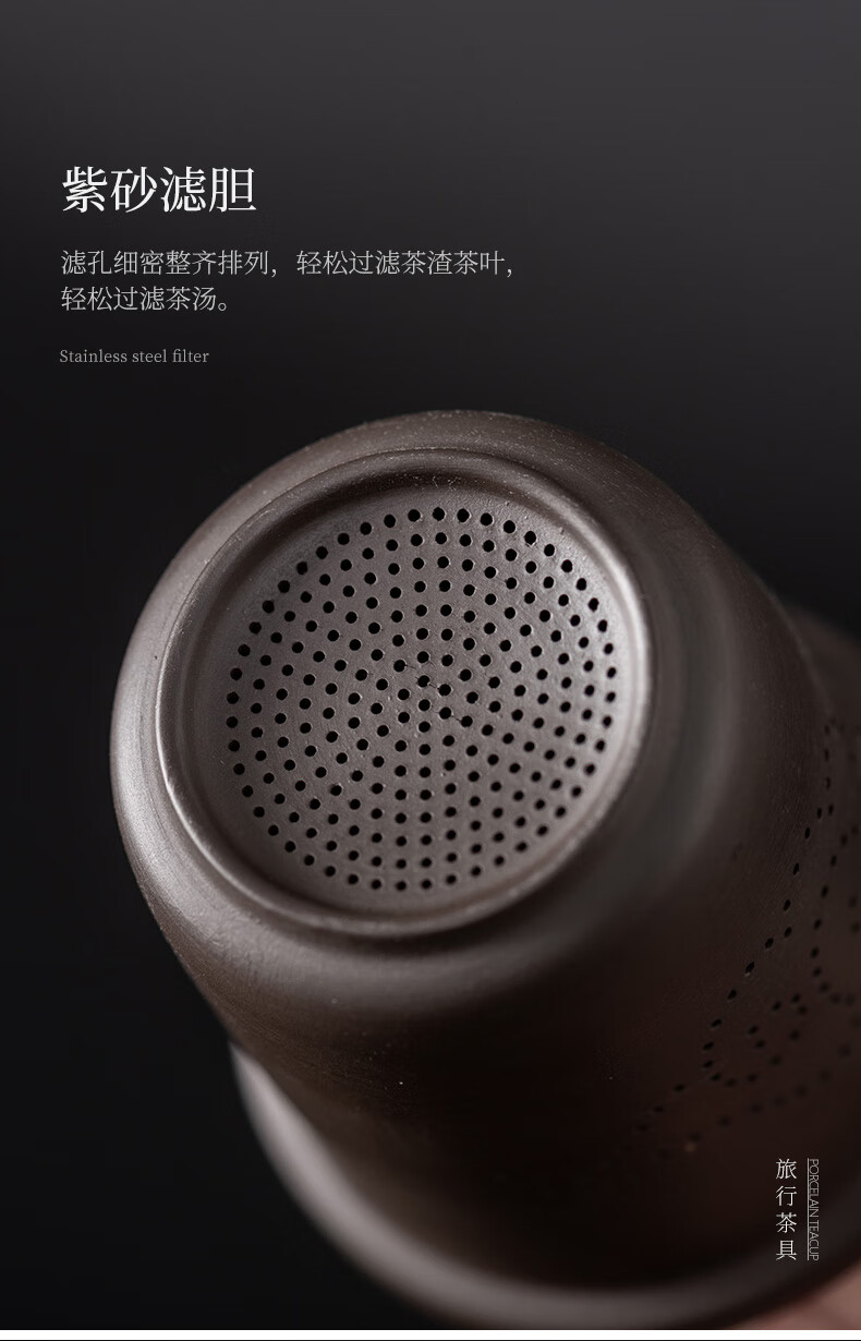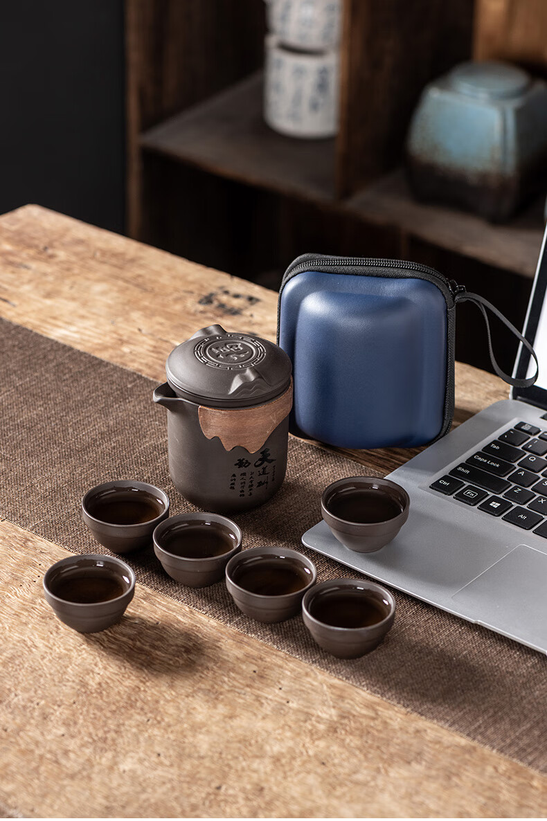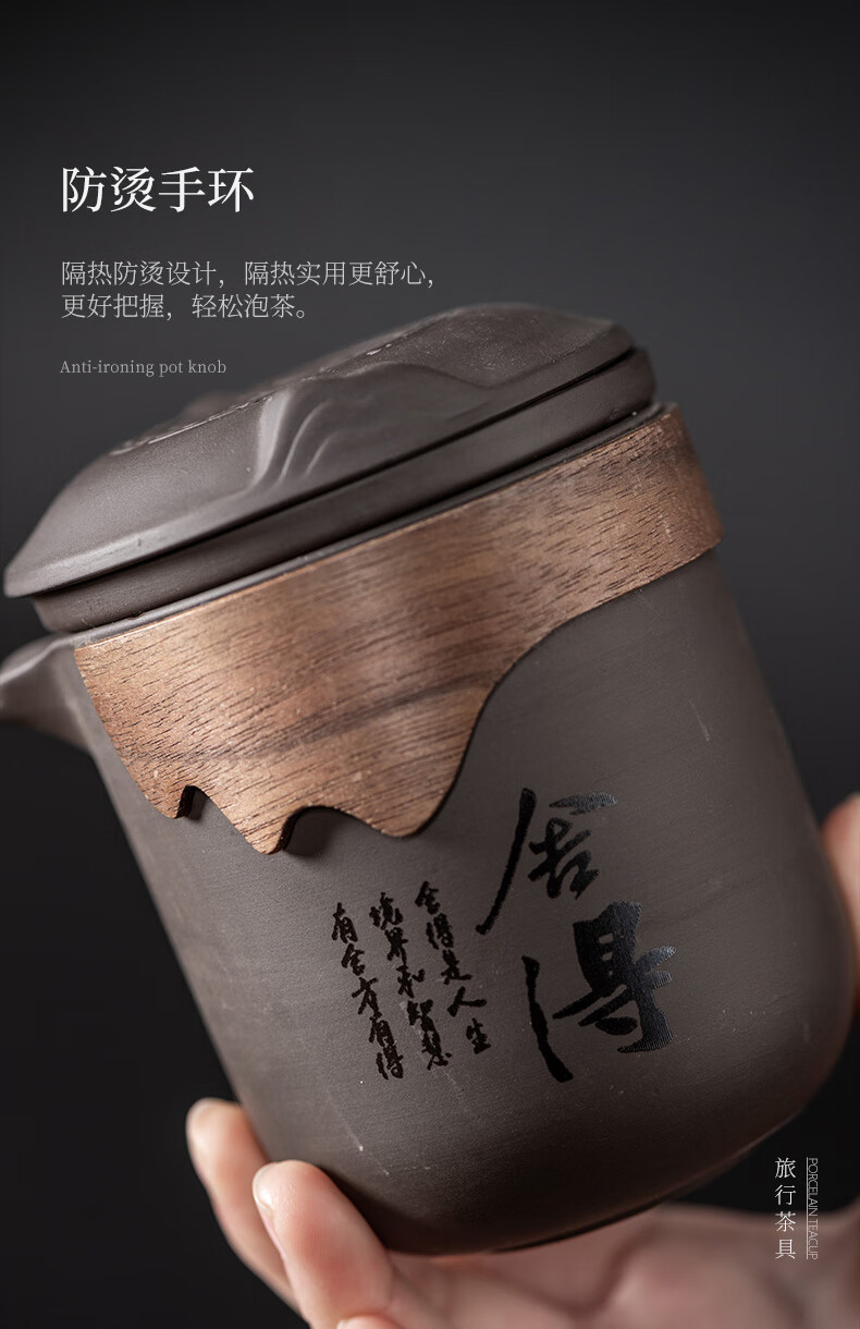 Purple sand color changing teapot travel tea set Kung Fu Kuai Ke tea light luxury portable cup tea water separation outdoor portable storage purple sand cat ears - color changing dragon and phoenix six cups + bag