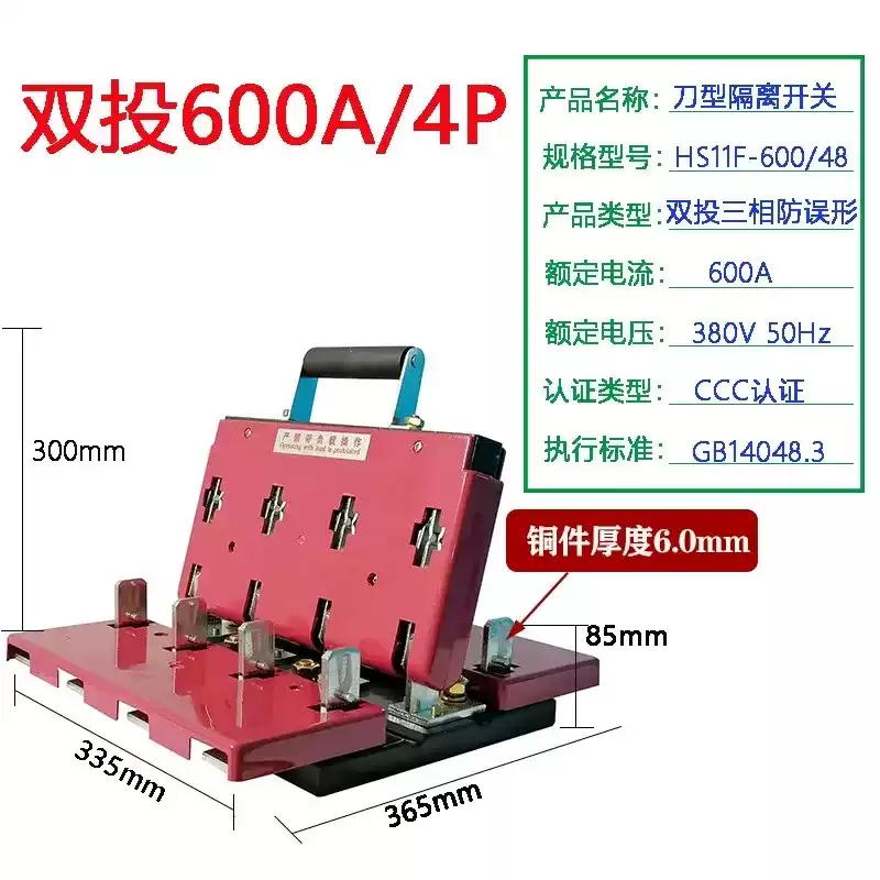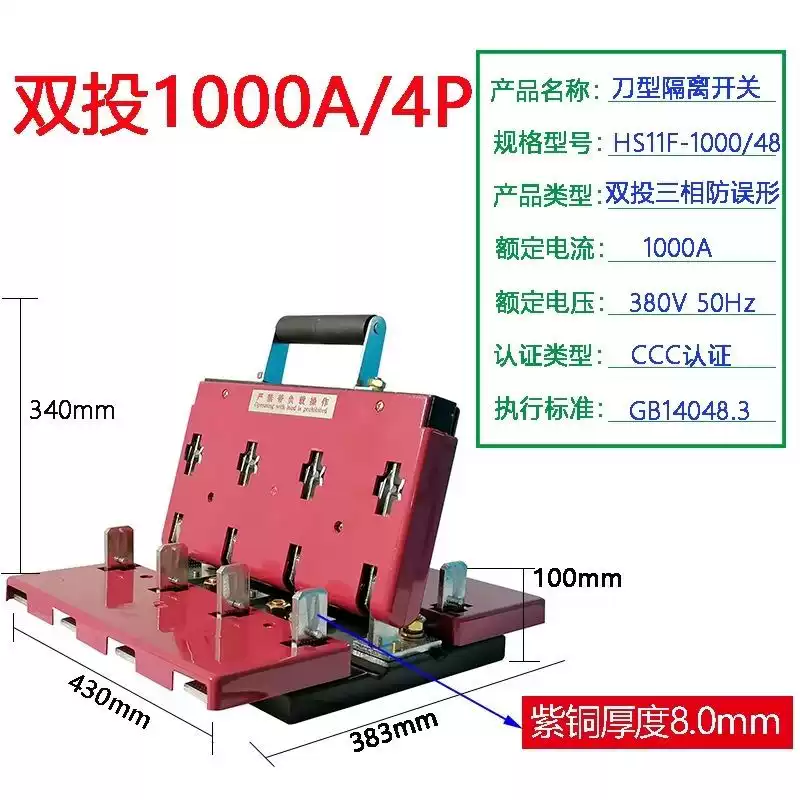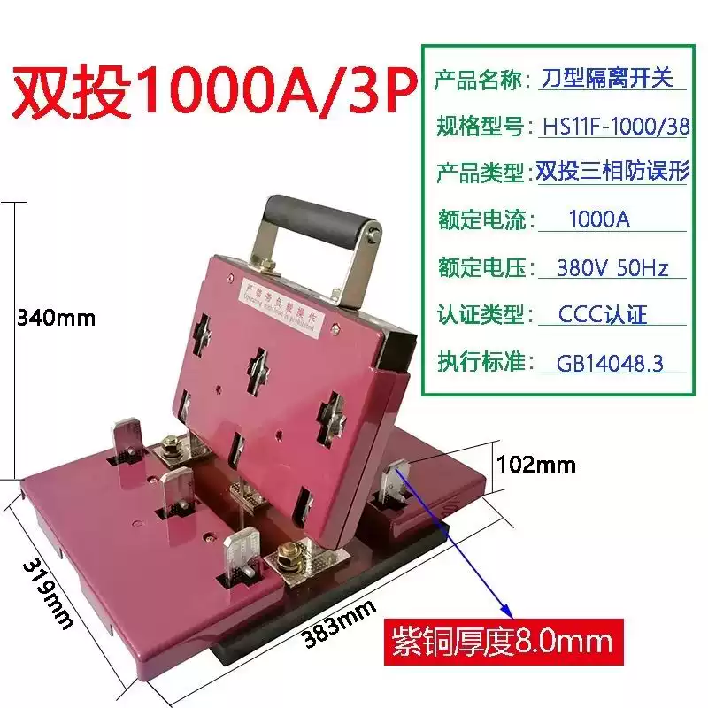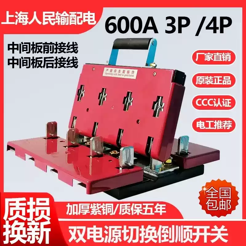 Shanghai People's Double Throw Knife Switch HS11F-1000/48 Dual Power Reverse and Sequential Conversion Knife Switch 600A1500A HS11F-600/38 Front Panel Wiring HS11F-600/38 Panel Front Wiring