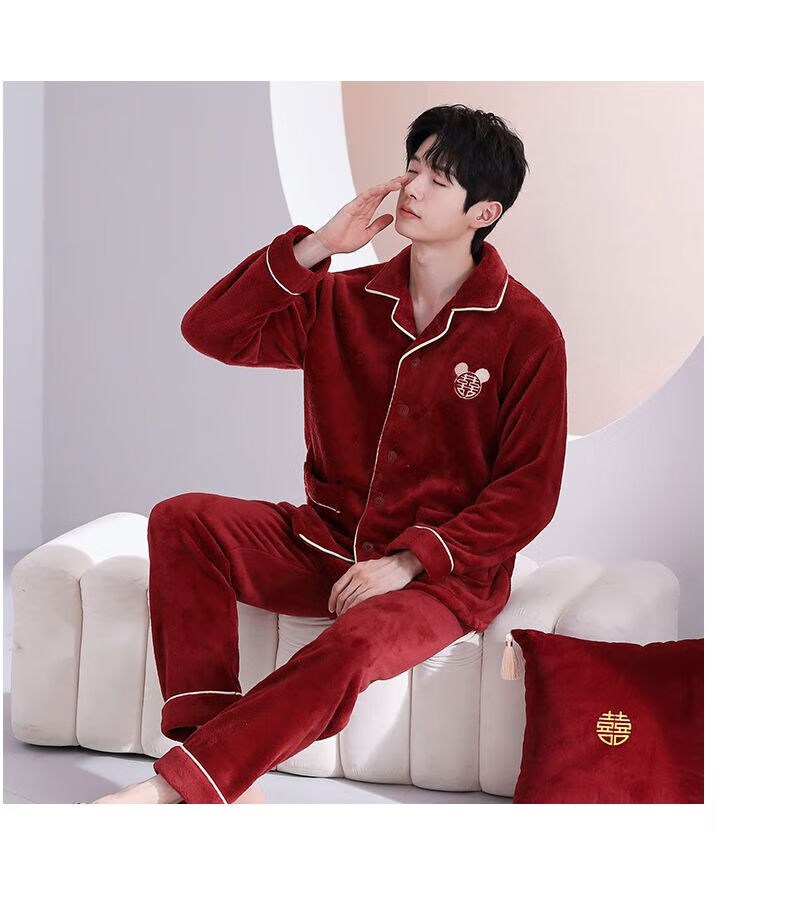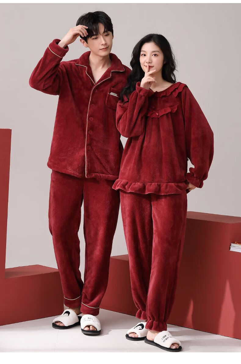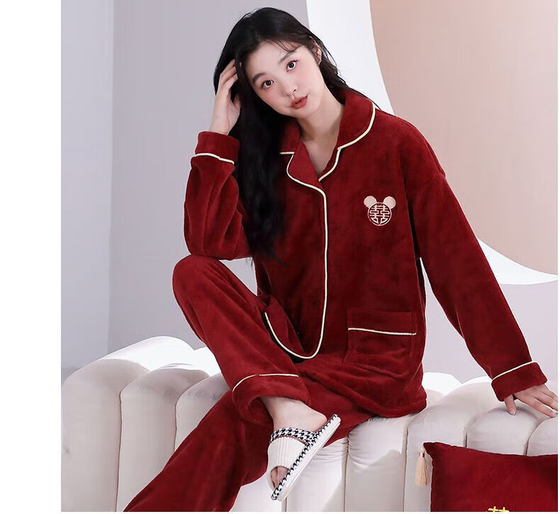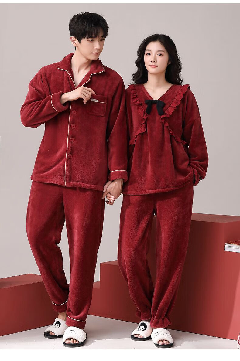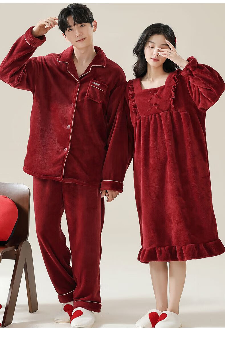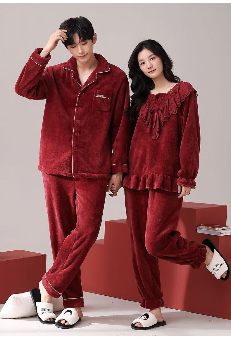 Victoria style wedding pajamas winter coral velvet couple red newlywed men and women plus velvet thickened home clothes can be worn outside the suit 9838 M women