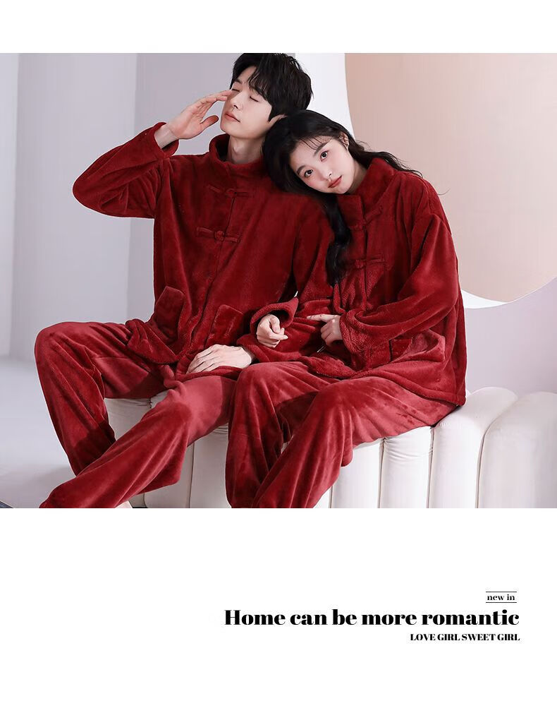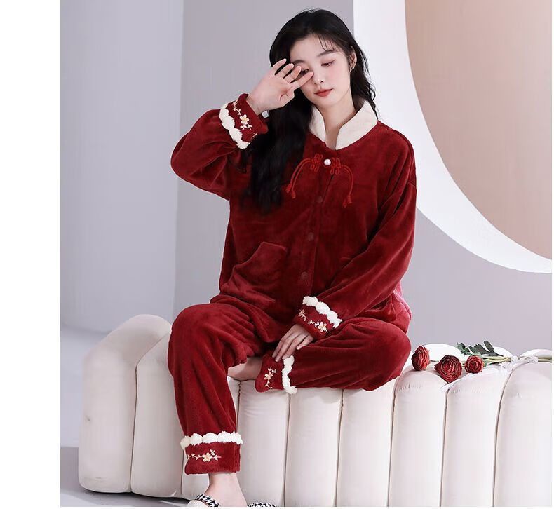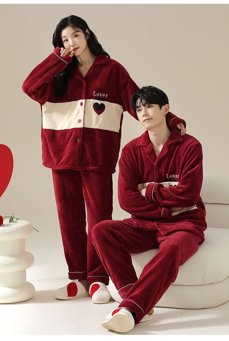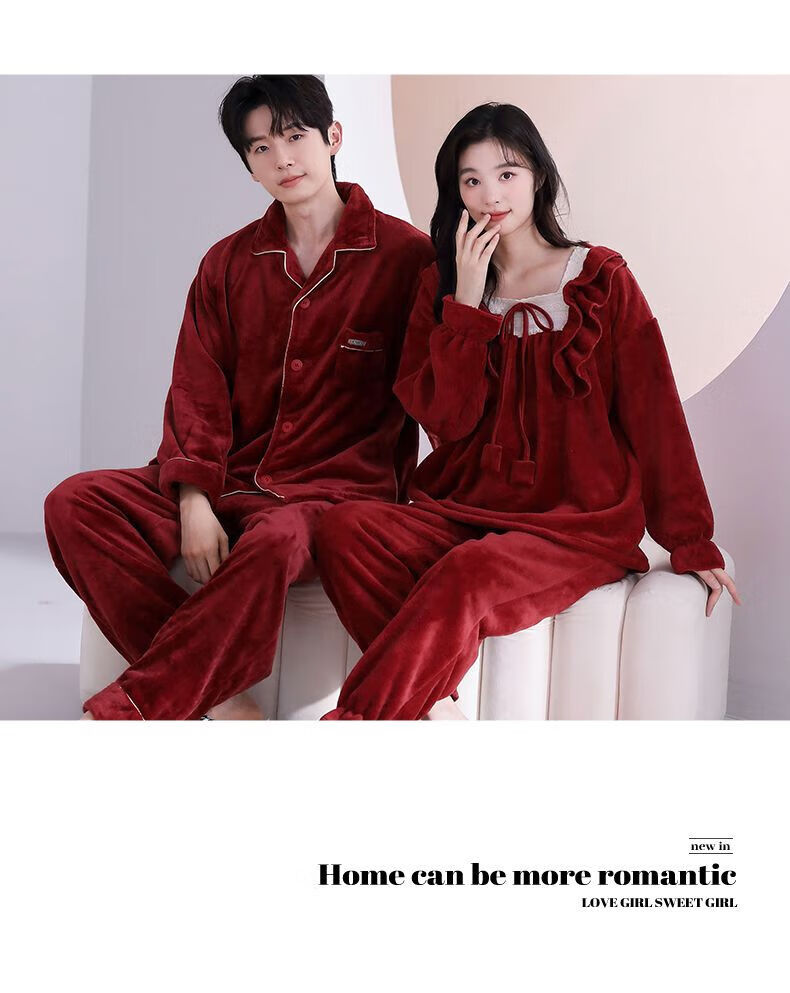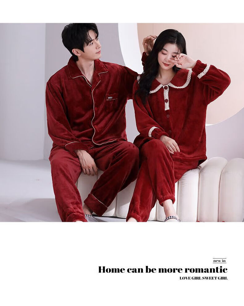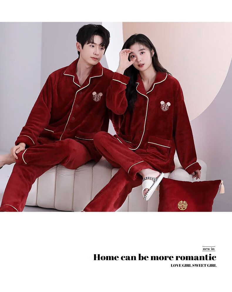 Victoria style wedding pajamas winter coral velvet couple red newlywed men and women plus velvet thickened home clothes can be worn outside the suit 9838 M women