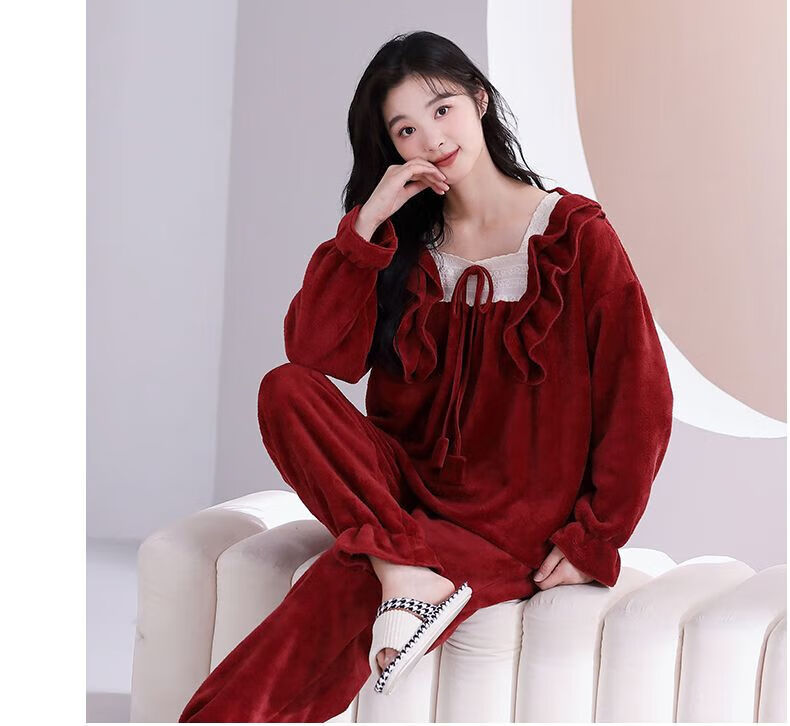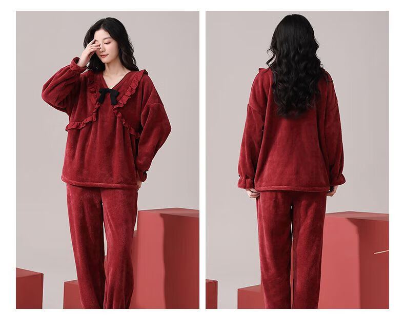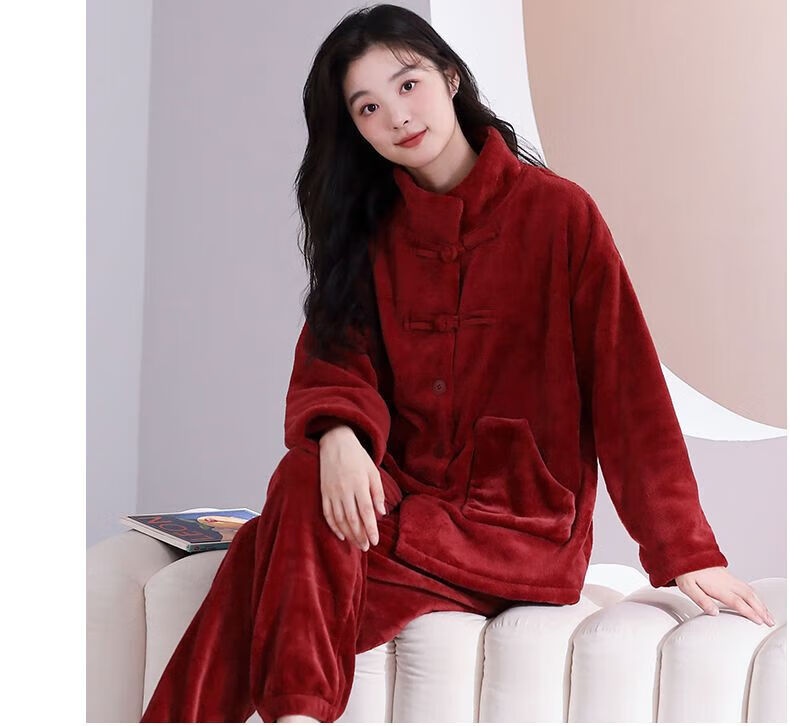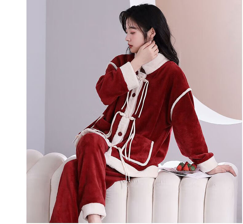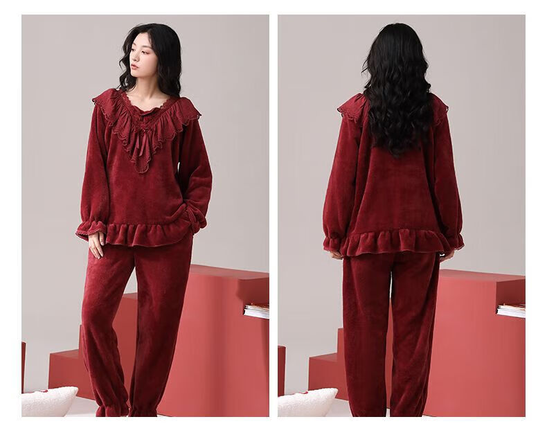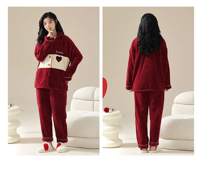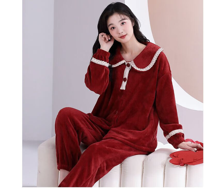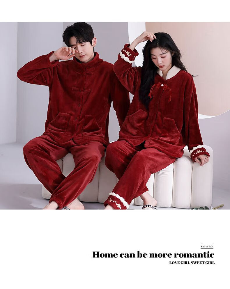 Victoria style wedding pajamas winter coral velvet couple red newlywed men and women plus velvet thickened home clothes can be worn outside the suit 9838 M women