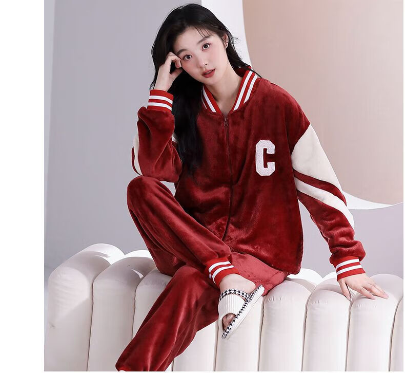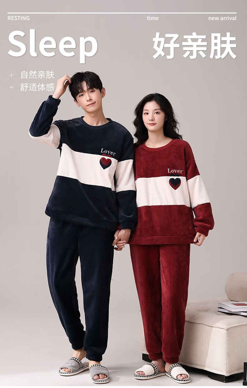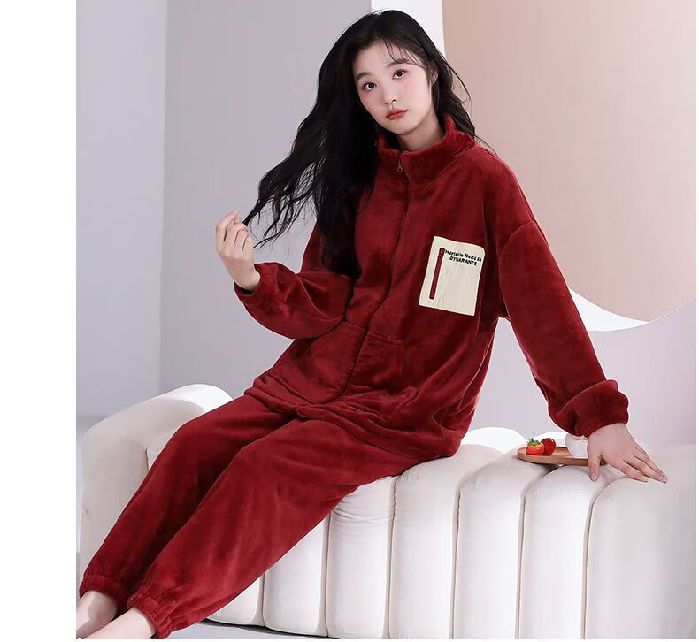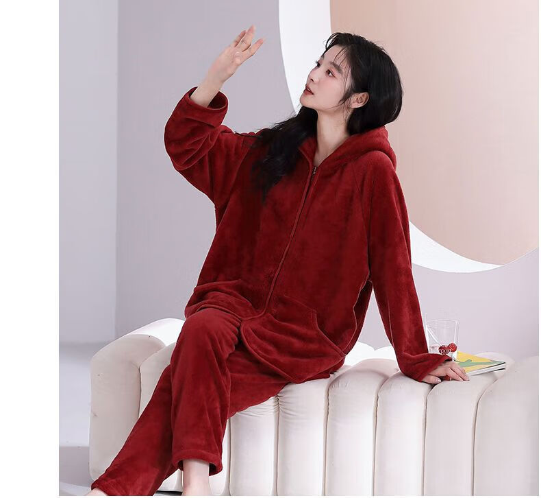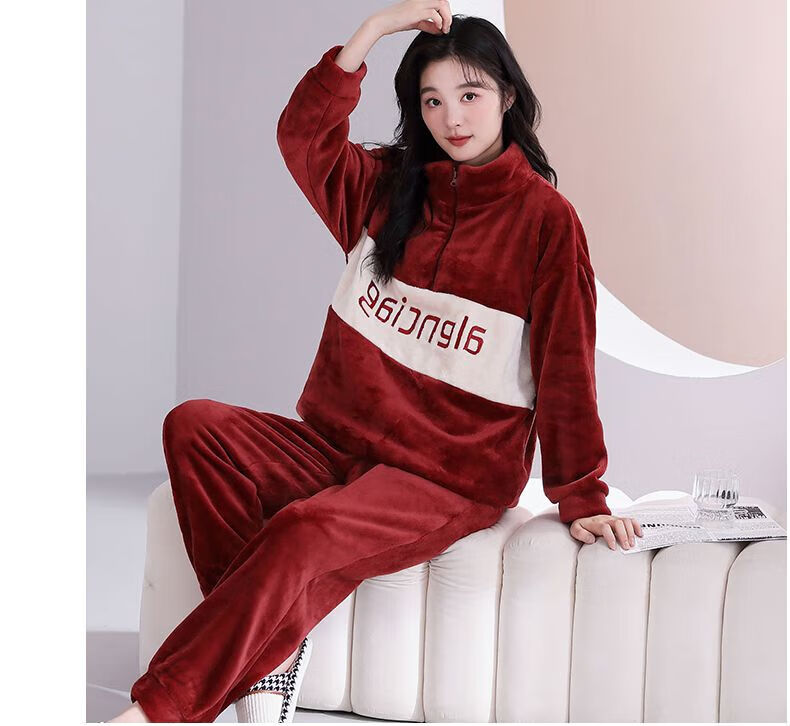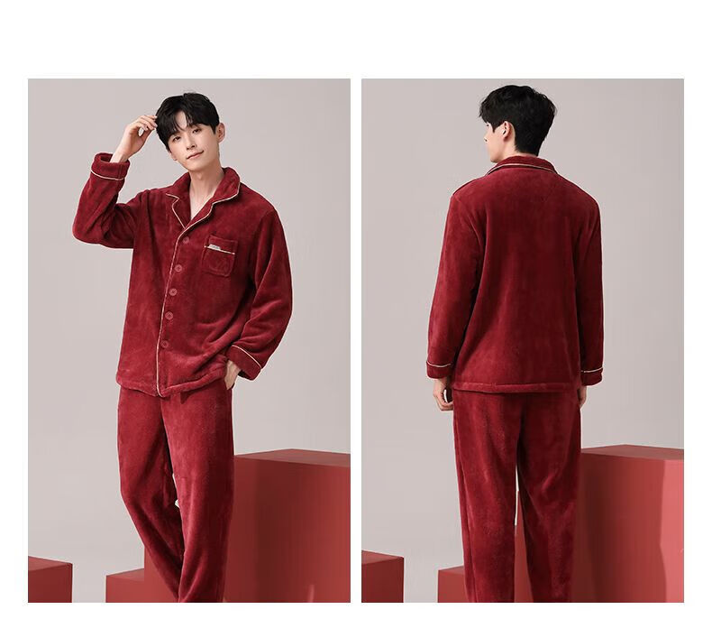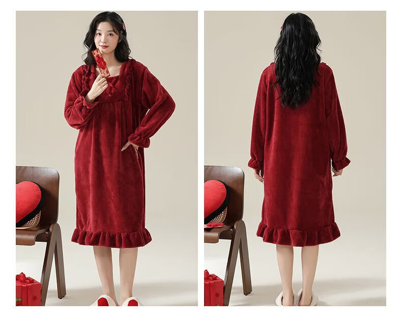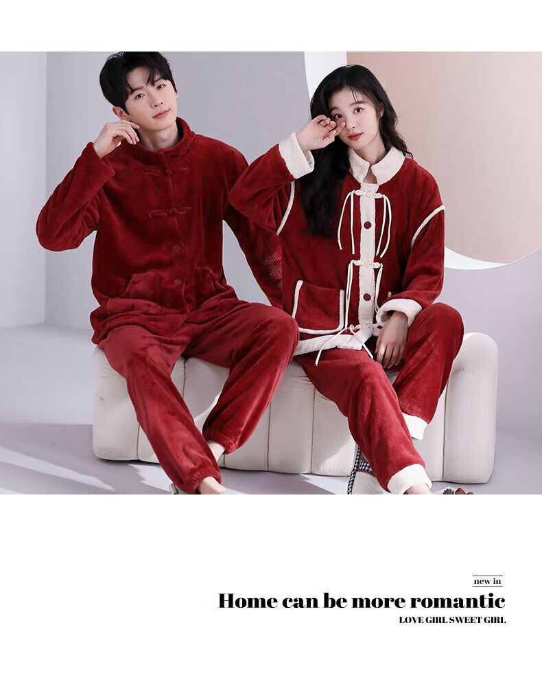 Victoria style wedding pajamas winter coral velvet couple red newlywed men and women plus velvet thickened home clothes can be worn outside the suit 9838 M women