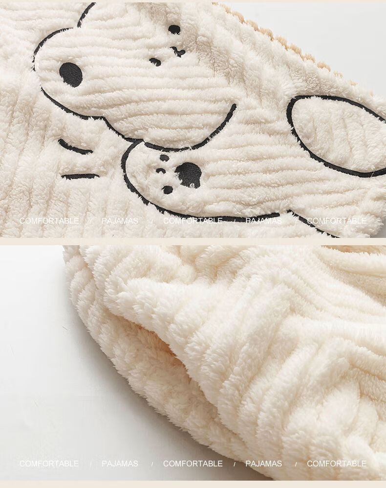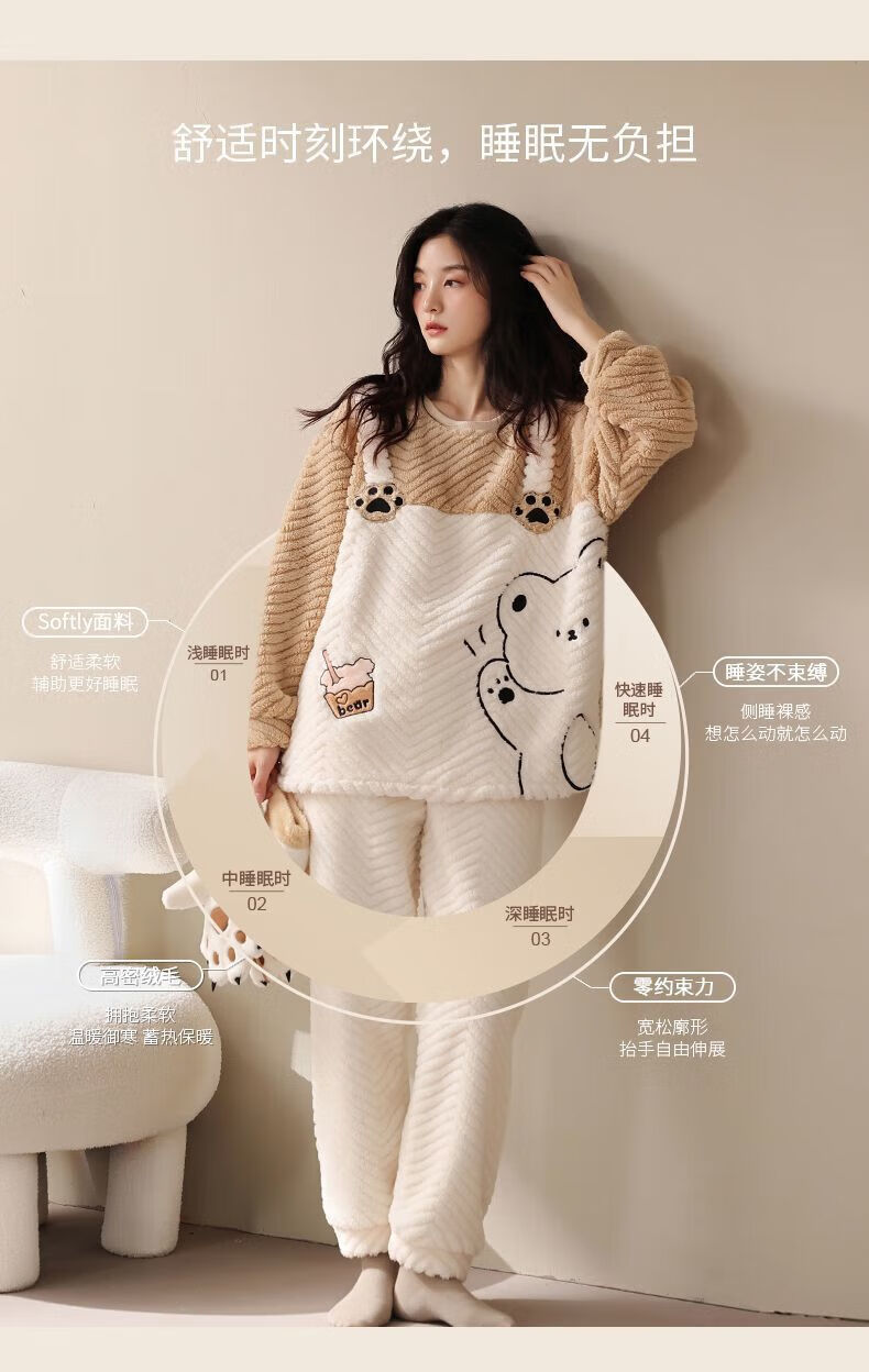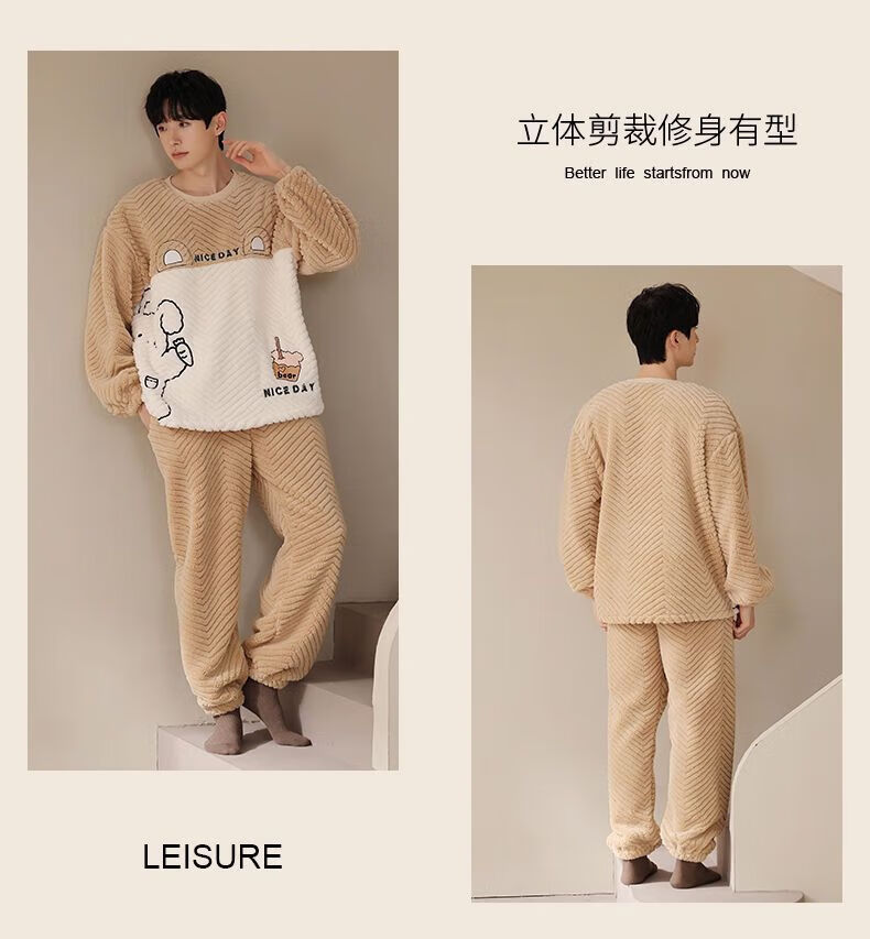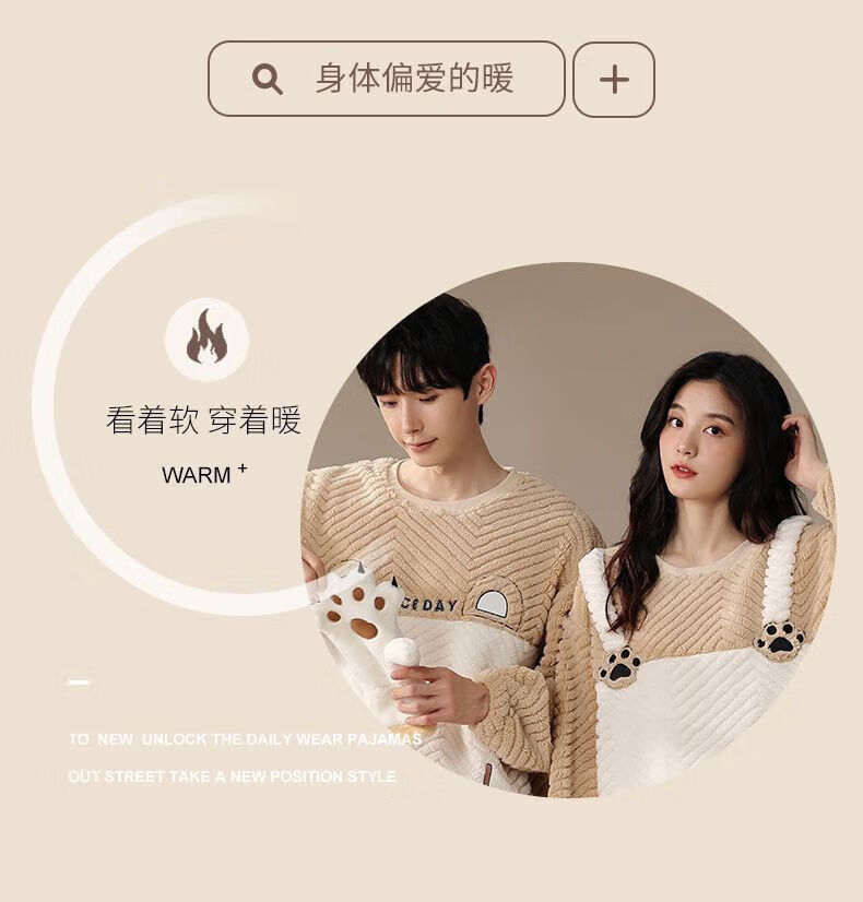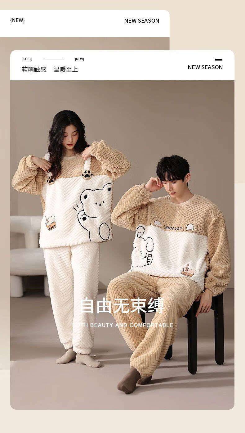 Victoria's style couple's pajamas winter coral velvet thickened and warm one man and one woman cartoon cute home wear outer suit LN9018 M women's + men's L