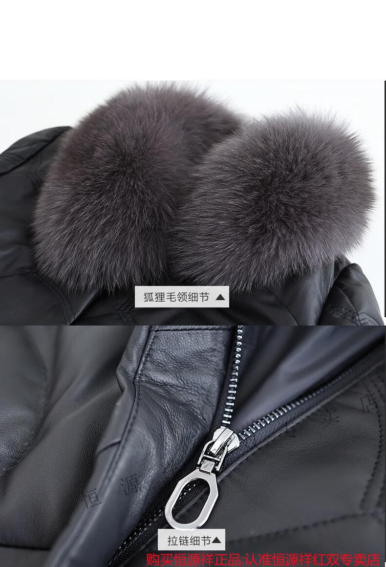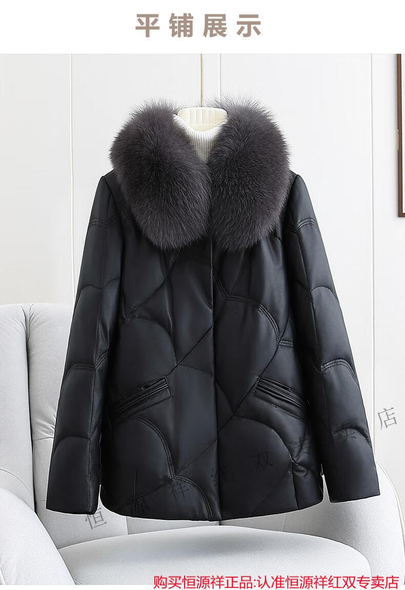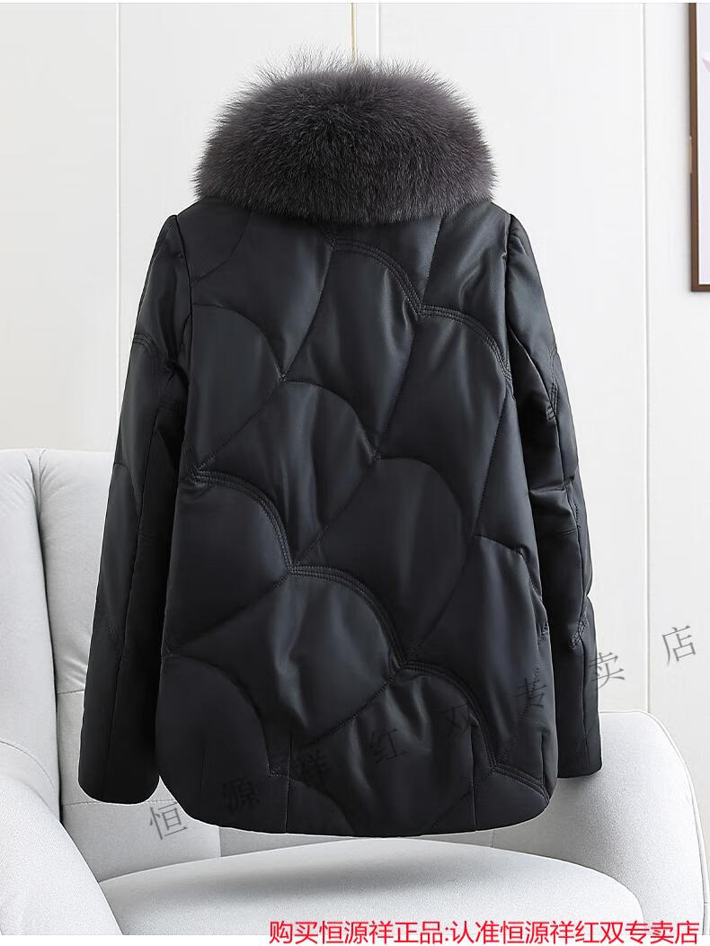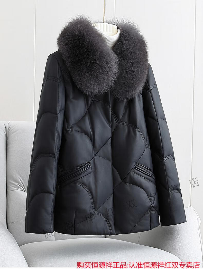 Hengyuanxiang Genuine Leather Down Jacket Women's Short 2025 Winter New Thickened Fox Fur Collar Fur Sheep Skin Mother Haining Leather Jacket Black 4XL 155-170Jin Jin equals 0.5 kg