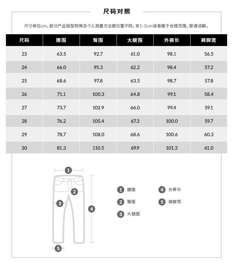 Outseam (cm) 99 cm 101.5 cm 104 cm 106.5 cm 109 cm