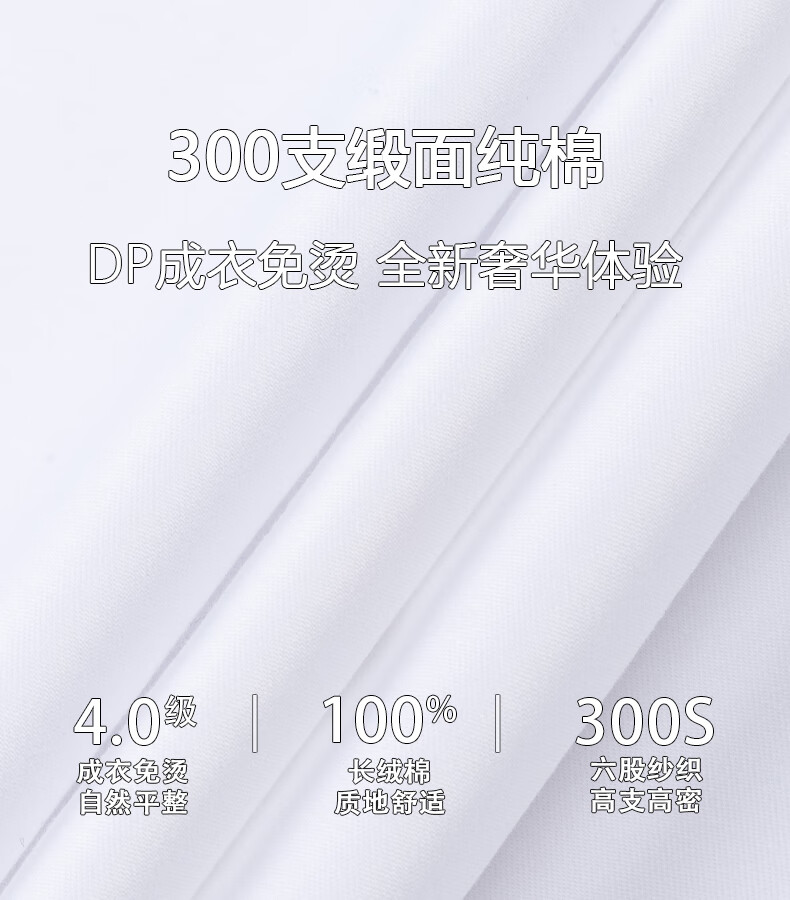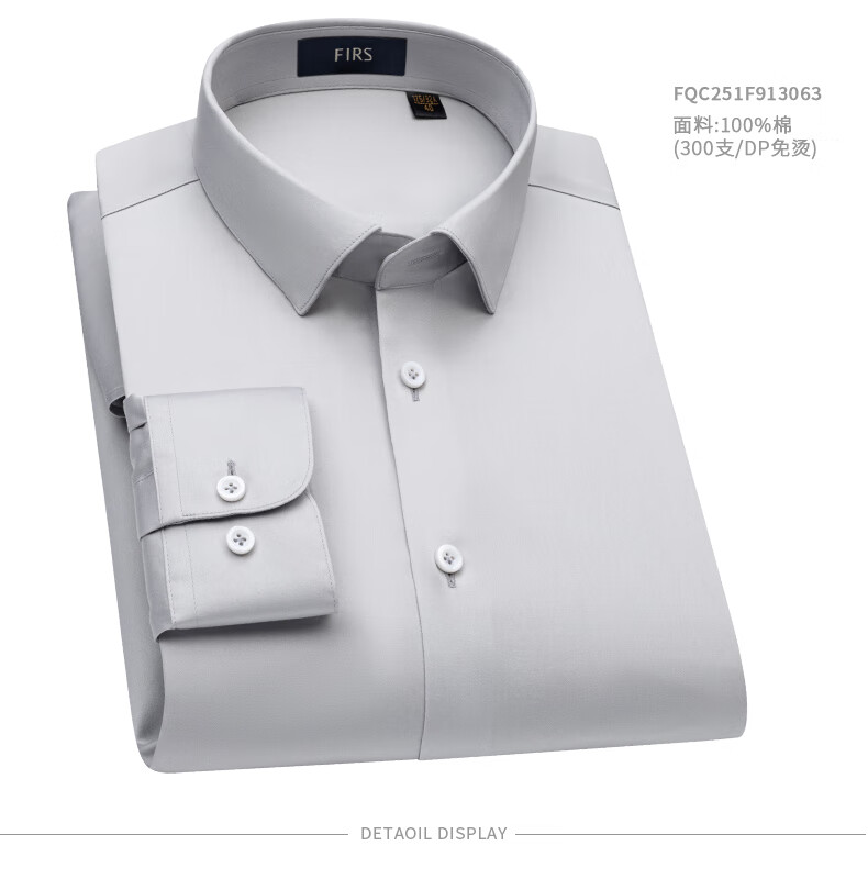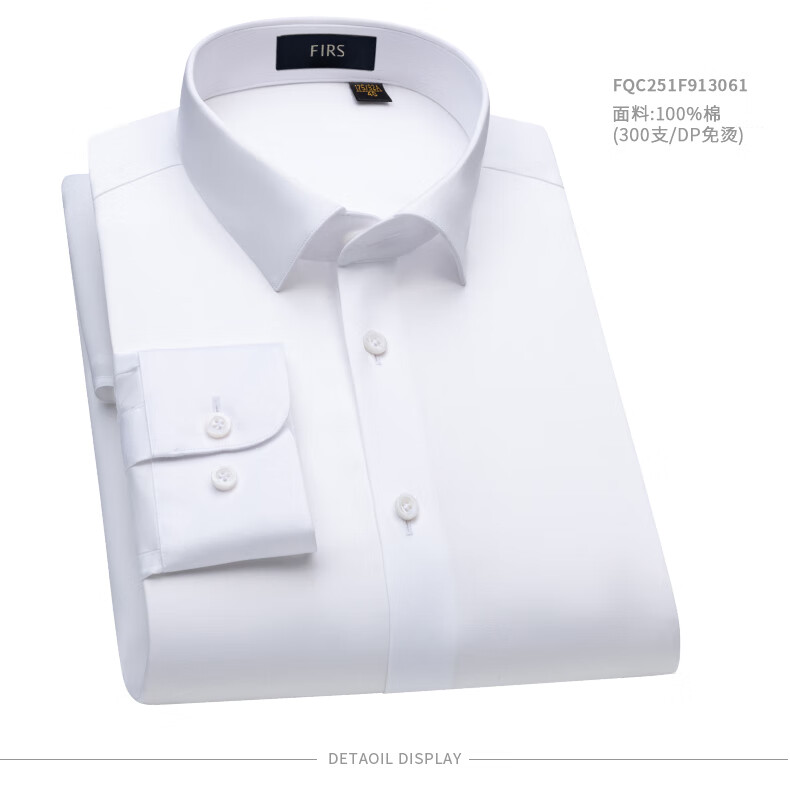 Shanshan (FIRS) 300 count satin cotton high-end DP no-iron shirt men's long-sleeved casual business light luxury shirt long-lasting white 300 count pure cotton + DP no-iron 40 (recommended 68-74kg)