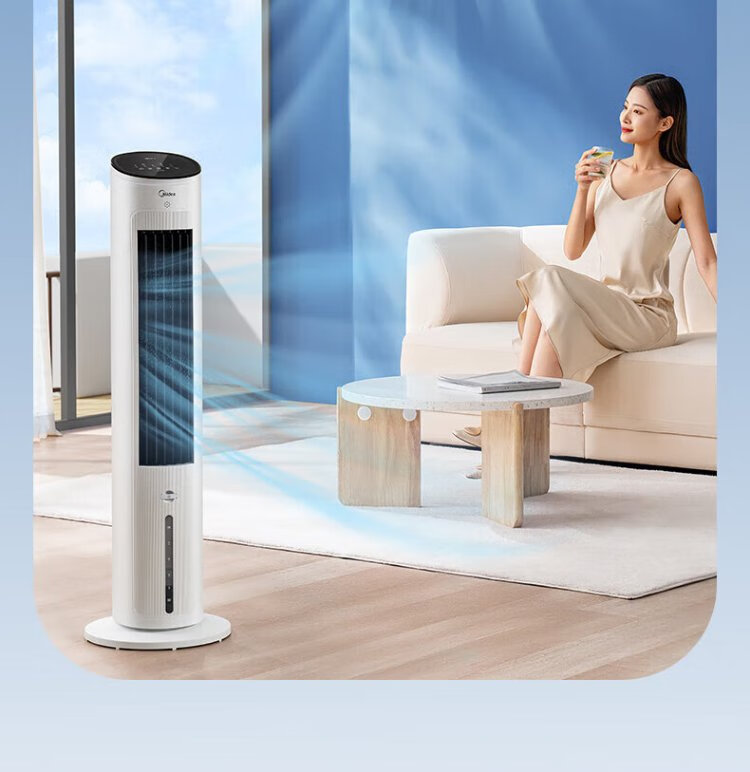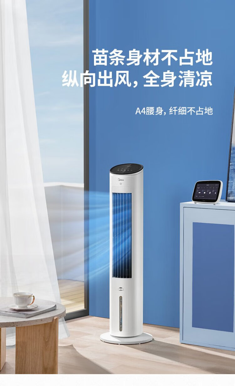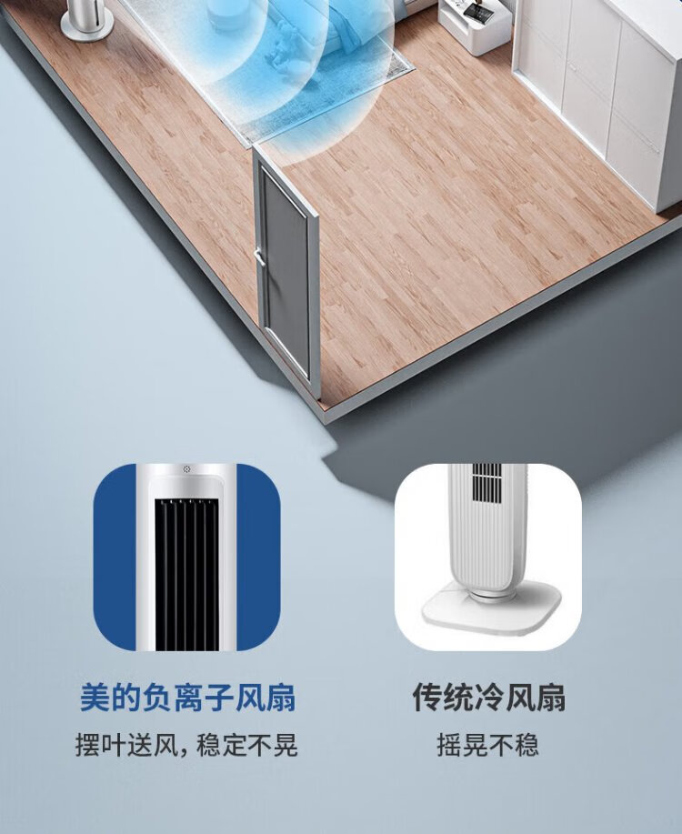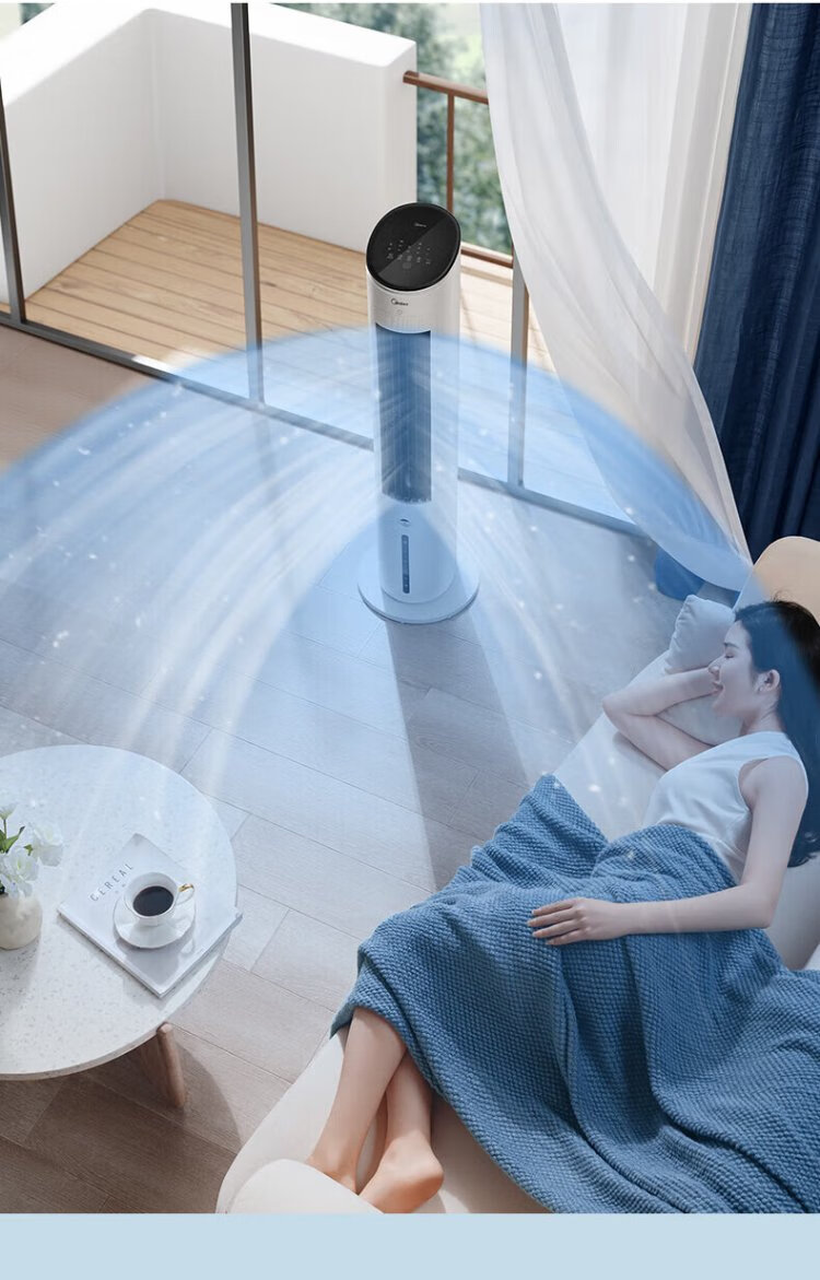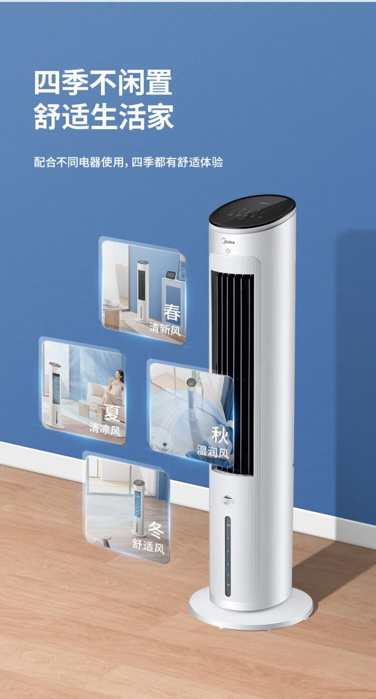 Midea heating and cooling household heater bladeless tower fan floor-standing small air conditioner small fan mobile electric fan bathroom electric heater energy-saving whole house office artifact tower type gray with humidification box voice intelligent control four seasons