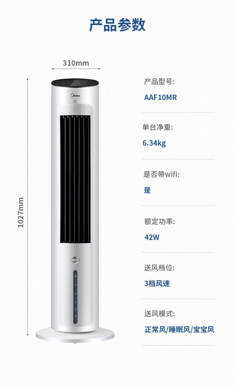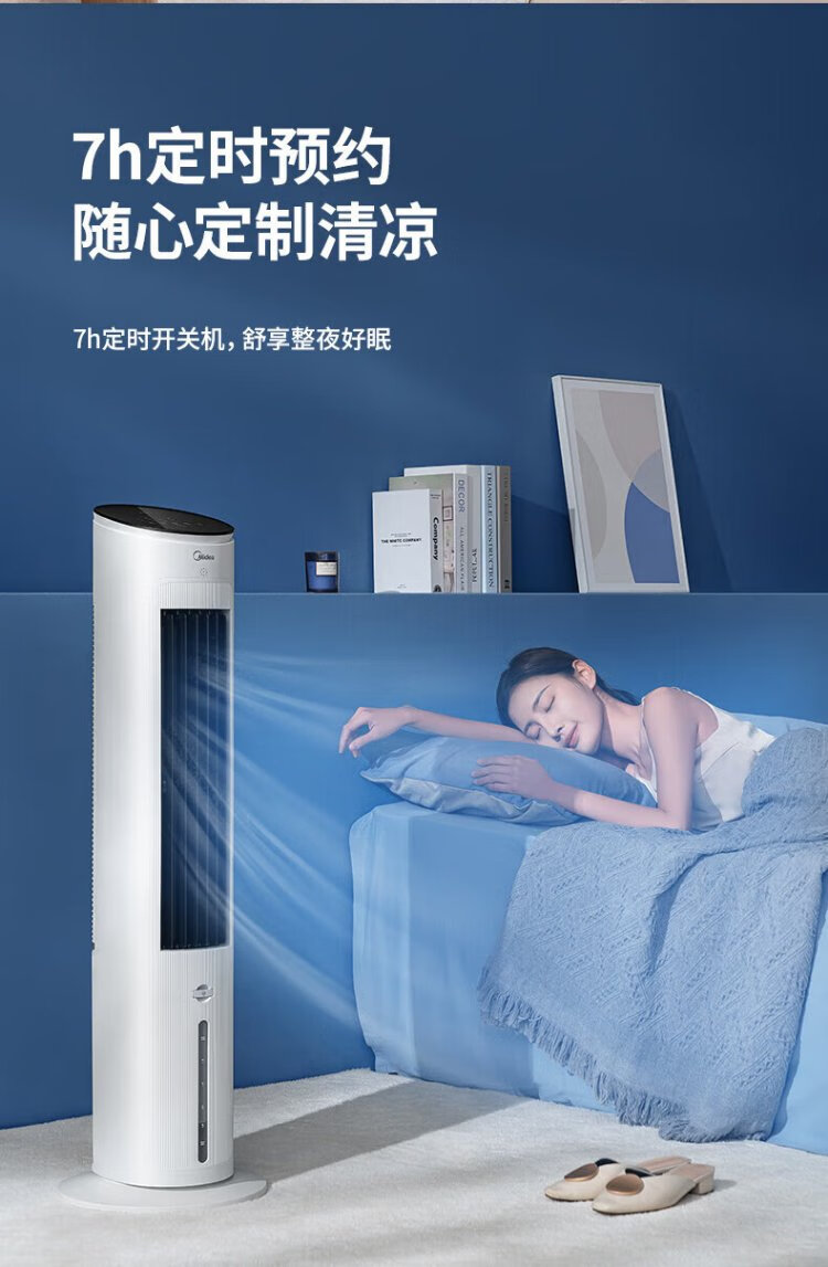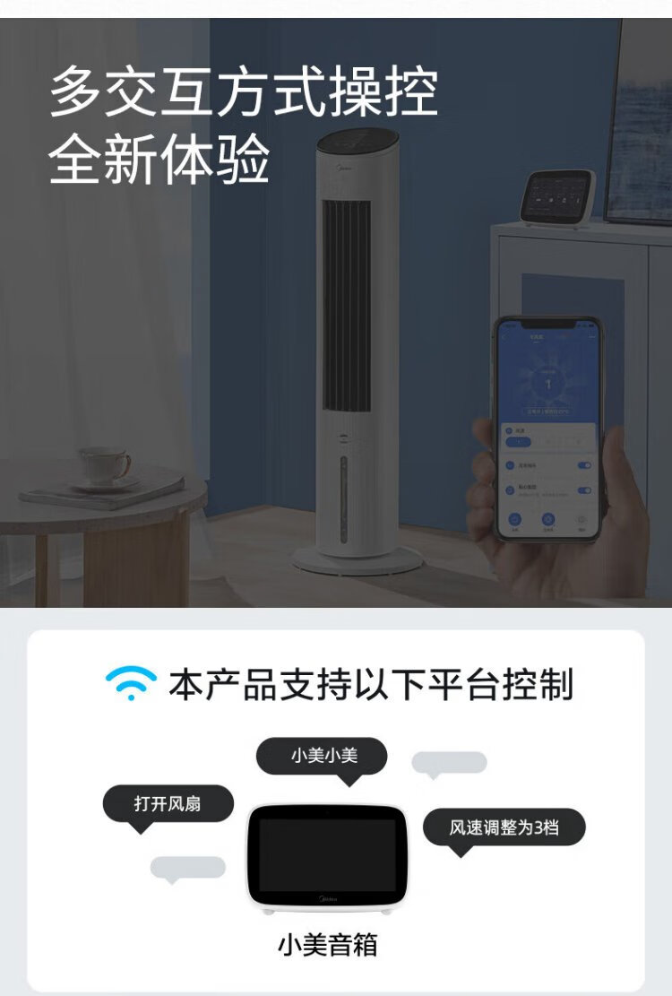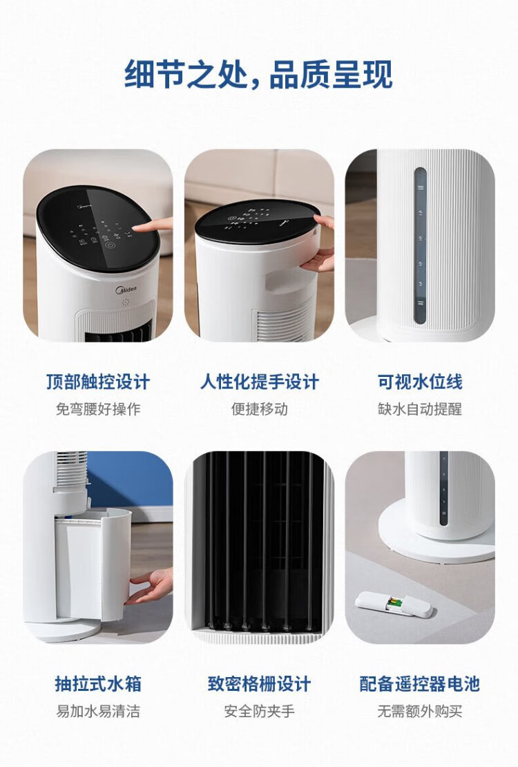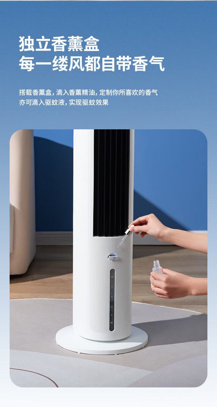 Midea heating and cooling household heater bladeless tower fan floor-standing small air conditioner small fan mobile electric fan bathroom electric heater energy-saving whole house office artifact tower type gray with humidification box voice intelligent control four seasons