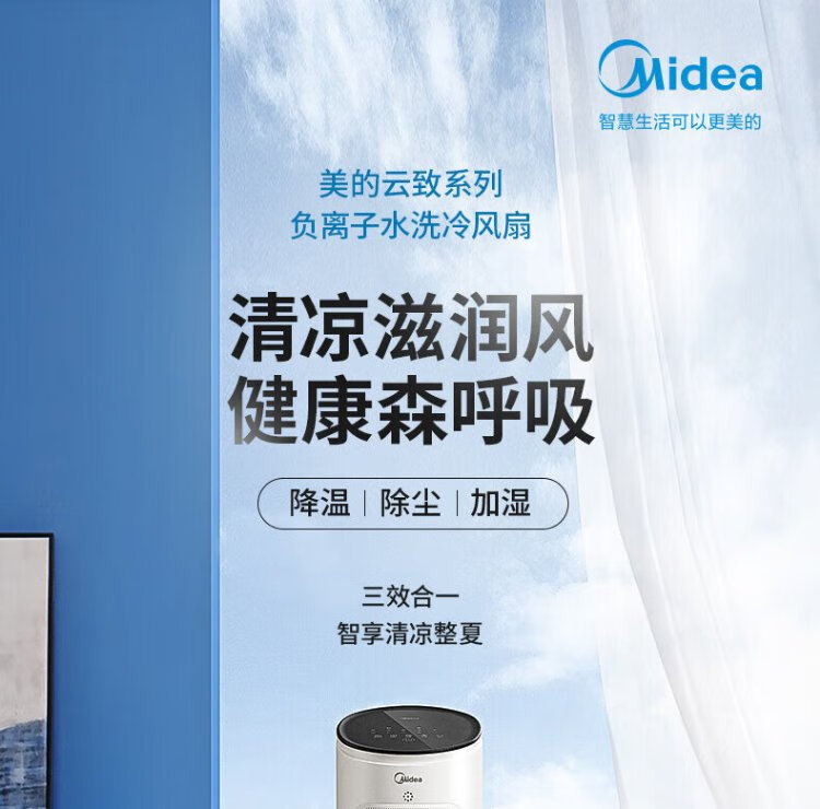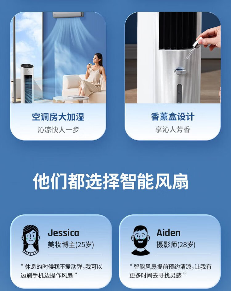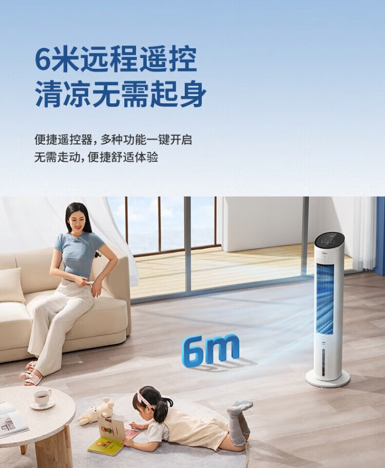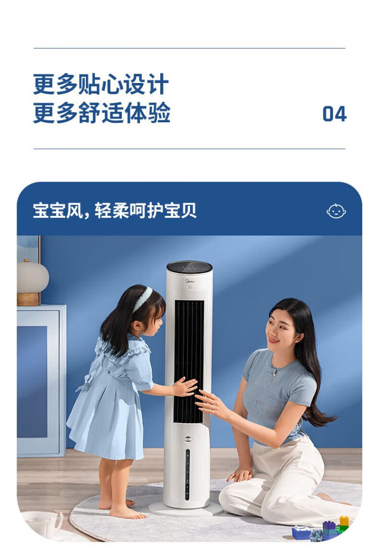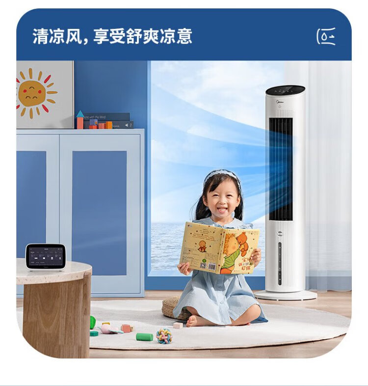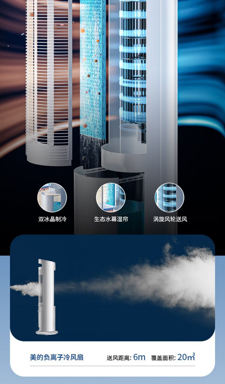 Midea heating and cooling household heater bladeless tower fan floor-standing small air conditioner small fan mobile electric fan bathroom electric heater energy-saving whole house office artifact tower type gray with humidification box voice intelligent control four seasons