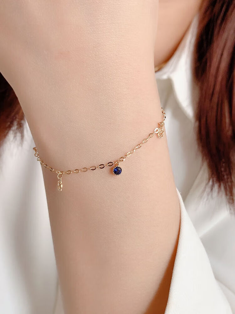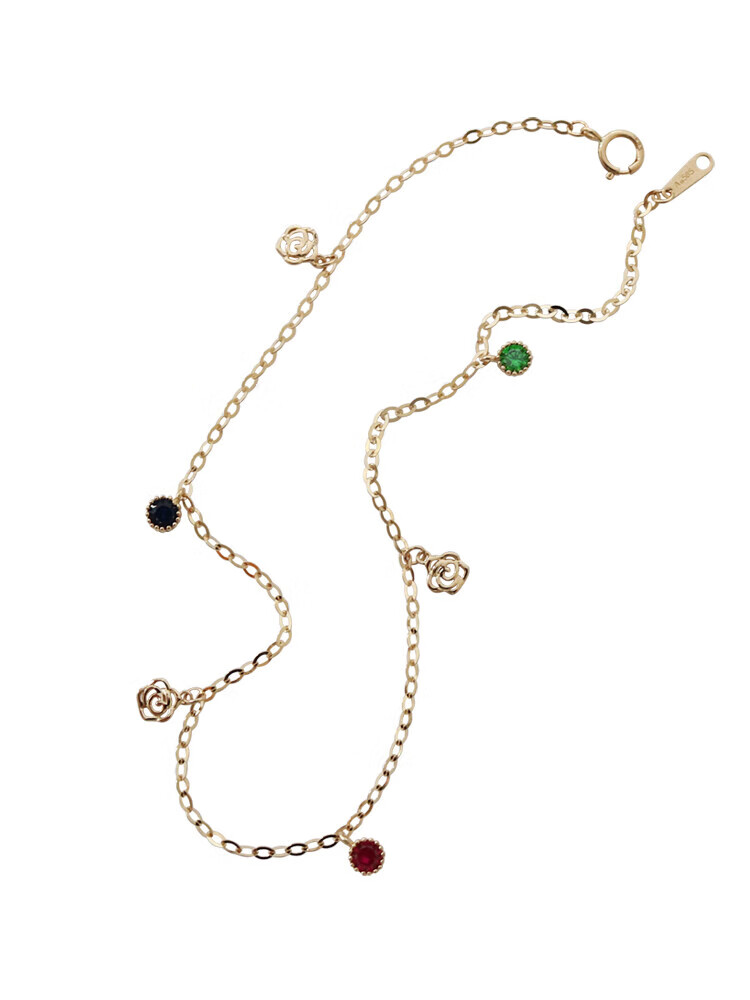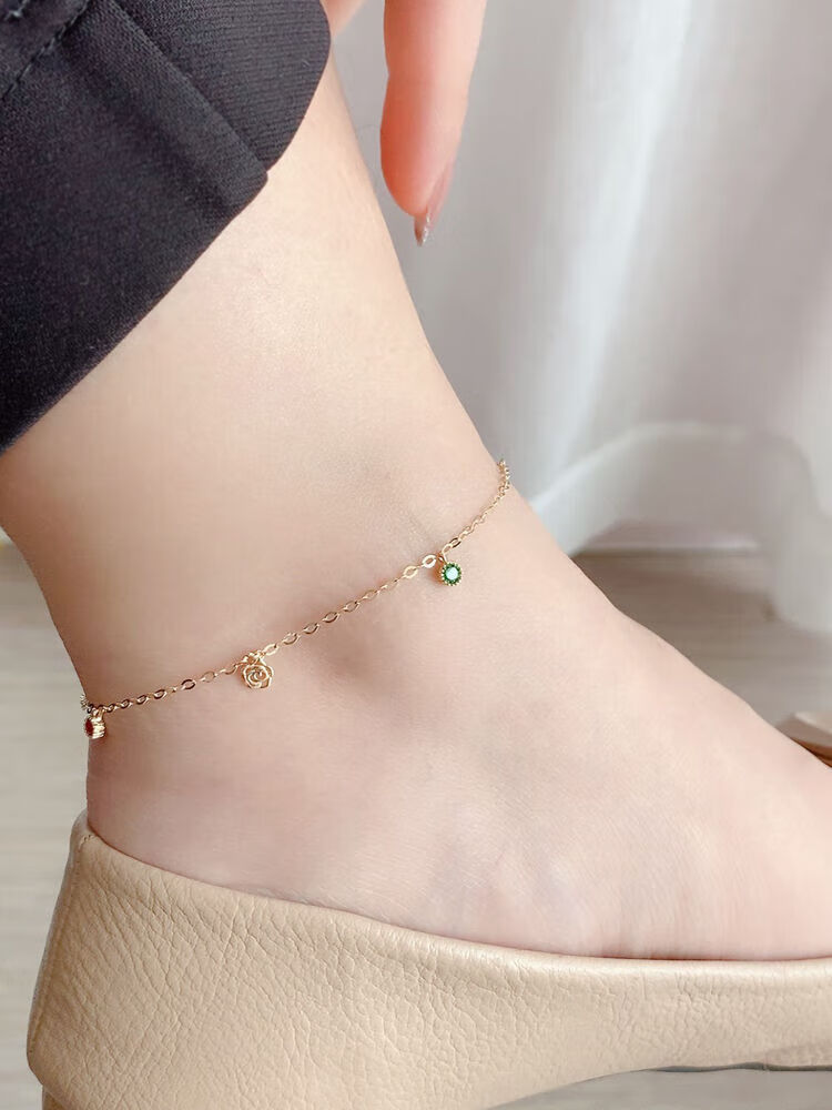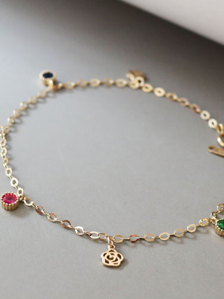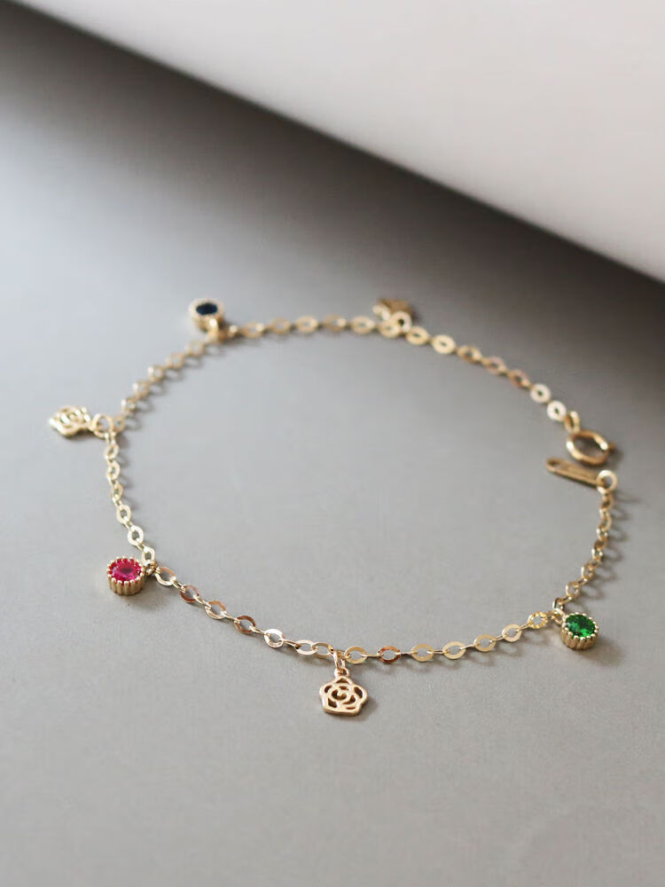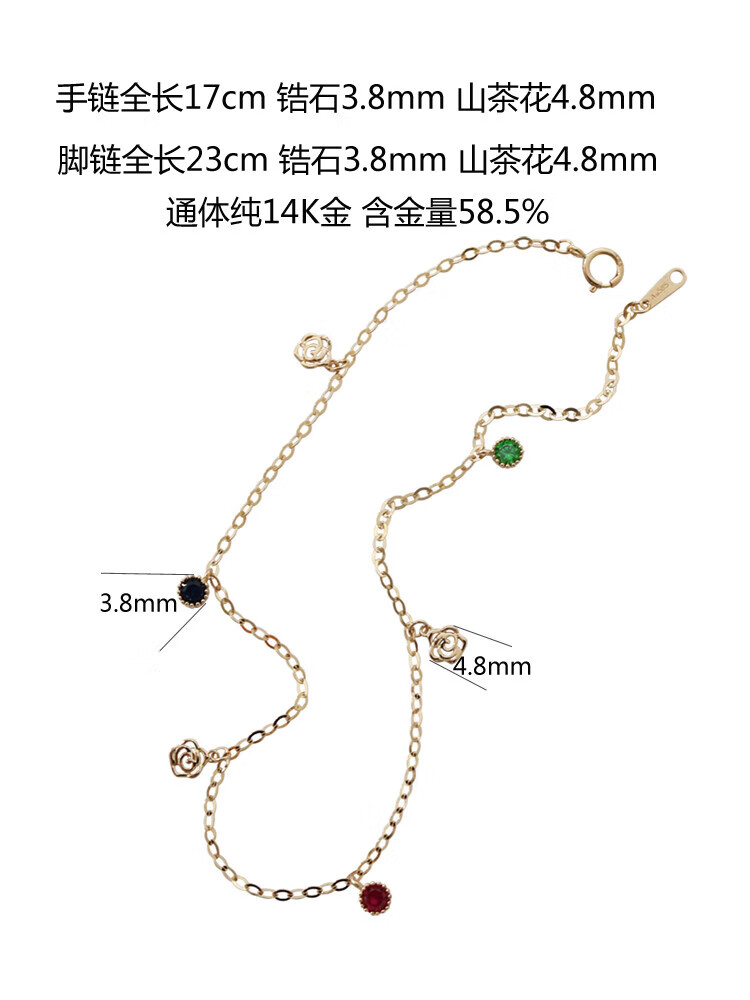Luanjie simple Korean pure 14K gold female color diamond hollow camellia insK gold hand jewelry anklet gift bracelet