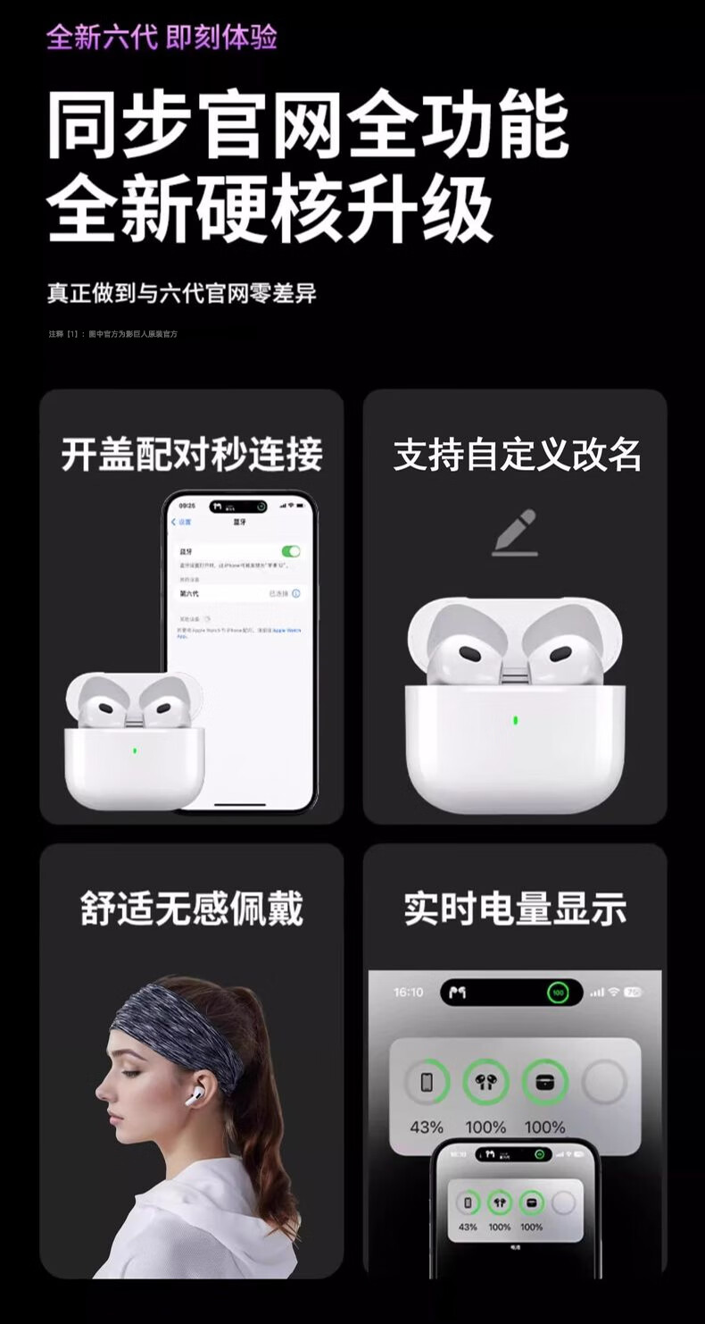Huaqiangbei Bluetooth Headset Air Wireless Pro4 ENC Noise Reduction Sports Music E-Sports Suitable for Apple Android High-end Pro4