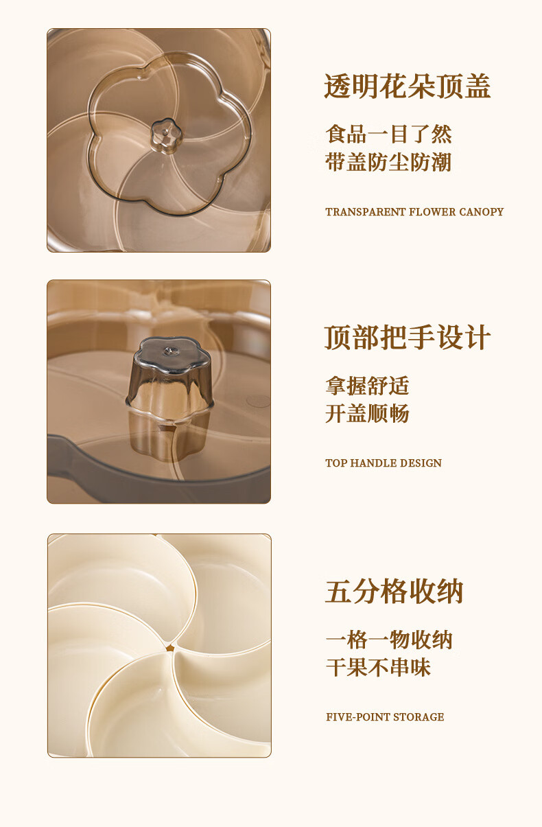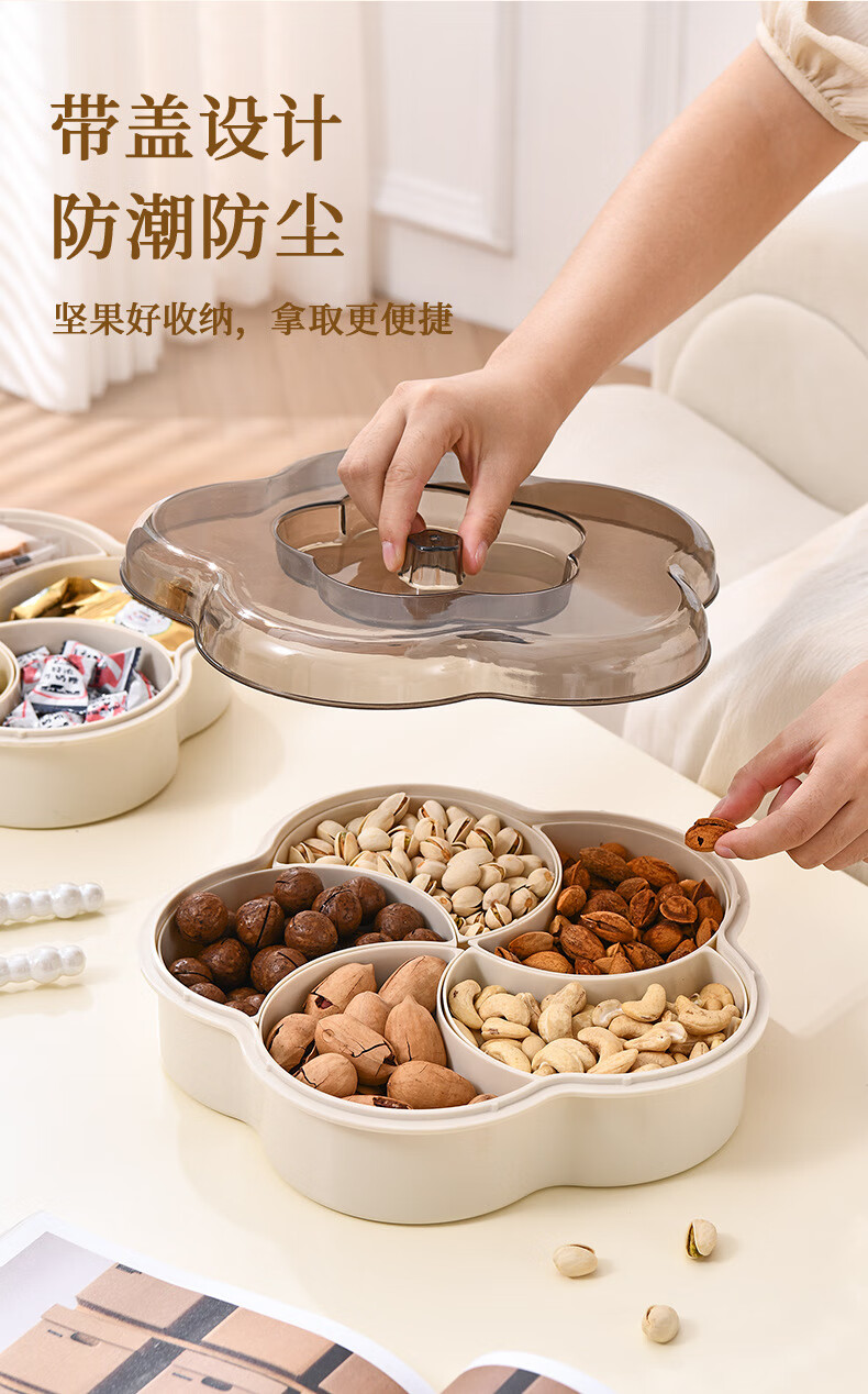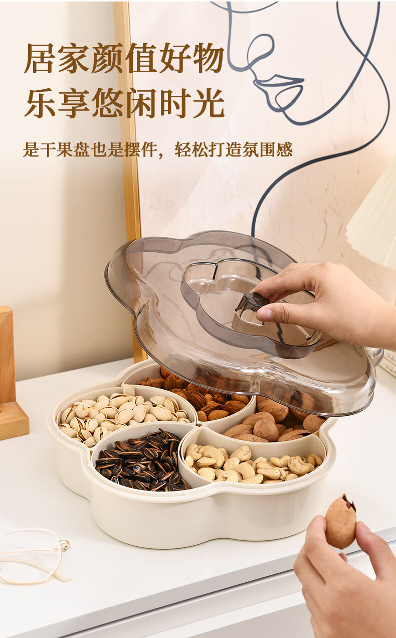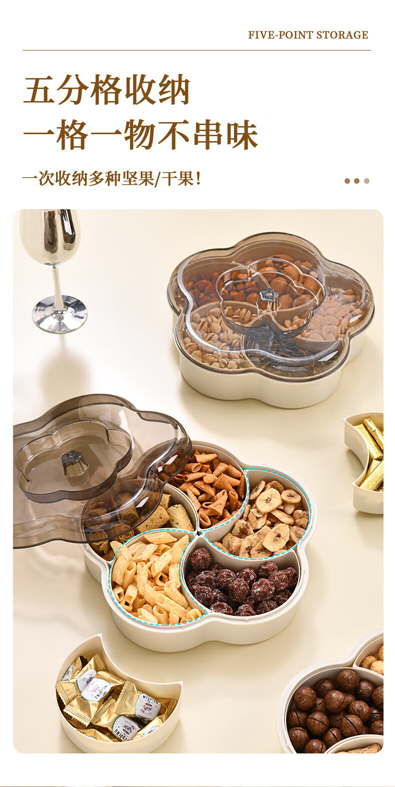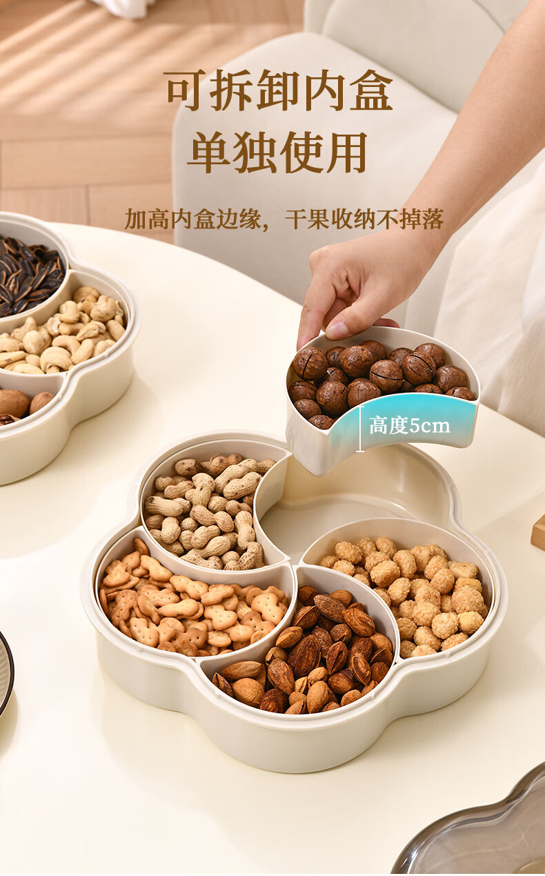 Pengjing Fruit Plate Home Living Room Coffee Table Candy Box Dried Fruit Plate Fruit Plate Housewarming Snacks Nut Storage 5-Gate Dried Fruit Box
