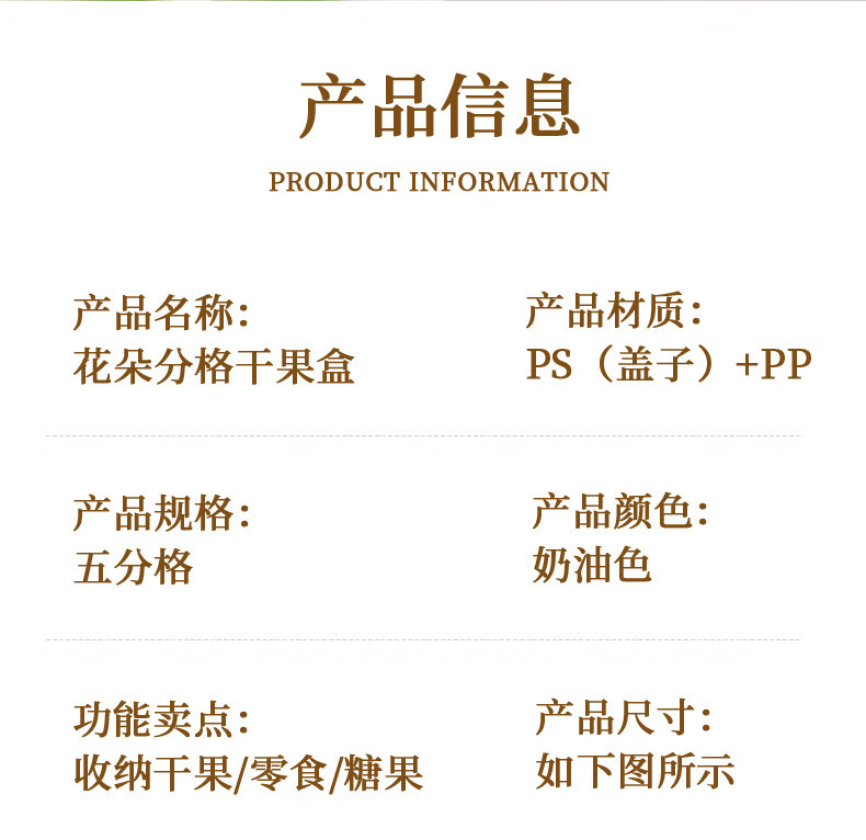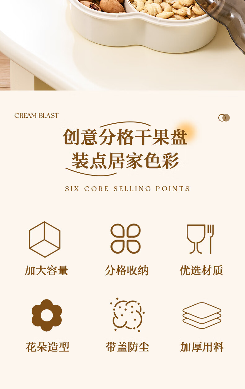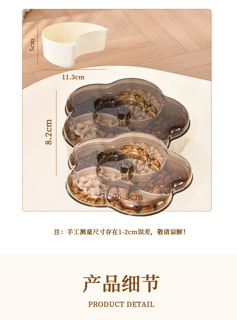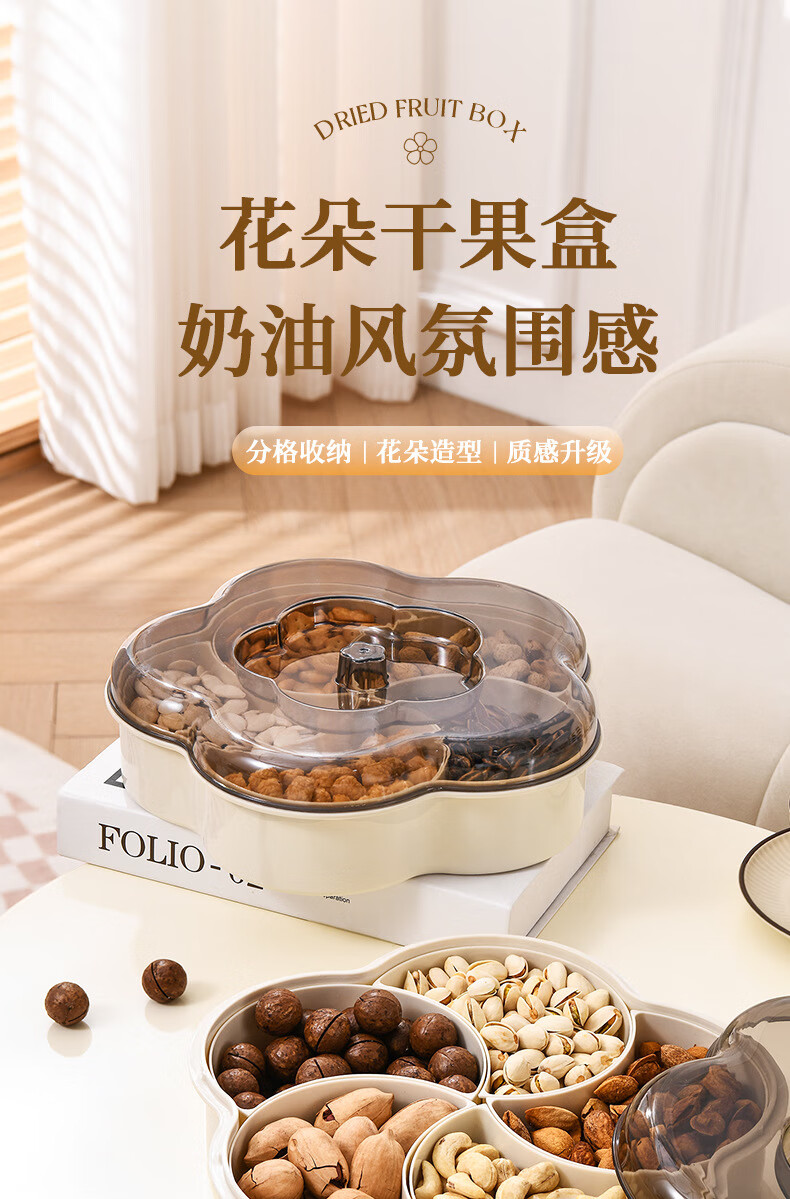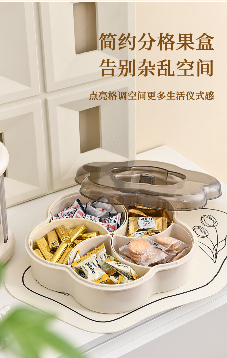 Pengjing Fruit Plate Home Living Room Coffee Table Candy Box Dried Fruit Plate Fruit Plate Housewarming Snacks Nut Storage 5-Gate Dried Fruit Box