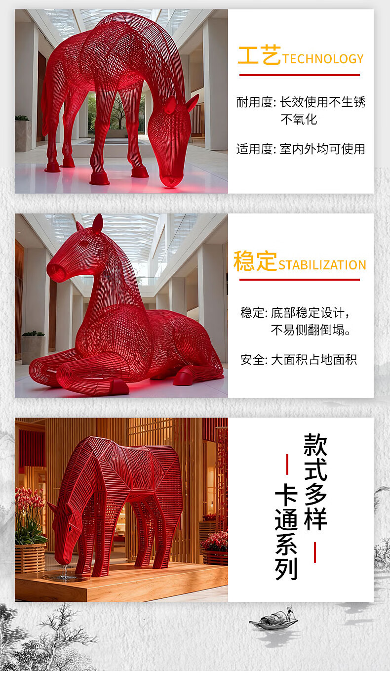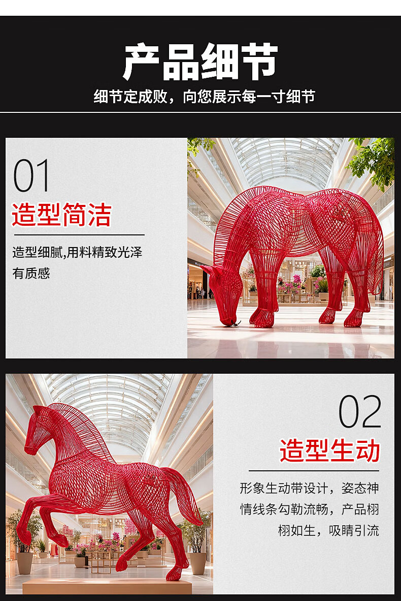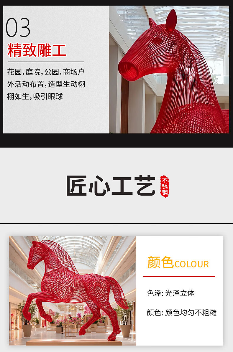 Huiqi Shangpin stainless steel hollow luminous horse sculpture outdoor courtyard garden night scene community square lighting decoration garden ornaments can be customized