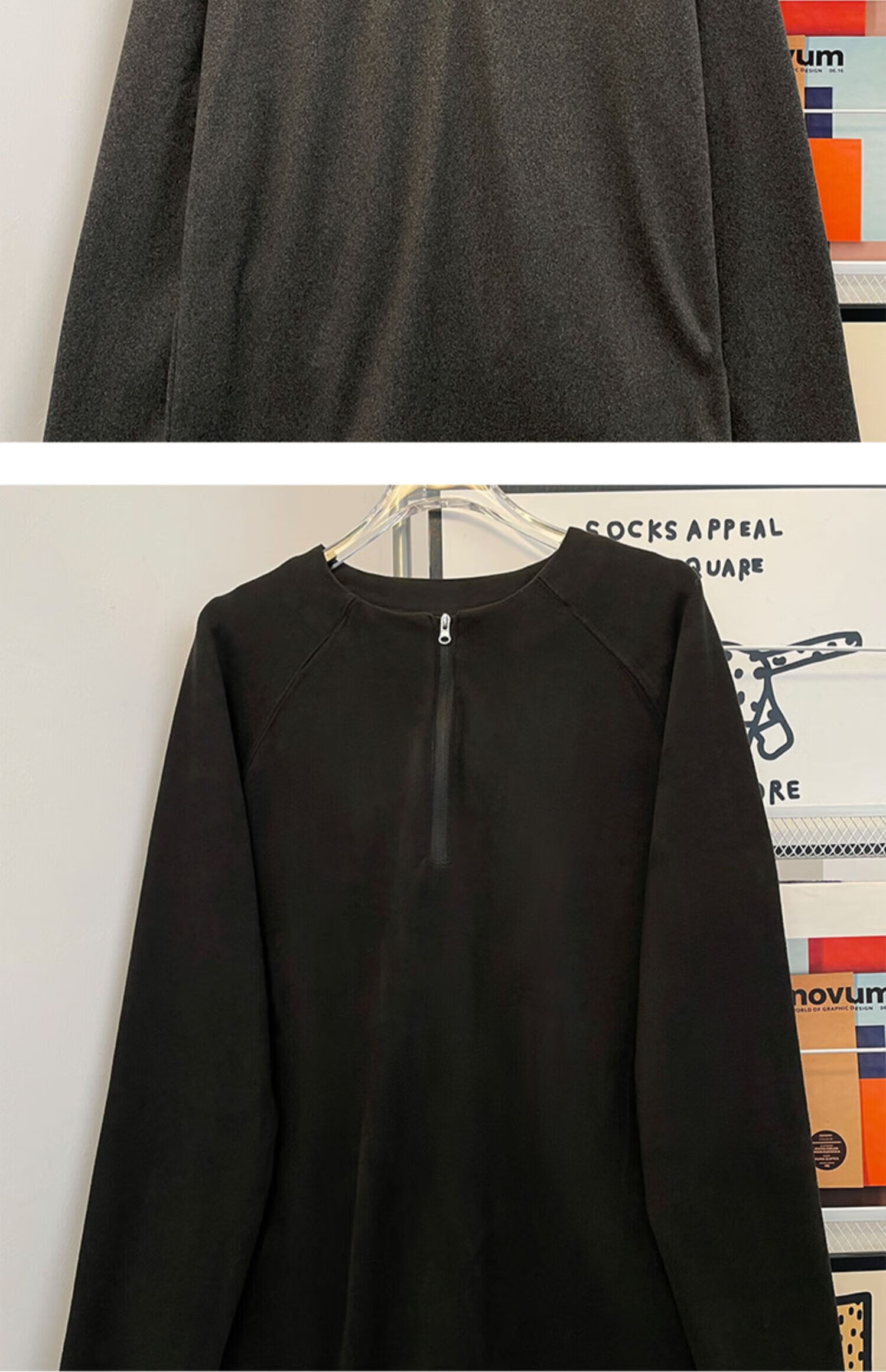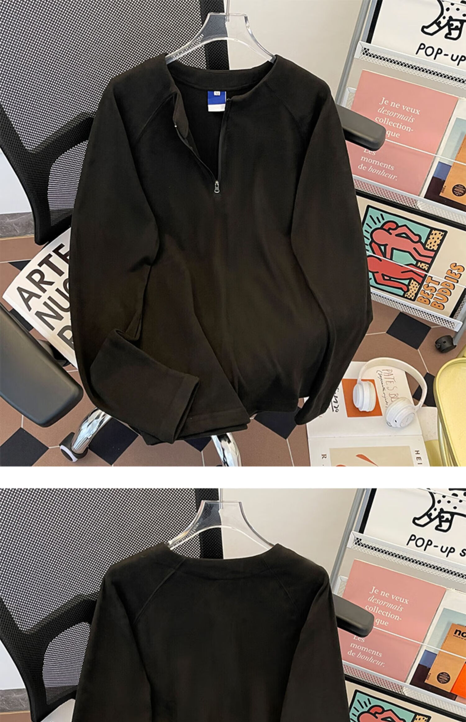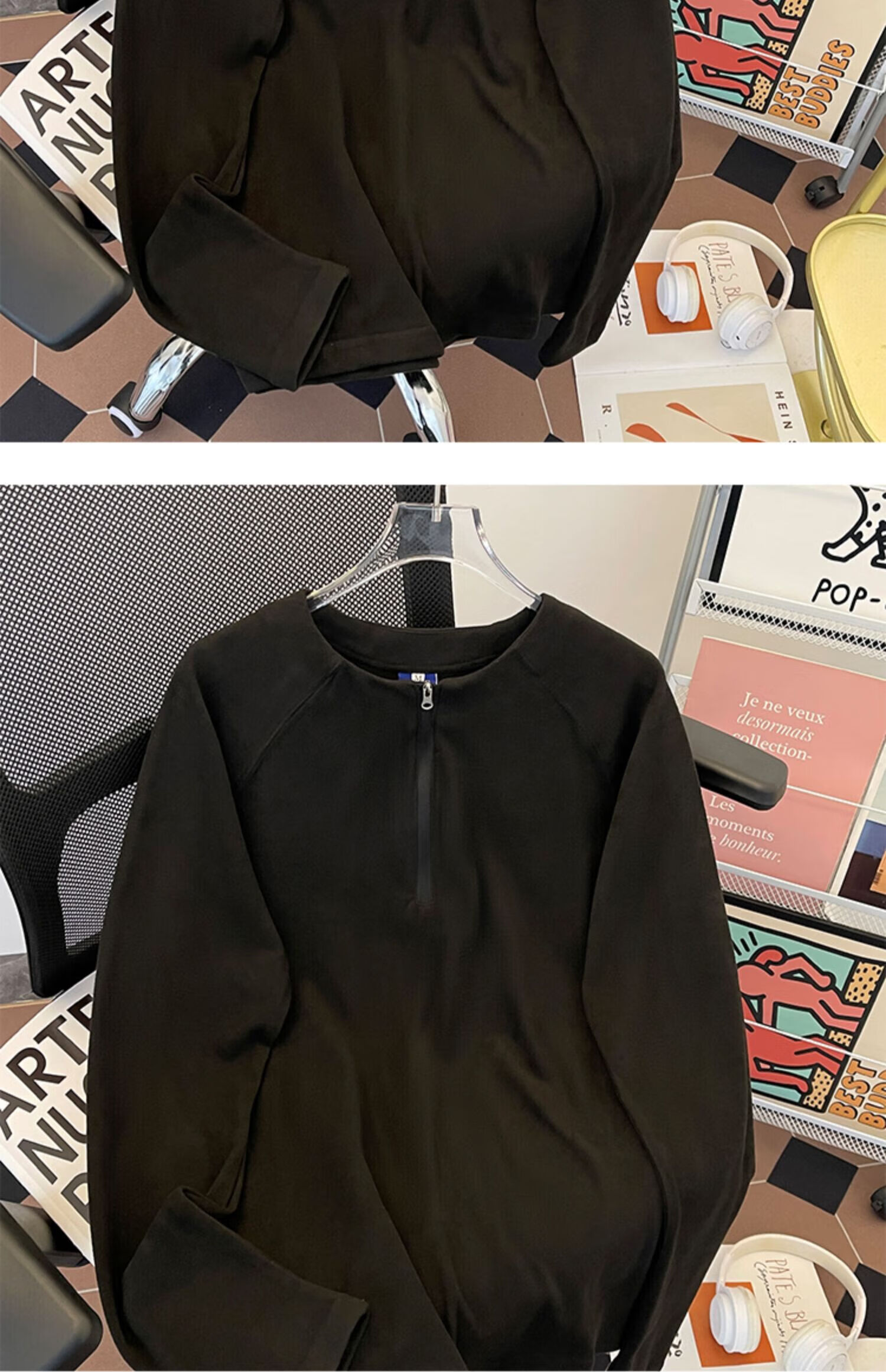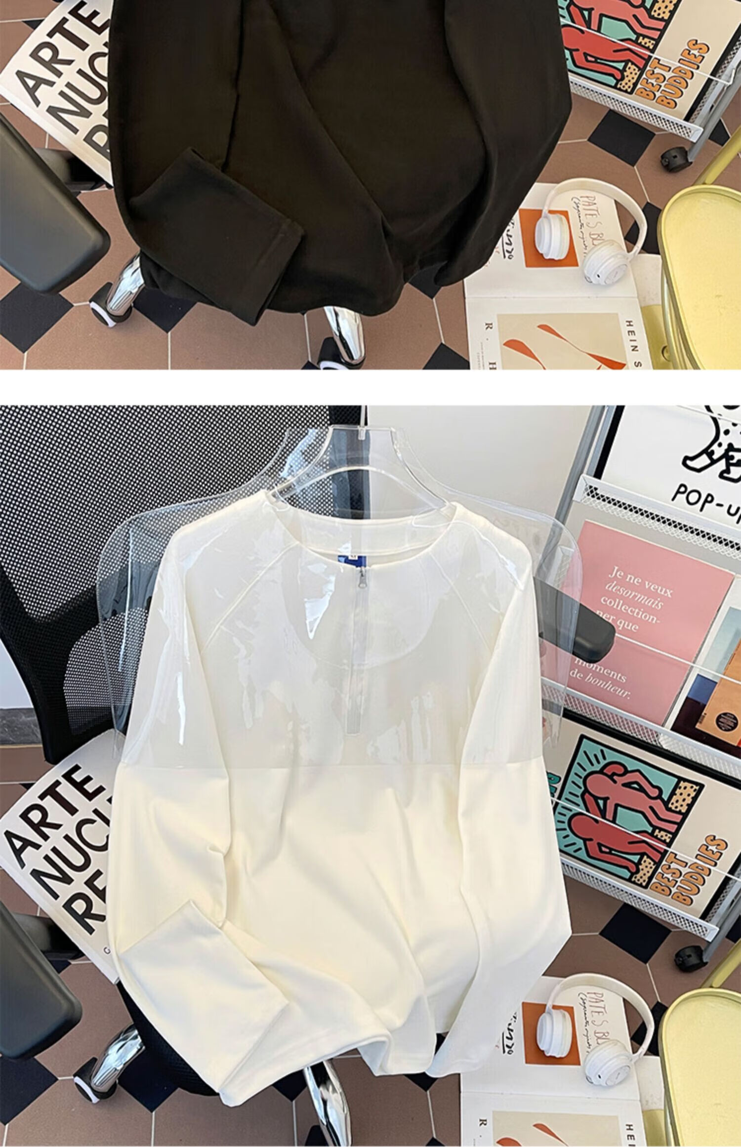 Jingyan Selects Spring and Autumn Henley Collar Sweatshirt Men's Loose Half-Zip Long Sleeve T-Shirt Trbottomyy American High White One Size M