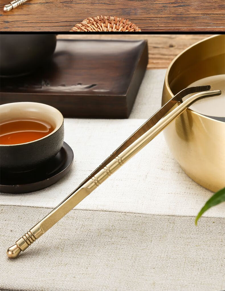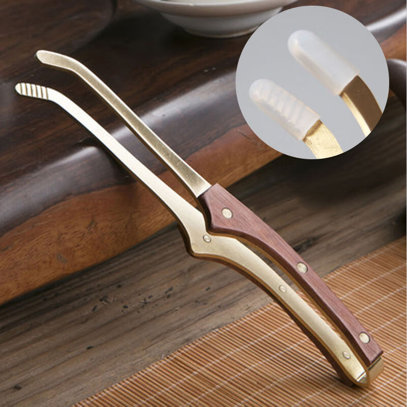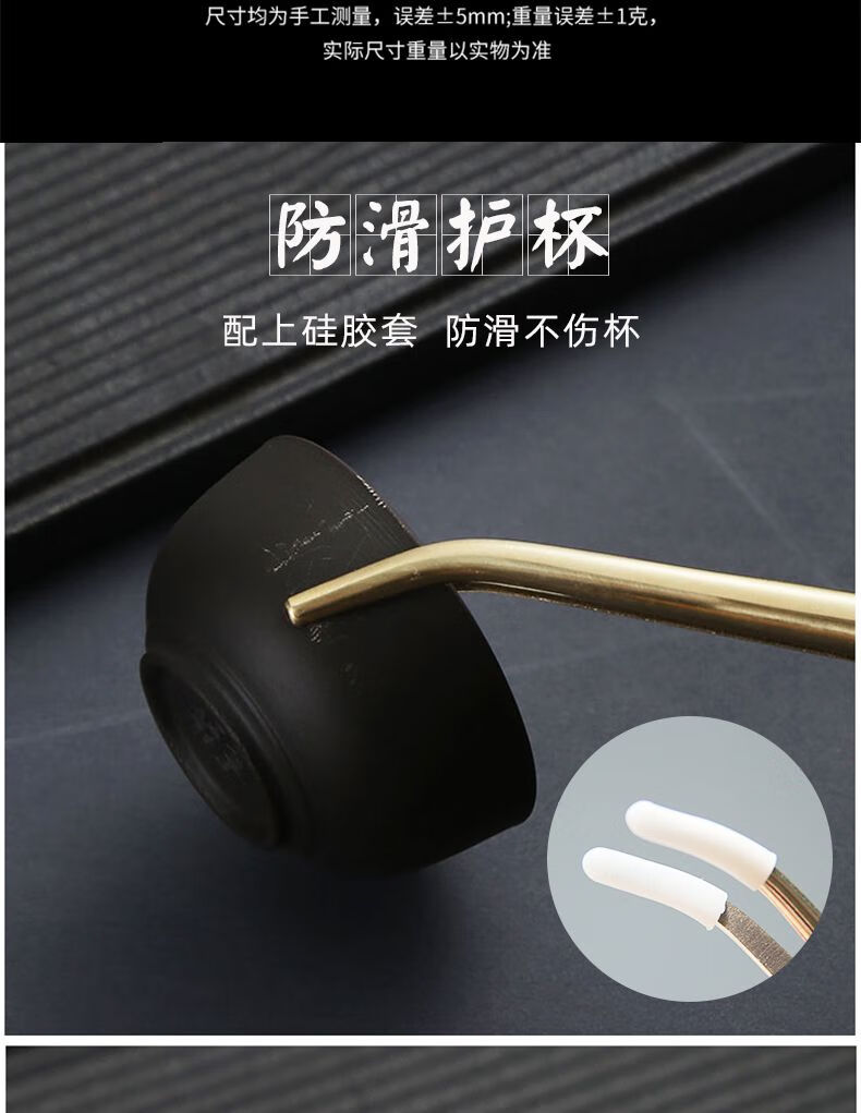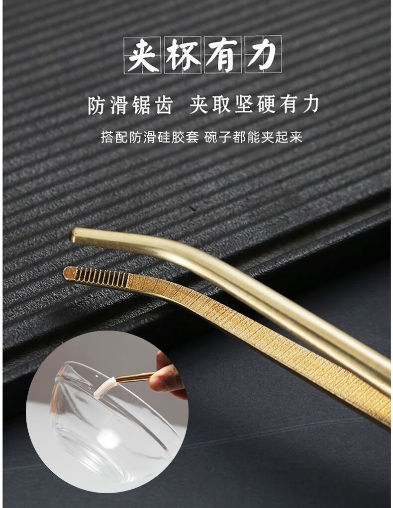 Vinoa copper tea clip, tea tweezers, non-slip tea cup clip, cup washing clip, silicone anti-scalding kung fu tea set accessories, brass tea clip, 2 brass tea clips + silicone cover