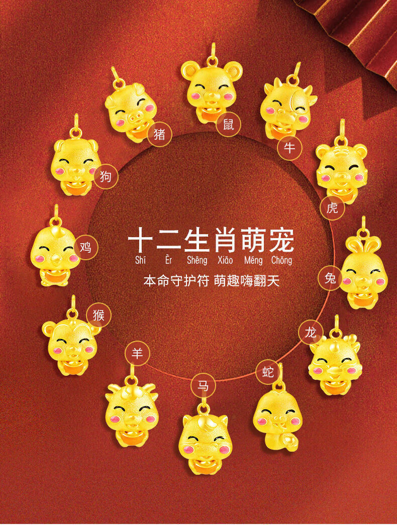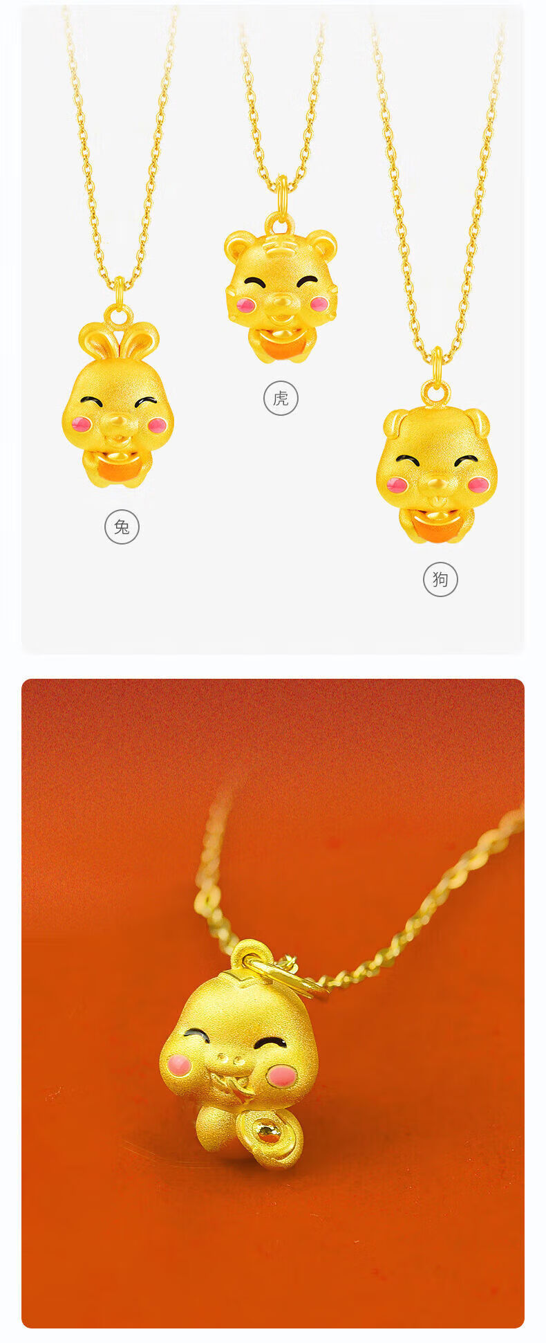 Lihu Chuxiao Gold Pendant Twelve Zodiac Gold Pendant Pure Gold Pure Gold Zodiac Year Rabbit Girl 999 Tiger Necklace