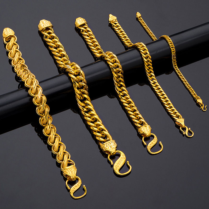 Priggs Vietnam Sand Gold Bracelet for Men and Women Couples Gold Shop Same Tank Horsewhip Chain Gold-plated Net Celebrity Jewelry Boss Boss Bracelet 8mm