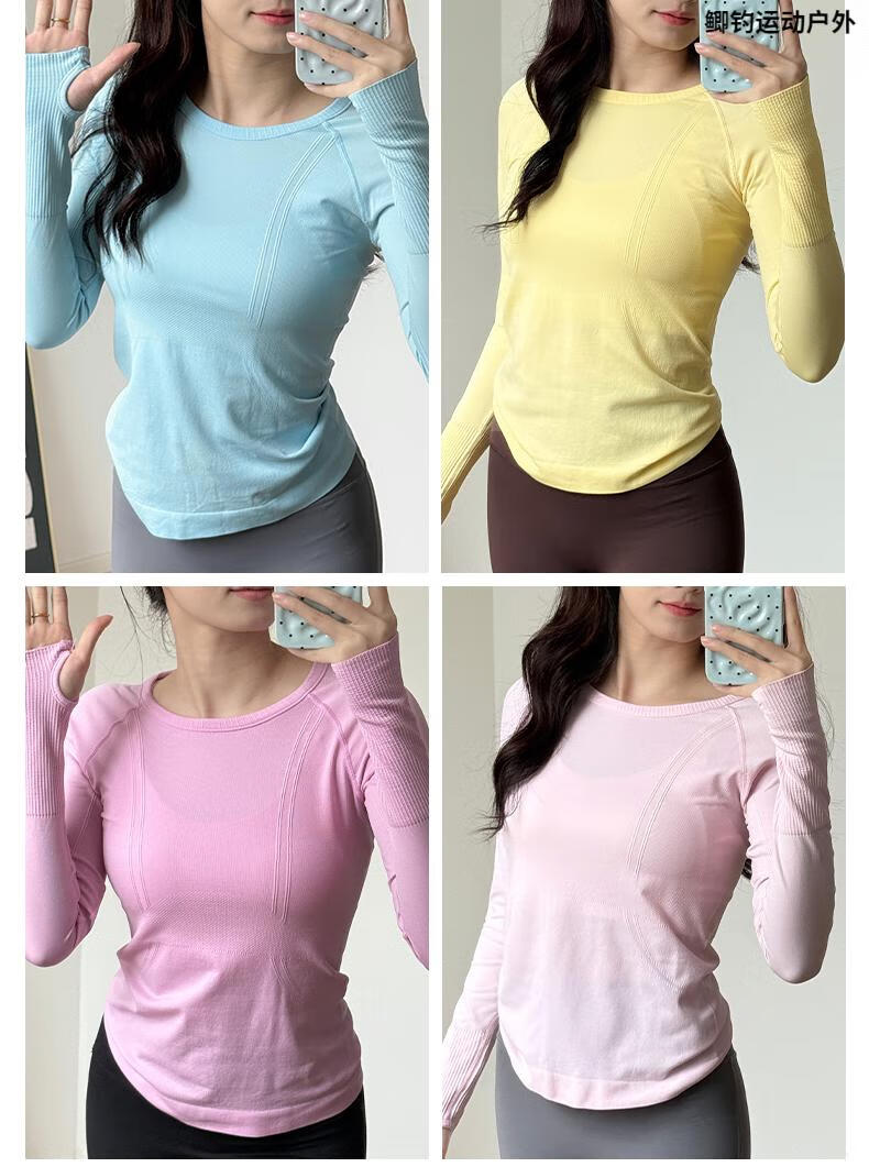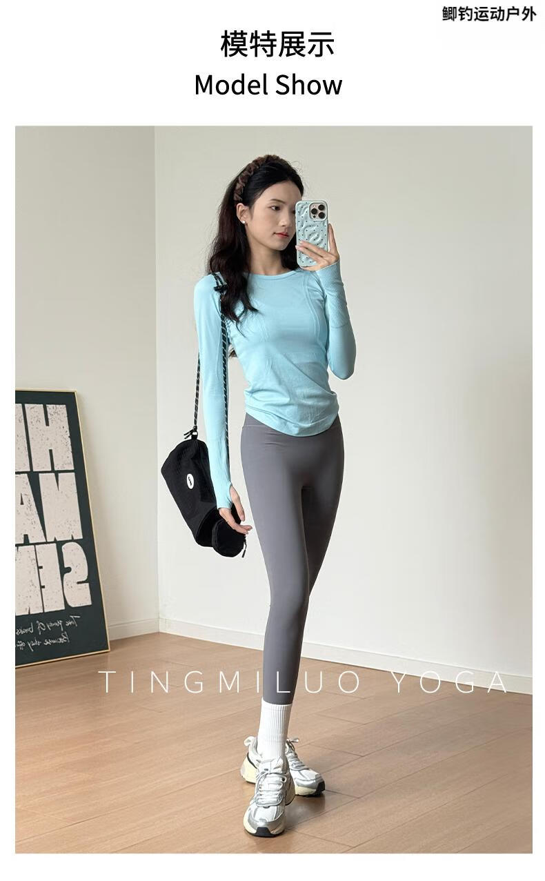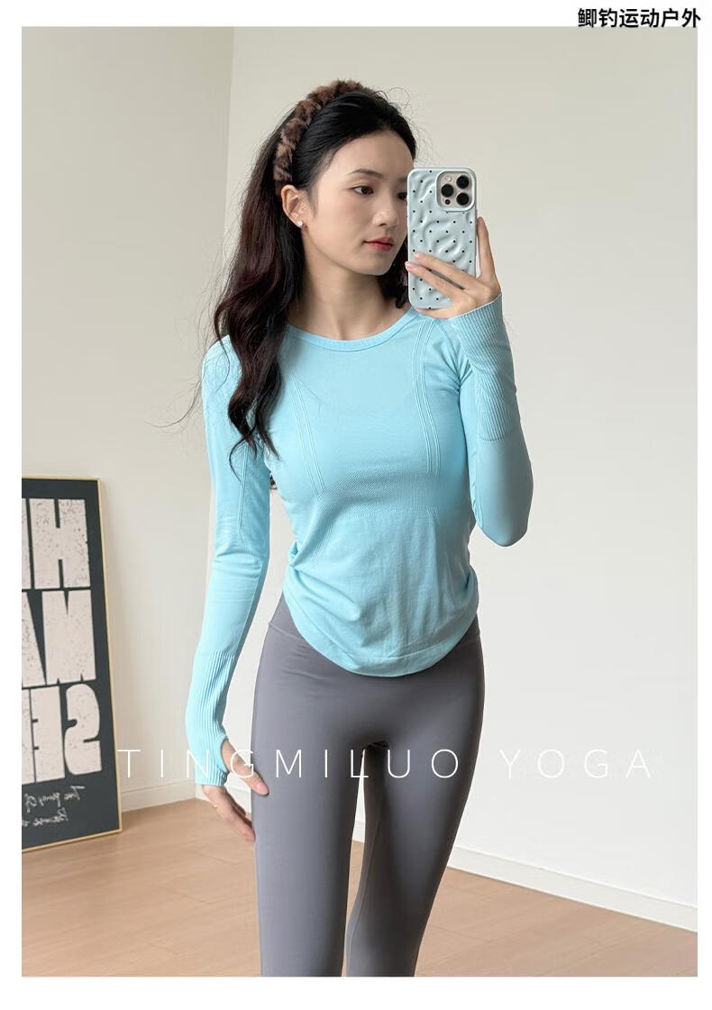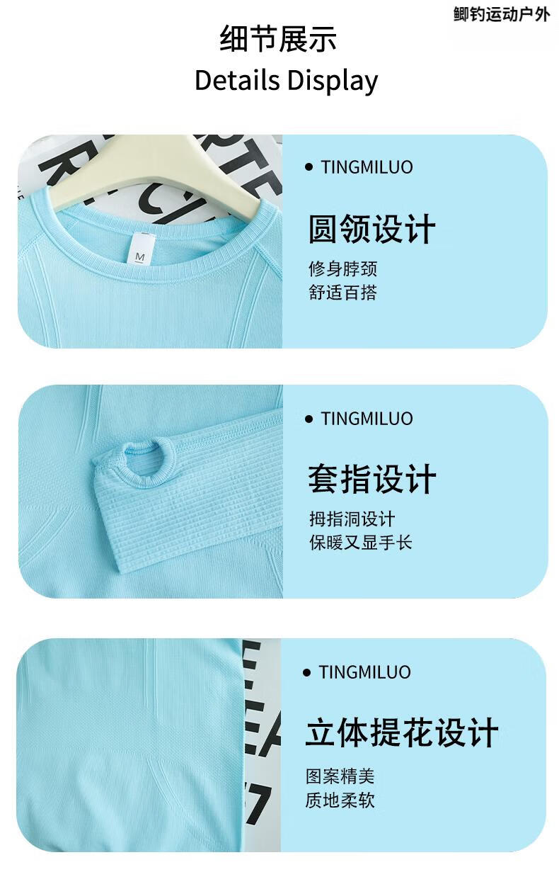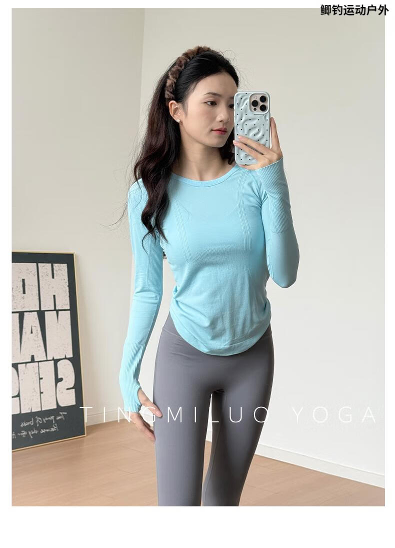 Tufeng Sports Top Women's Seamless Yoga Wear Long Sleeve Quick-Drying Running T-Shirt Slimming Pilates Training Fitness Wear Set Crushed Ice Blue S