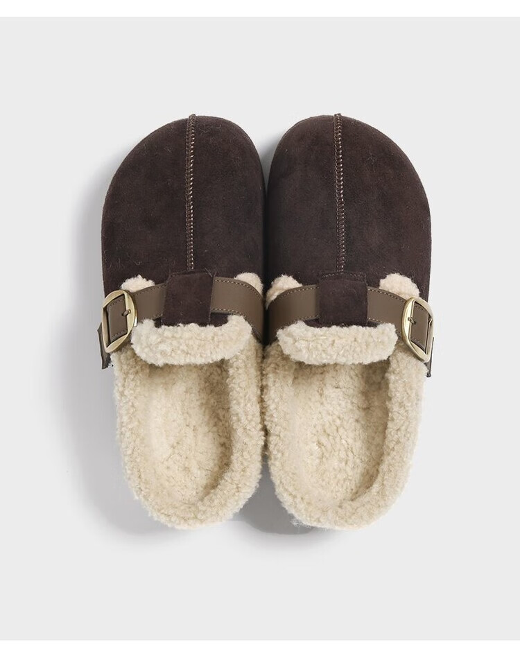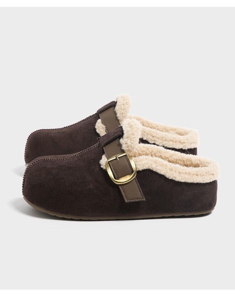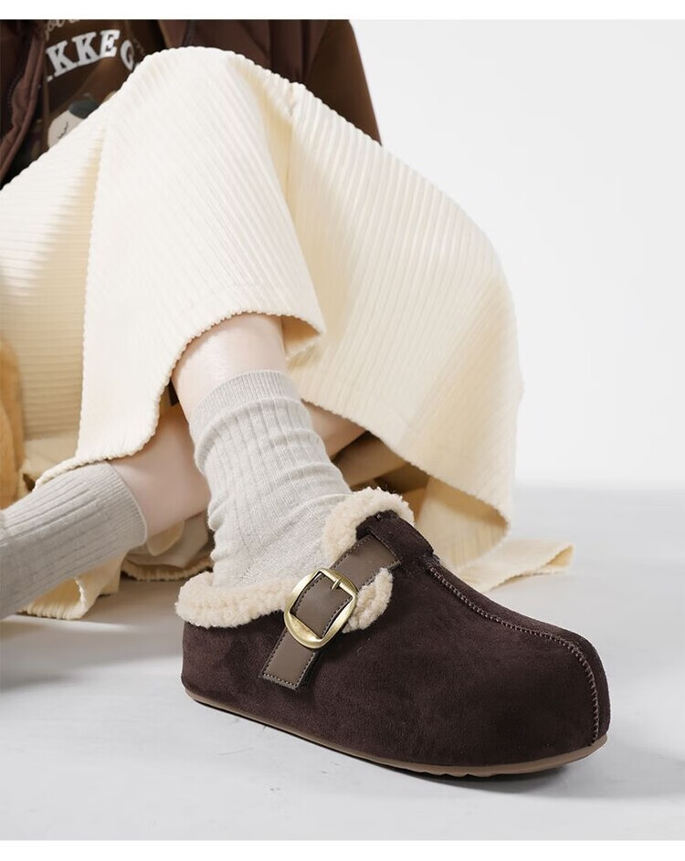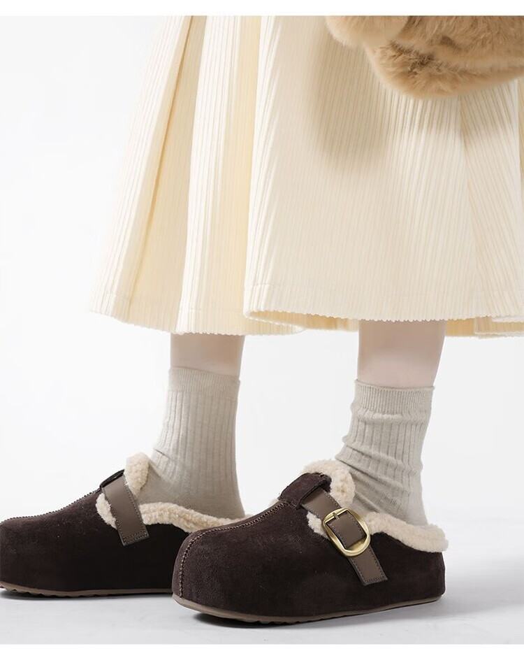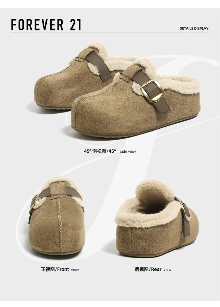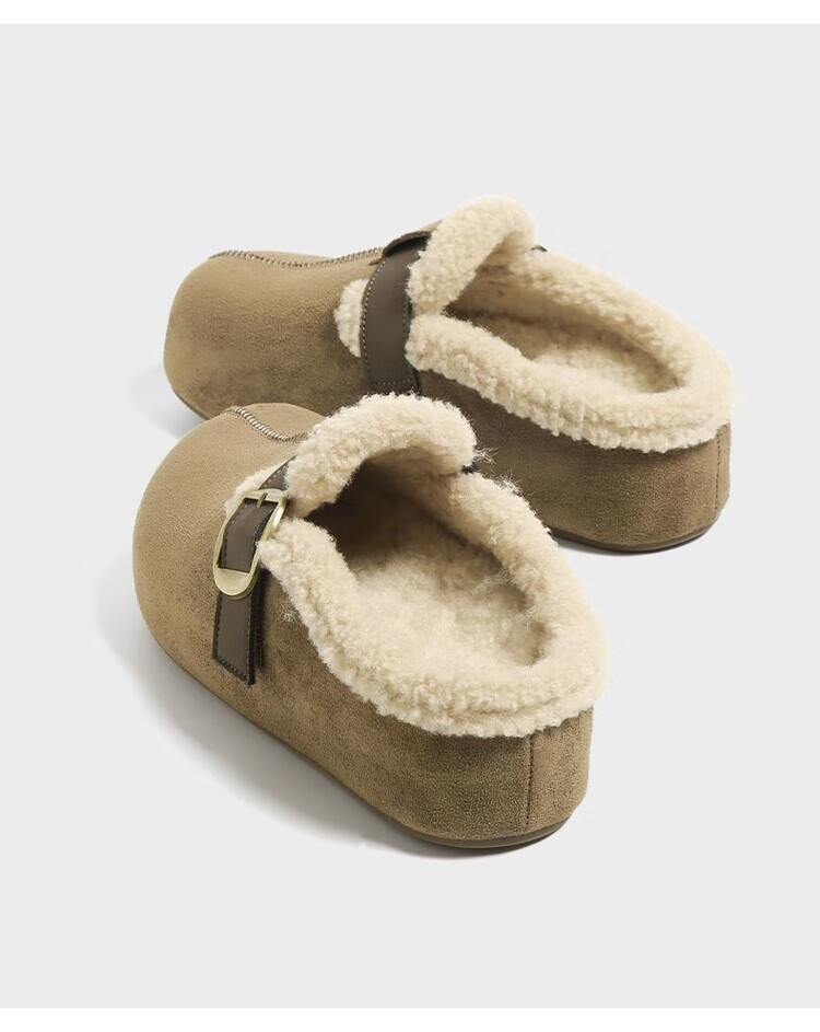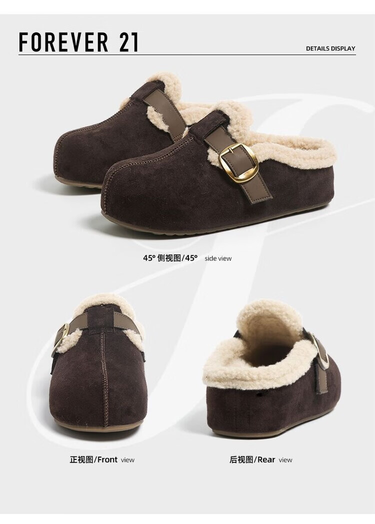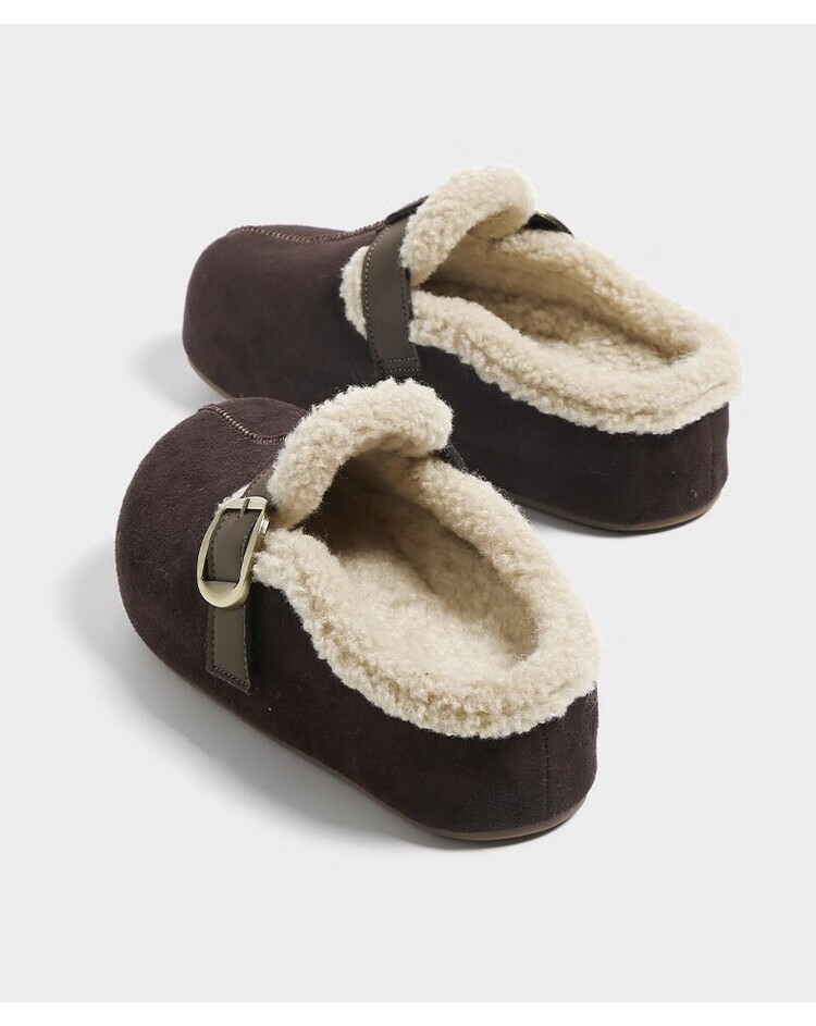 F21 plus velvet all-inclusive Birkenstock shoes for women 2025 new winter outer wear warm and inner heightening thick-soled cotton slippers maroon comfortable and warm Collect and follow for priority delivery 35