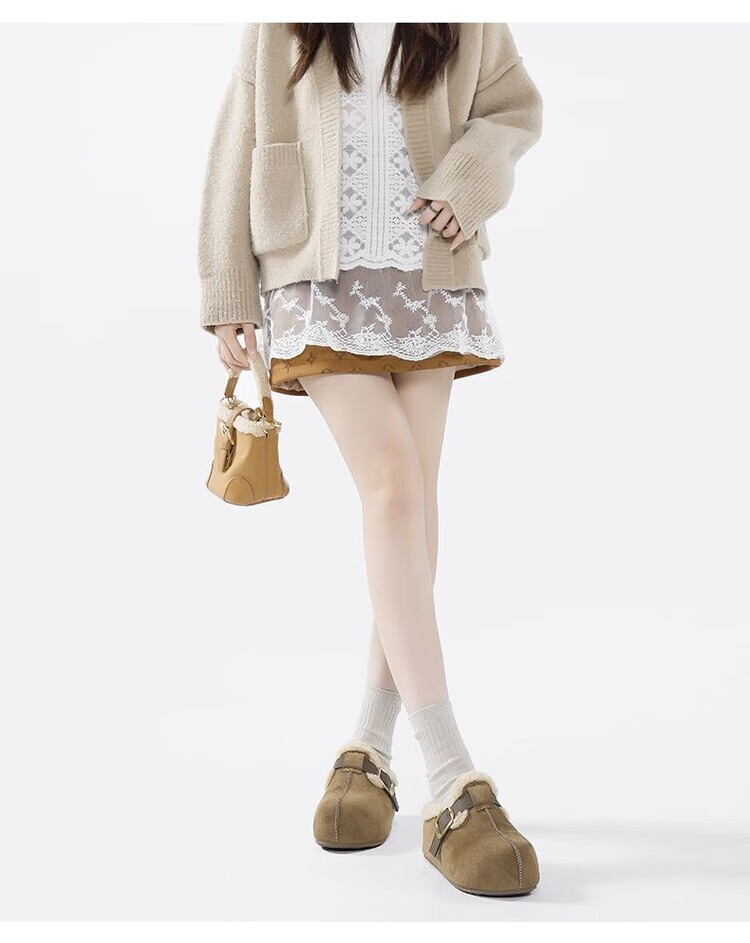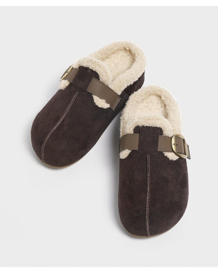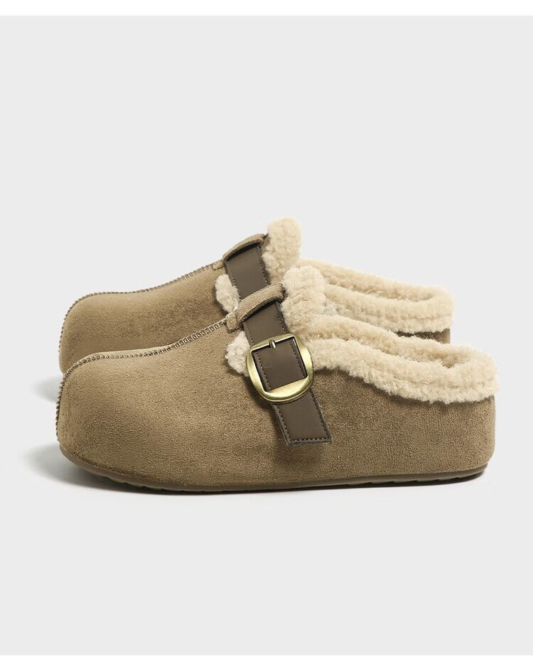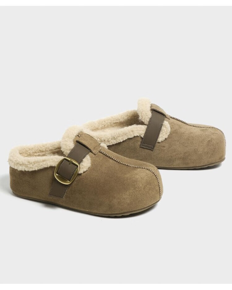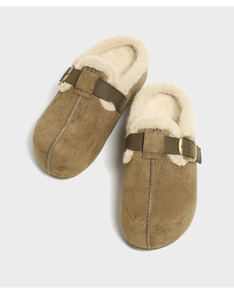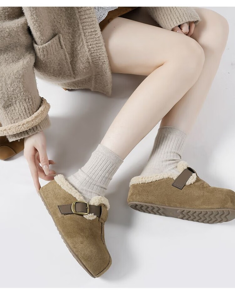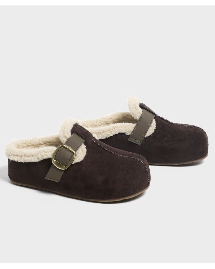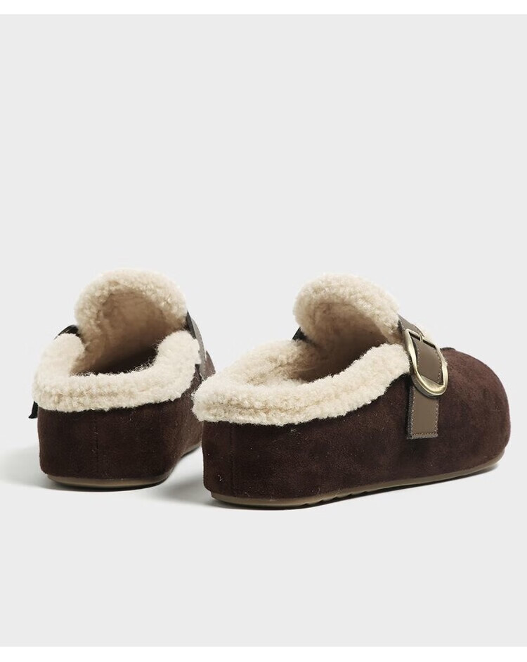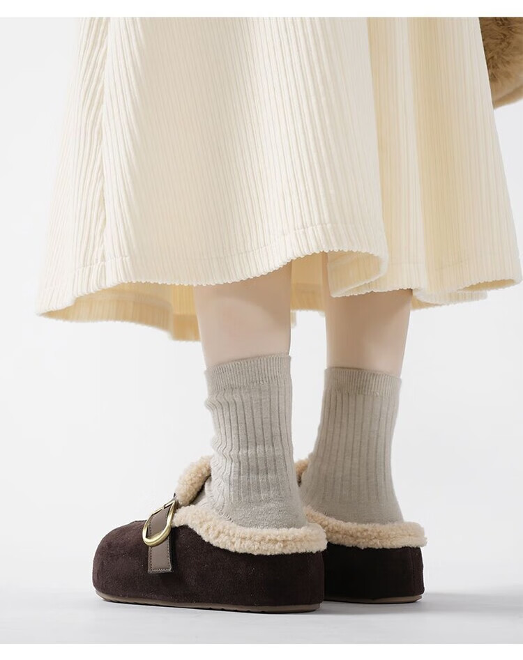 F21 plus velvet all-inclusive Birkenstock shoes for women 2025 new winter outer wear warm and inner heightening thick-soled cotton slippers maroon comfortable and warm Collect and follow for priority delivery 35