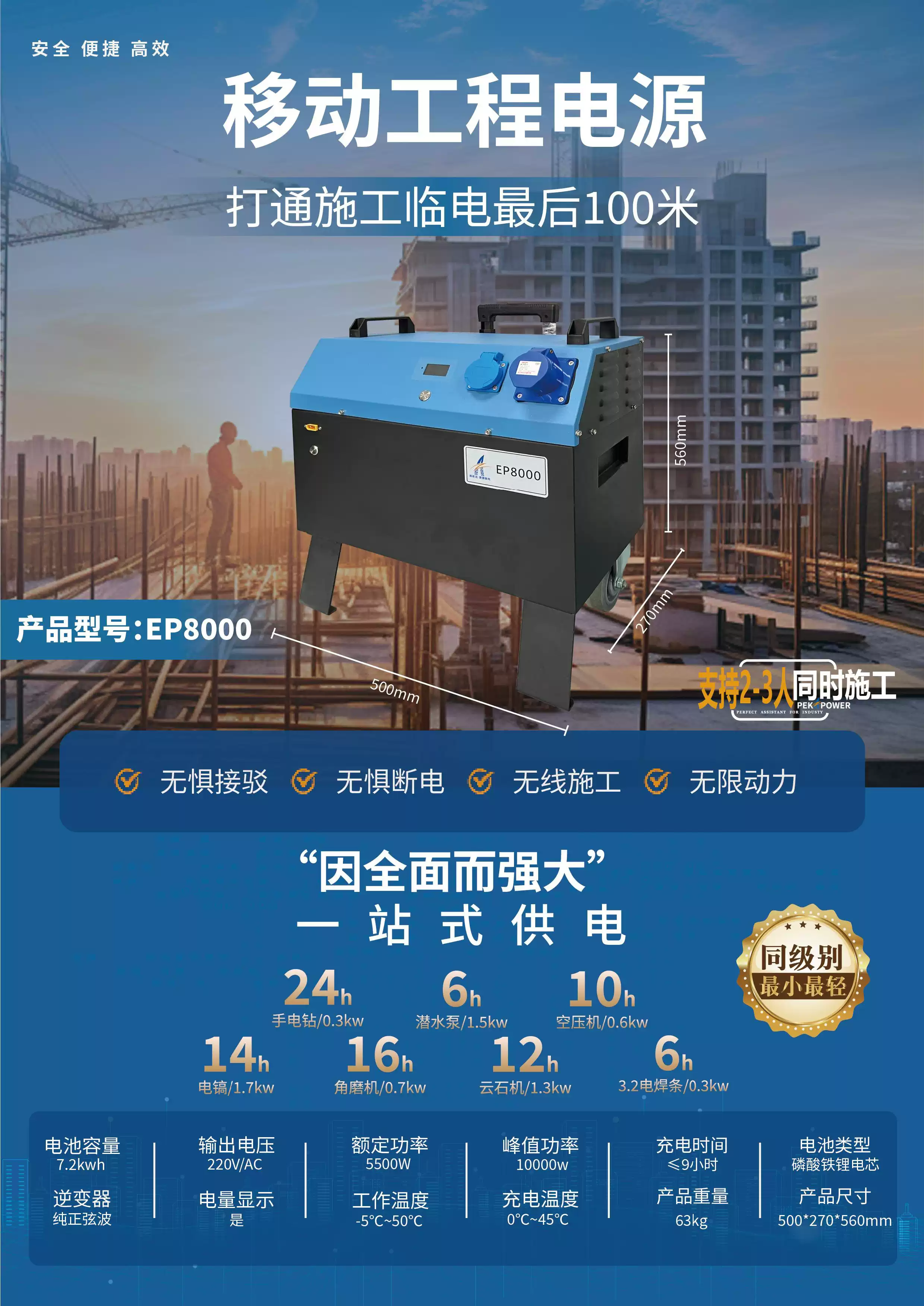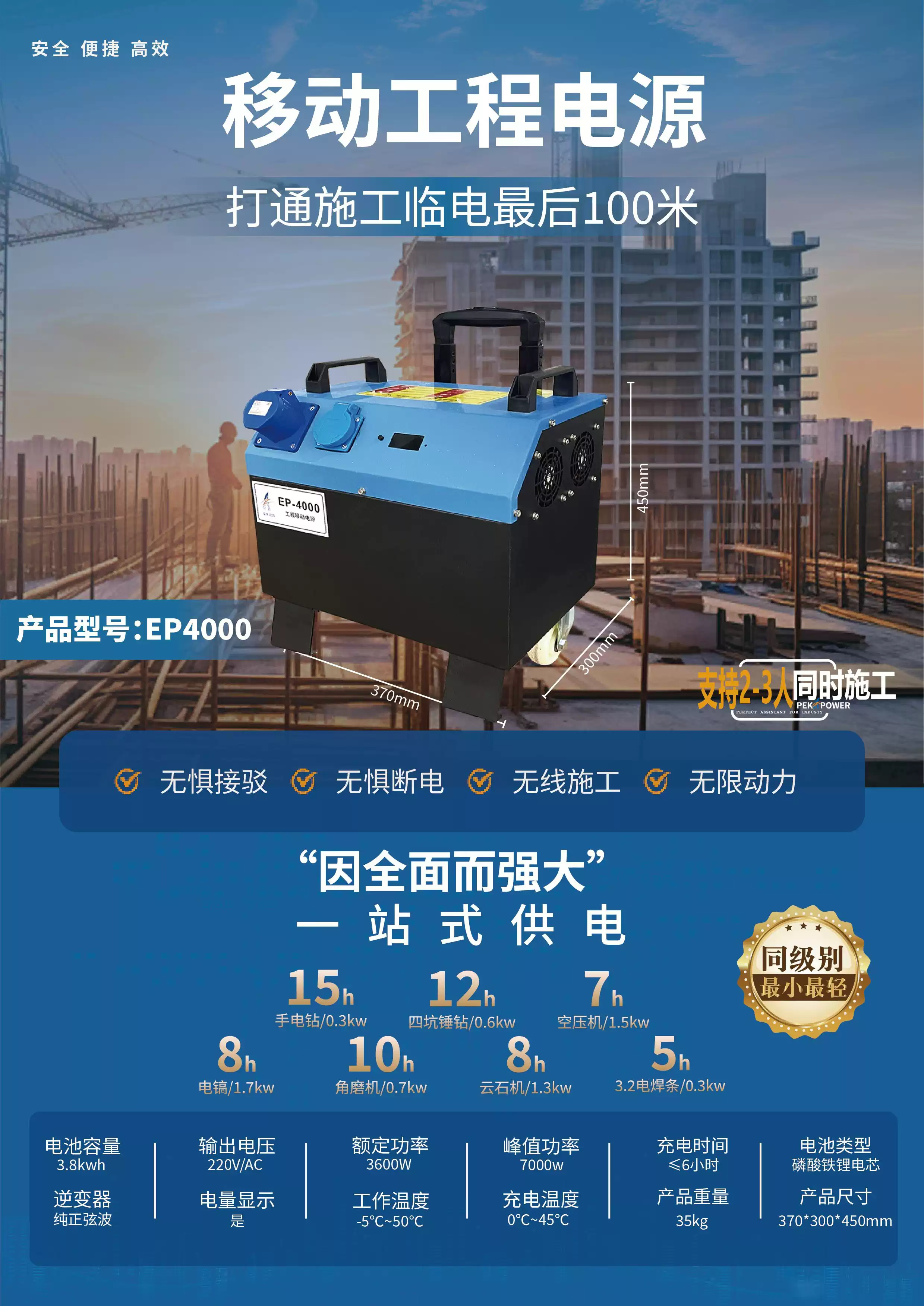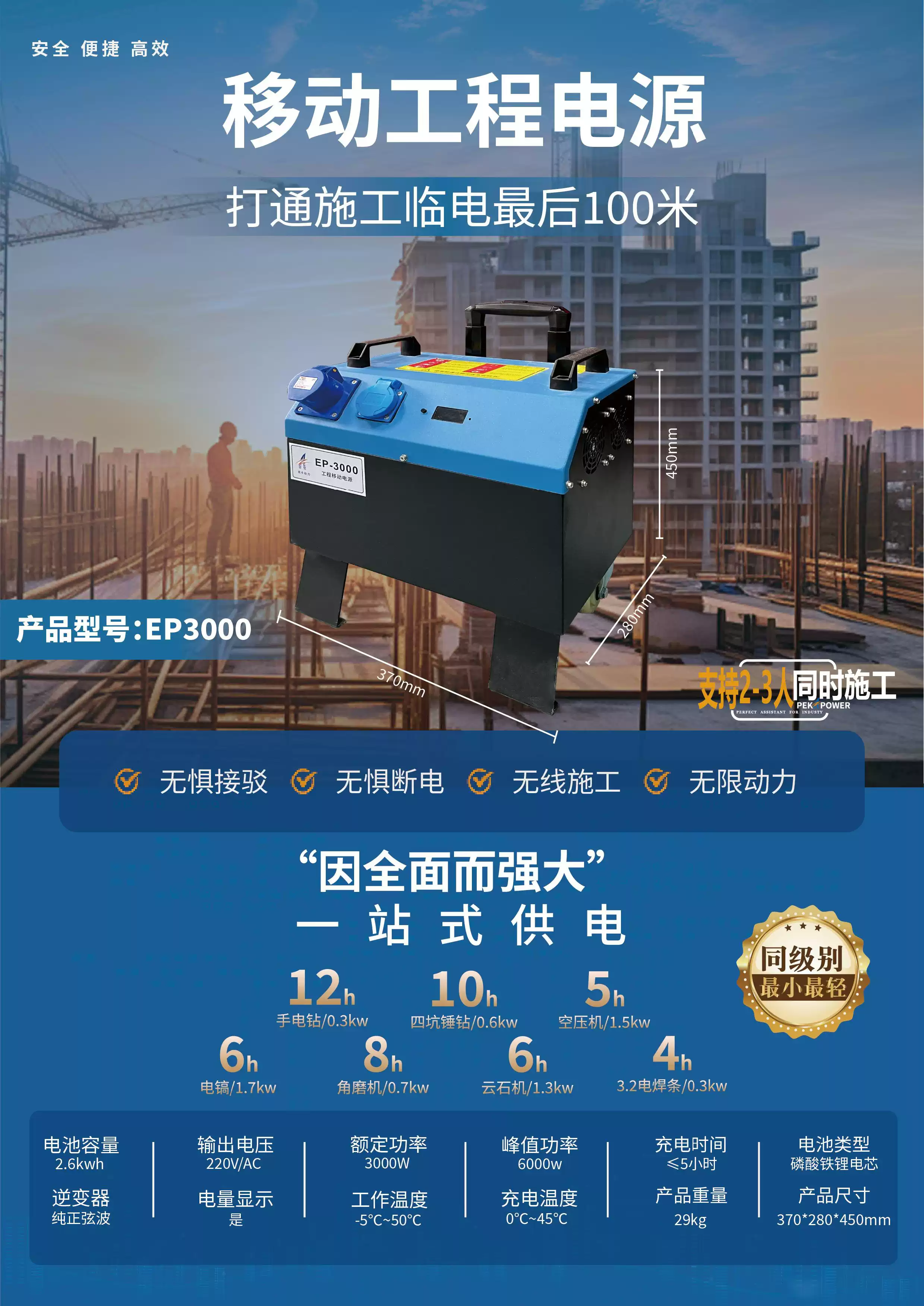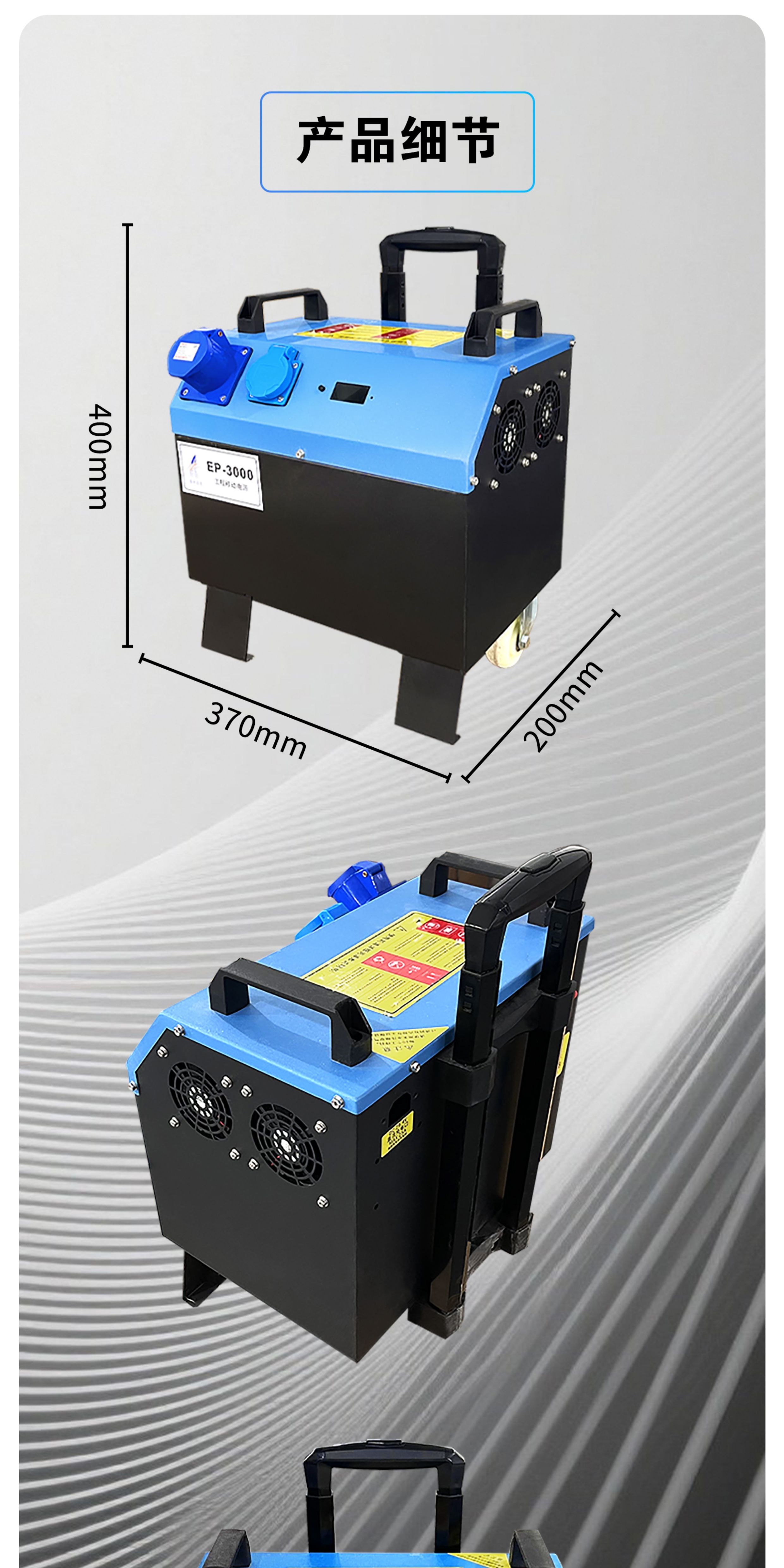 Three-phase power box 380V high-power industrial mobile power supply construction site portable outdoor construction engineering emergency power station 3200W/2.6 degrees + lithium iron phosphate battery 3200W/2.6 degrees + lithium iron phosphate battery