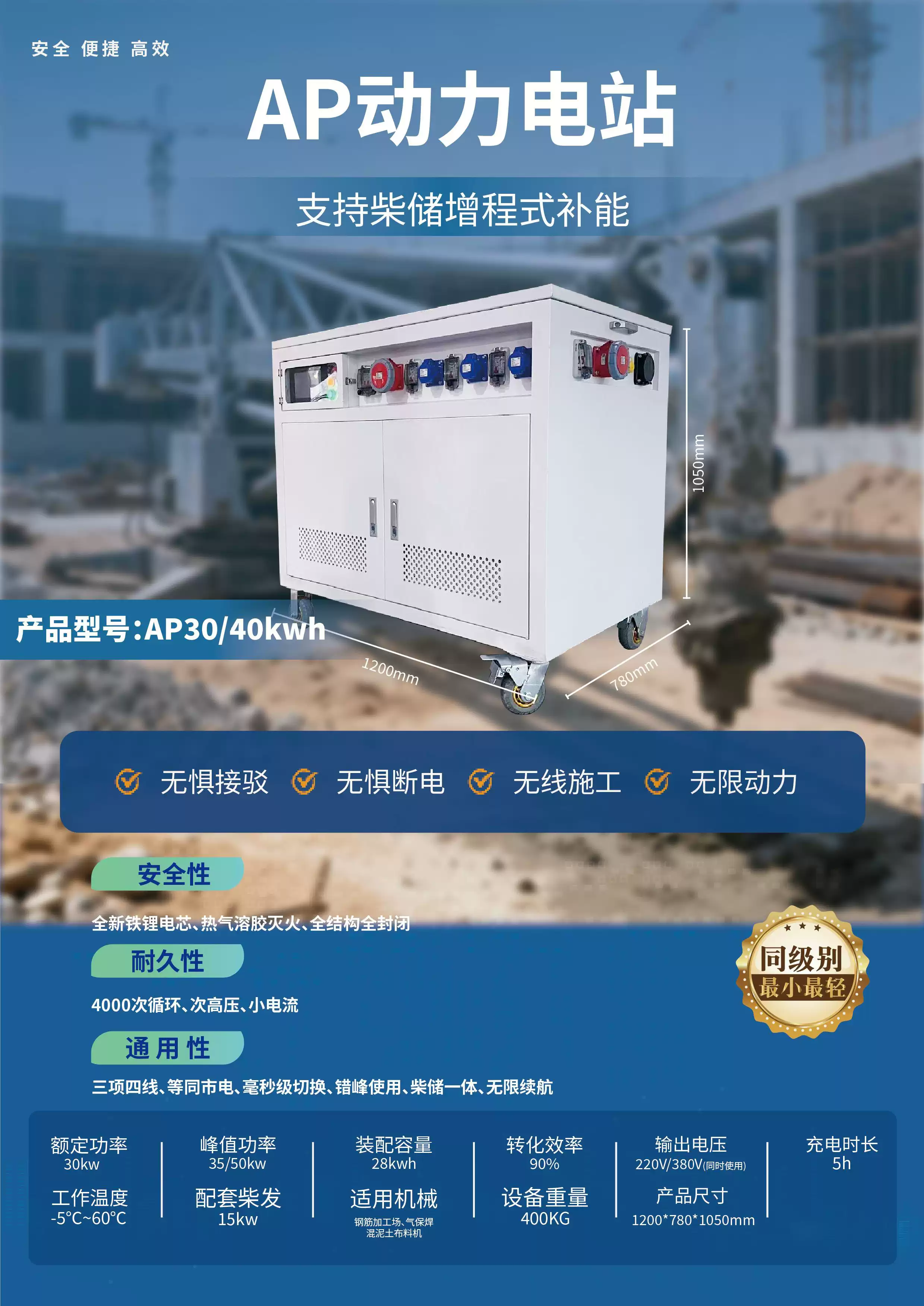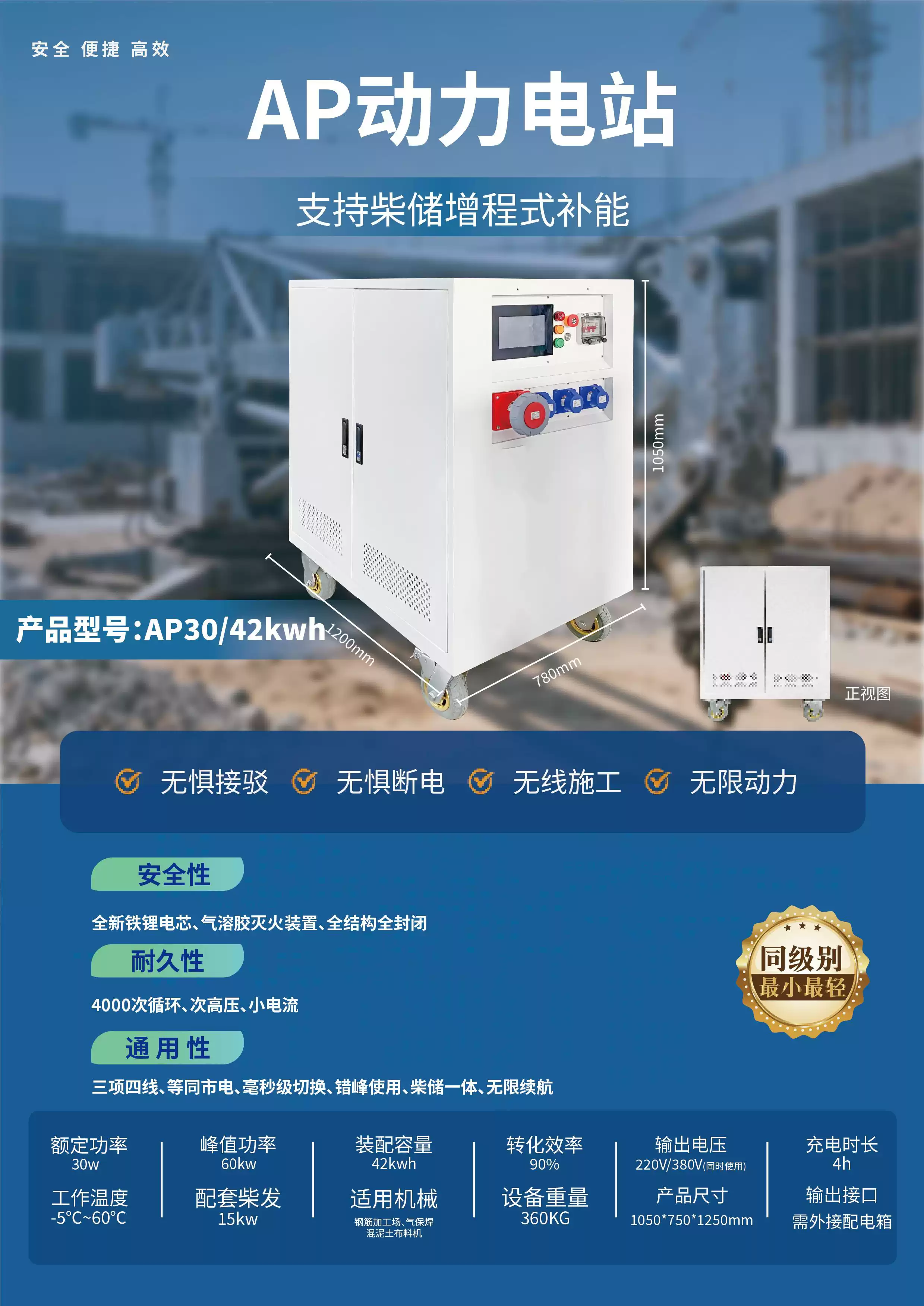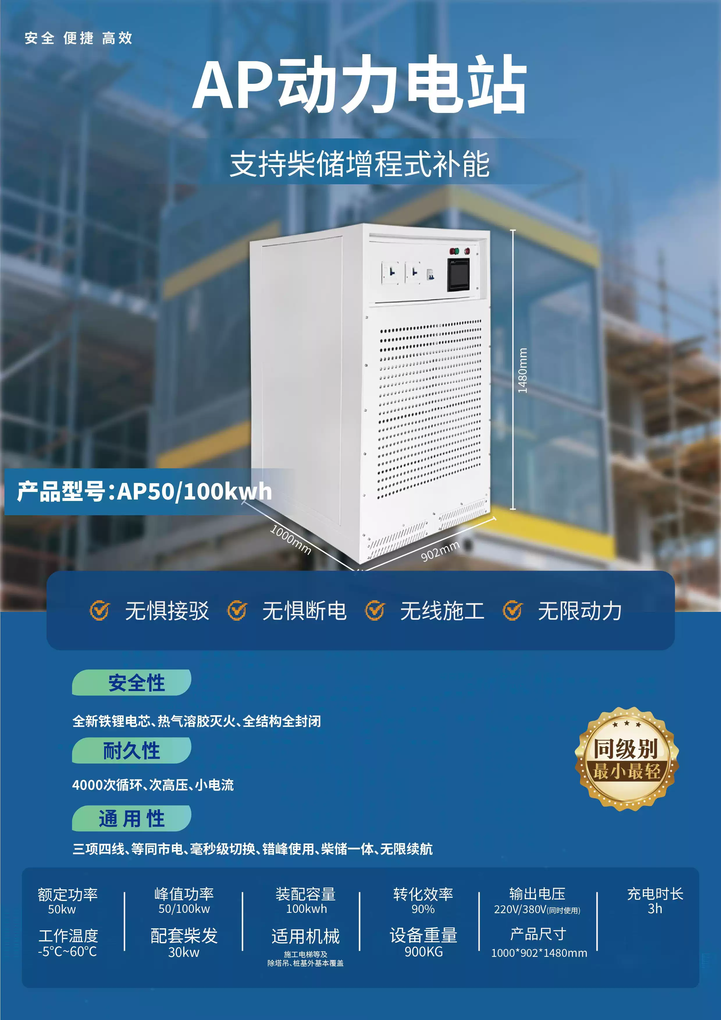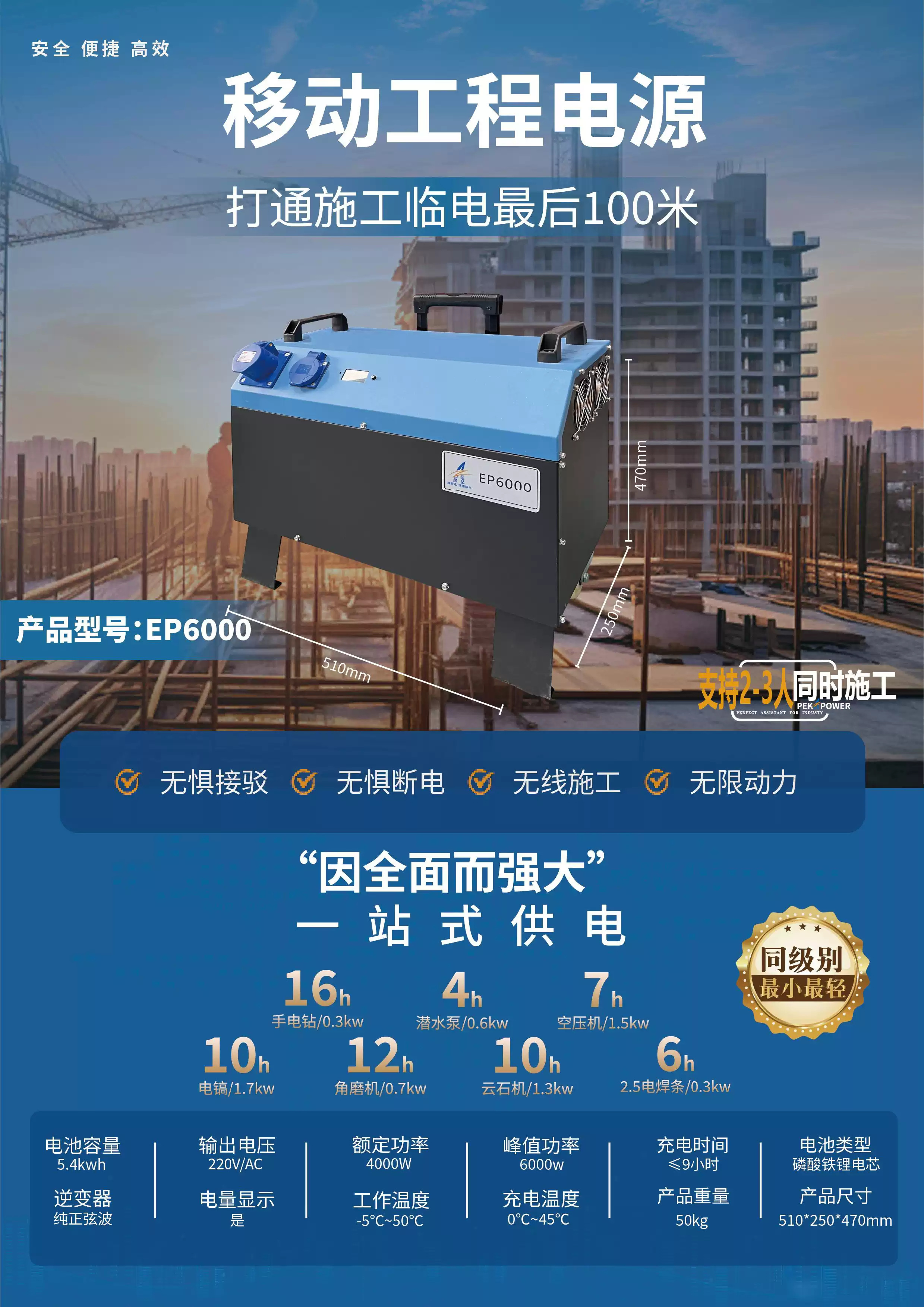 Three-phase power box 380V high-power industrial mobile power supply construction site portable outdoor construction engineering emergency power station 3200W/2.6 degrees + lithium iron phosphate battery 3200W/2.6 degrees + lithium iron phosphate battery