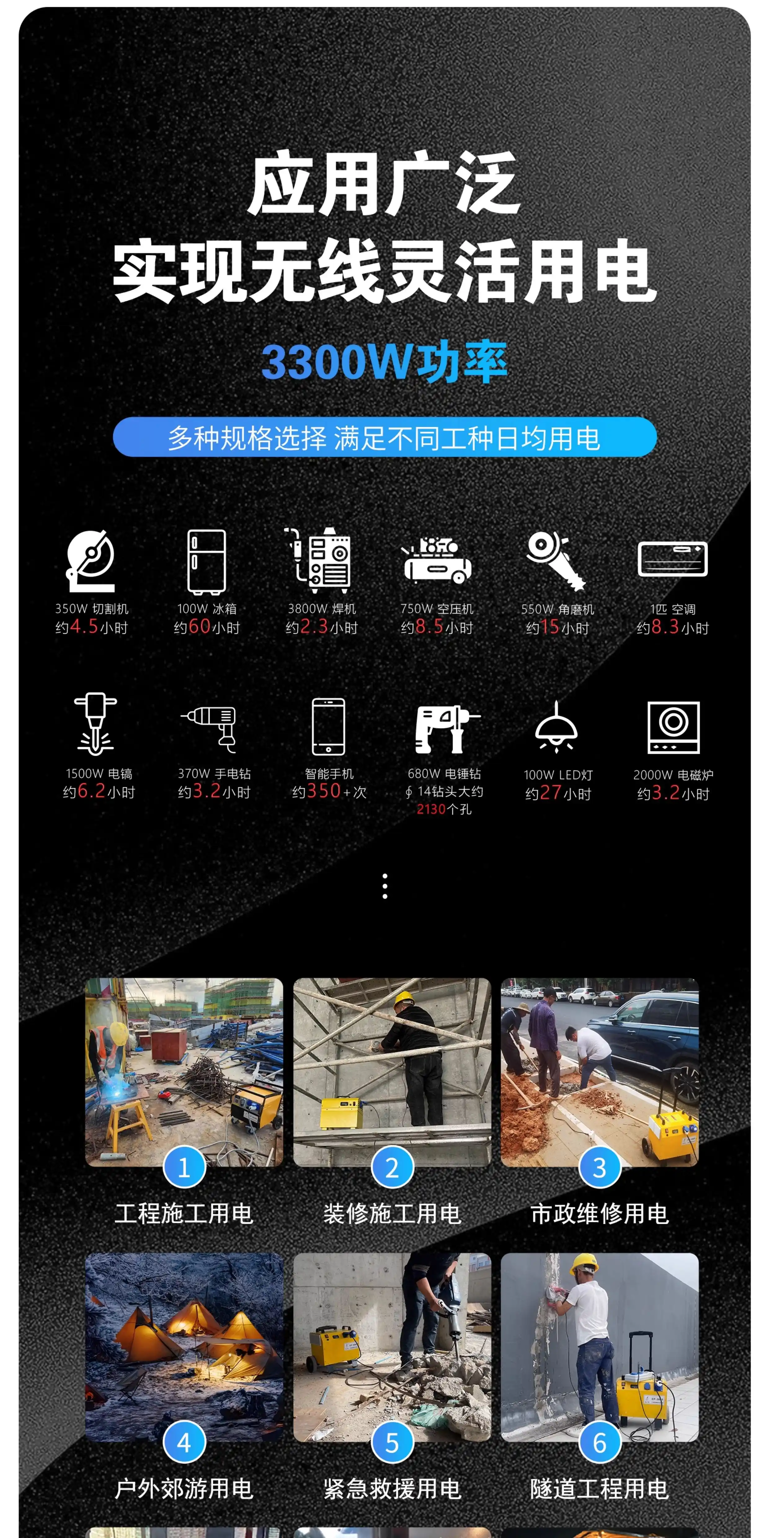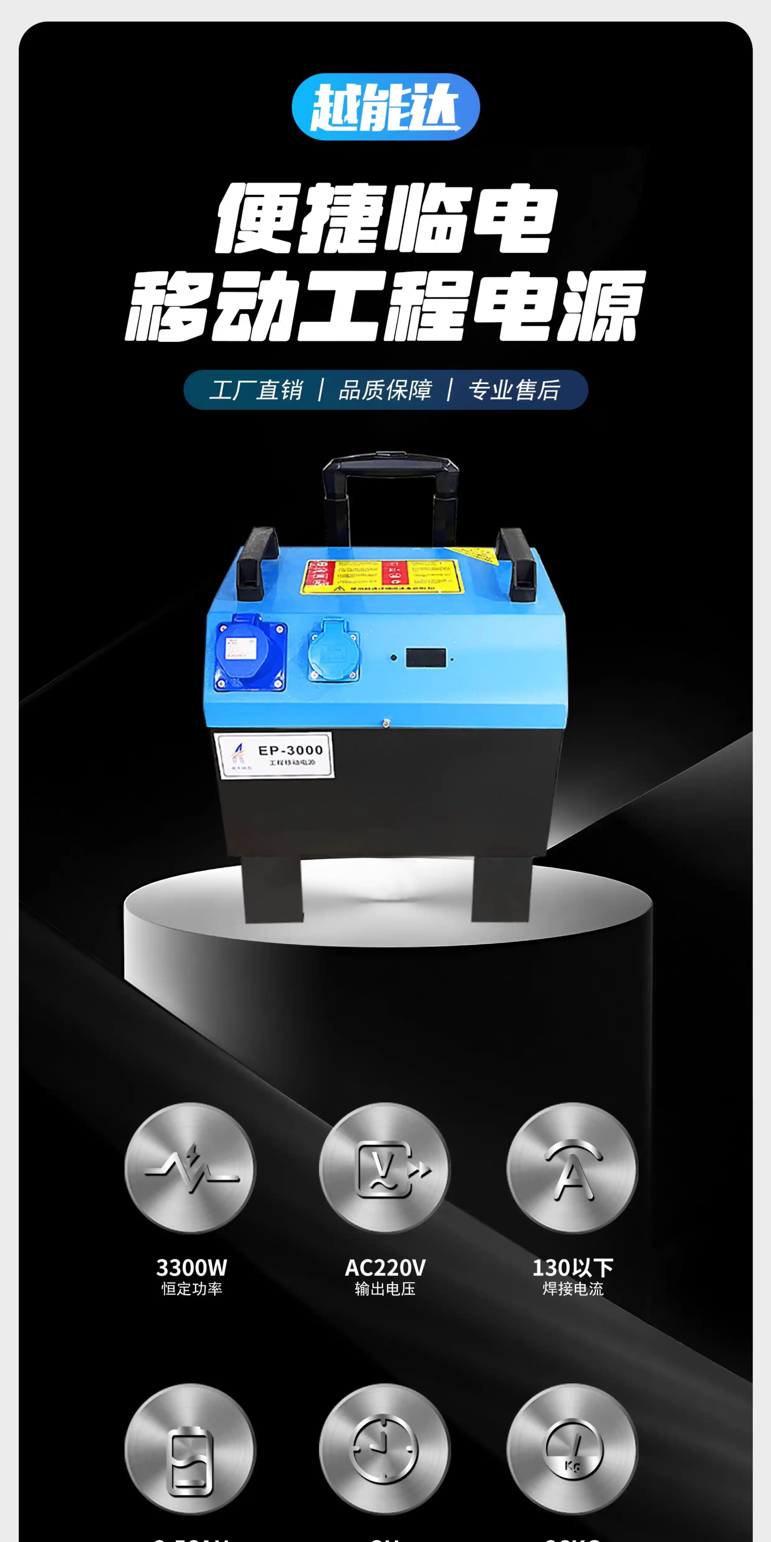 Industrial mobile power supply with high power and capacity 220V380V engineering portable outdoor construction site emergency energy storage power station 3200W/2.6 degrees + lithium iron phosphate battery 3200W/2.6 degrees + lithium iron phosphate battery