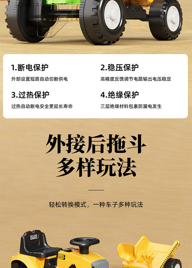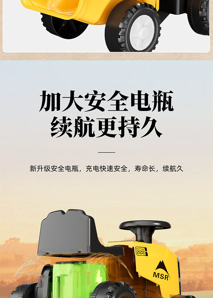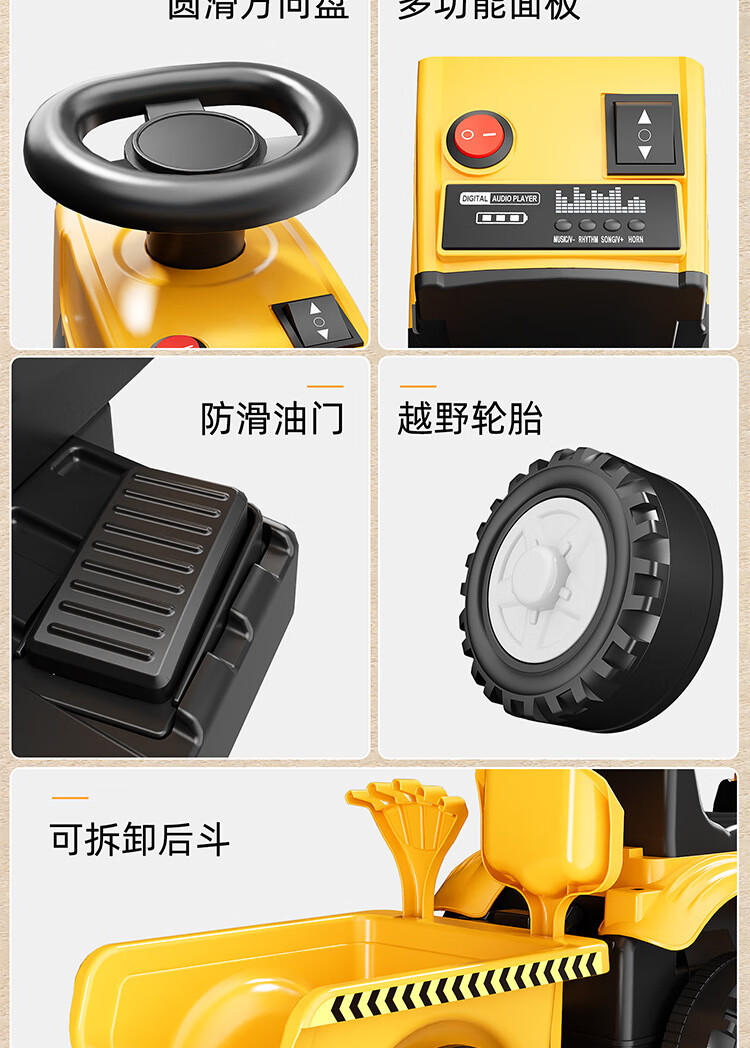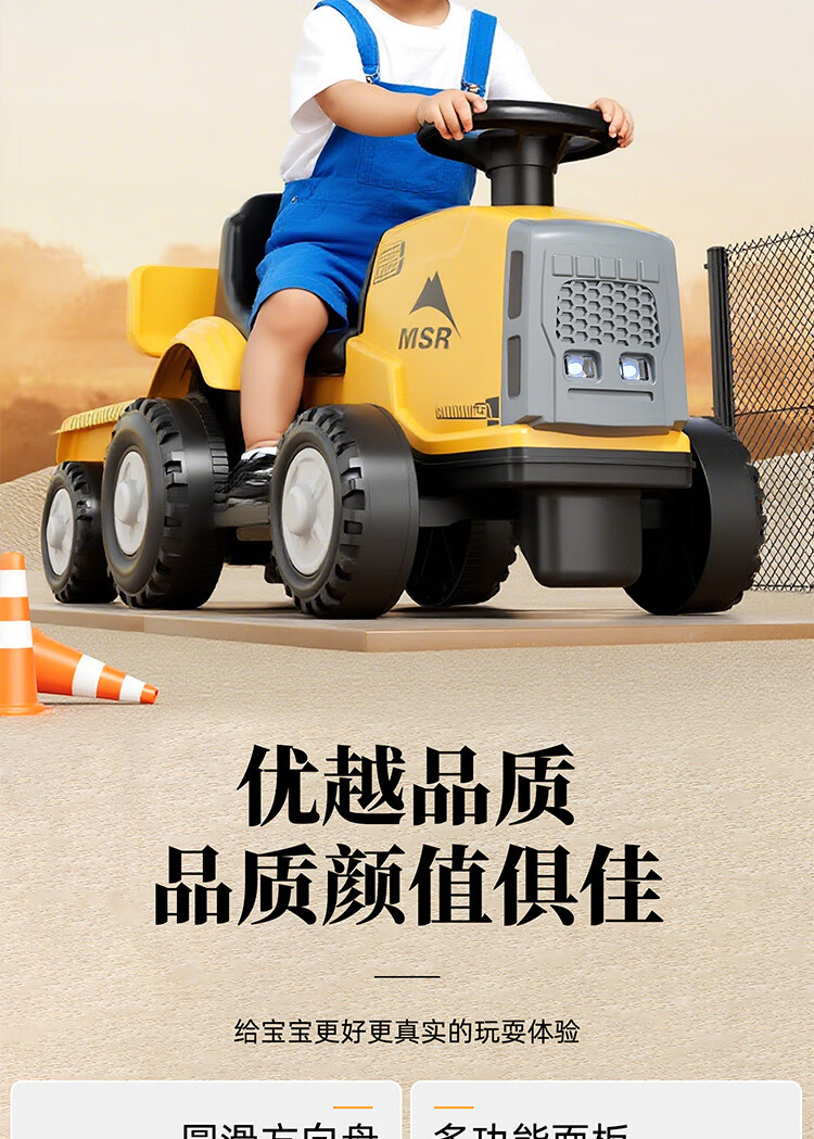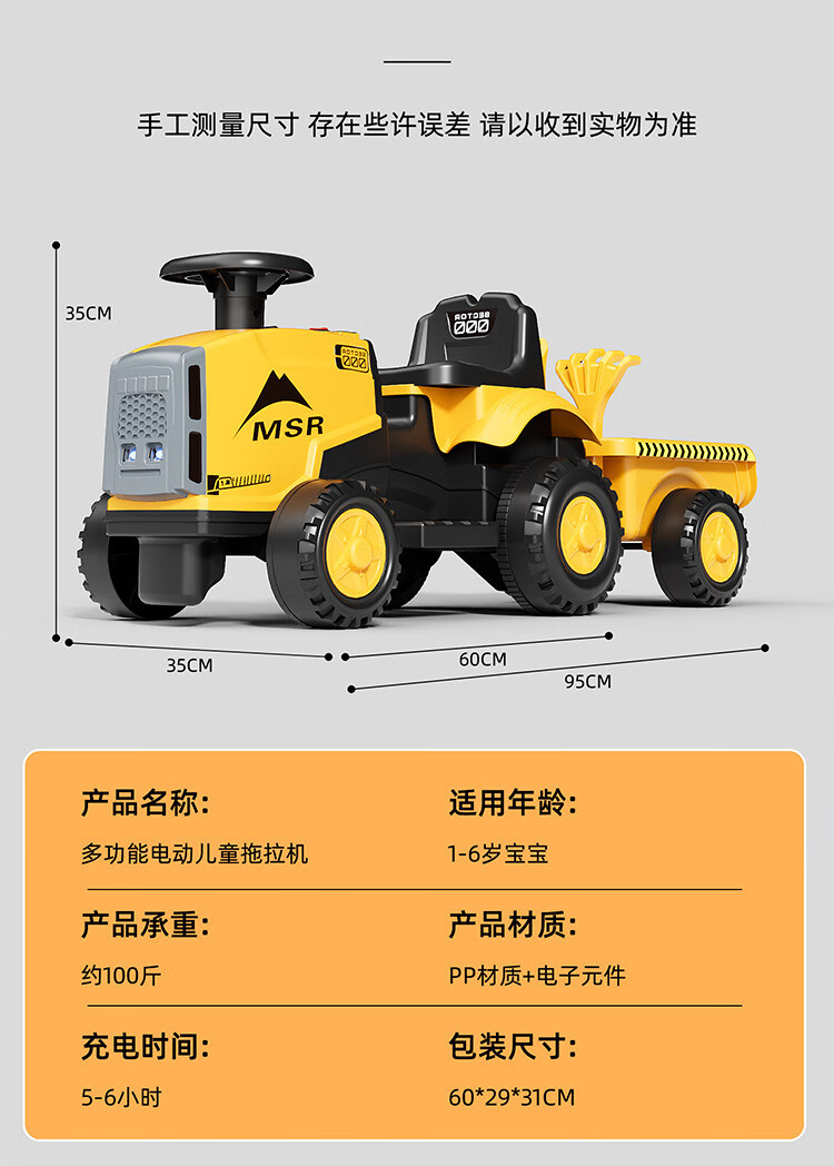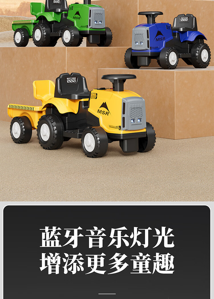 Magmeng children's electric car 1-3 years old baby toy car can sit on tractor with bucket remote control battery car gift electric model 6V4.5A battery + music light + with tow bucket 1-year-old baby toy car scooter 1-3-6 years old Children's Day first birthday gift