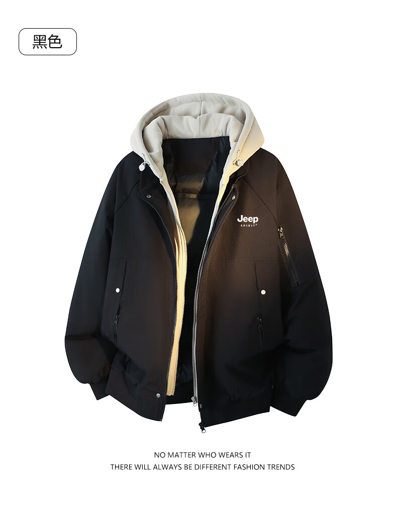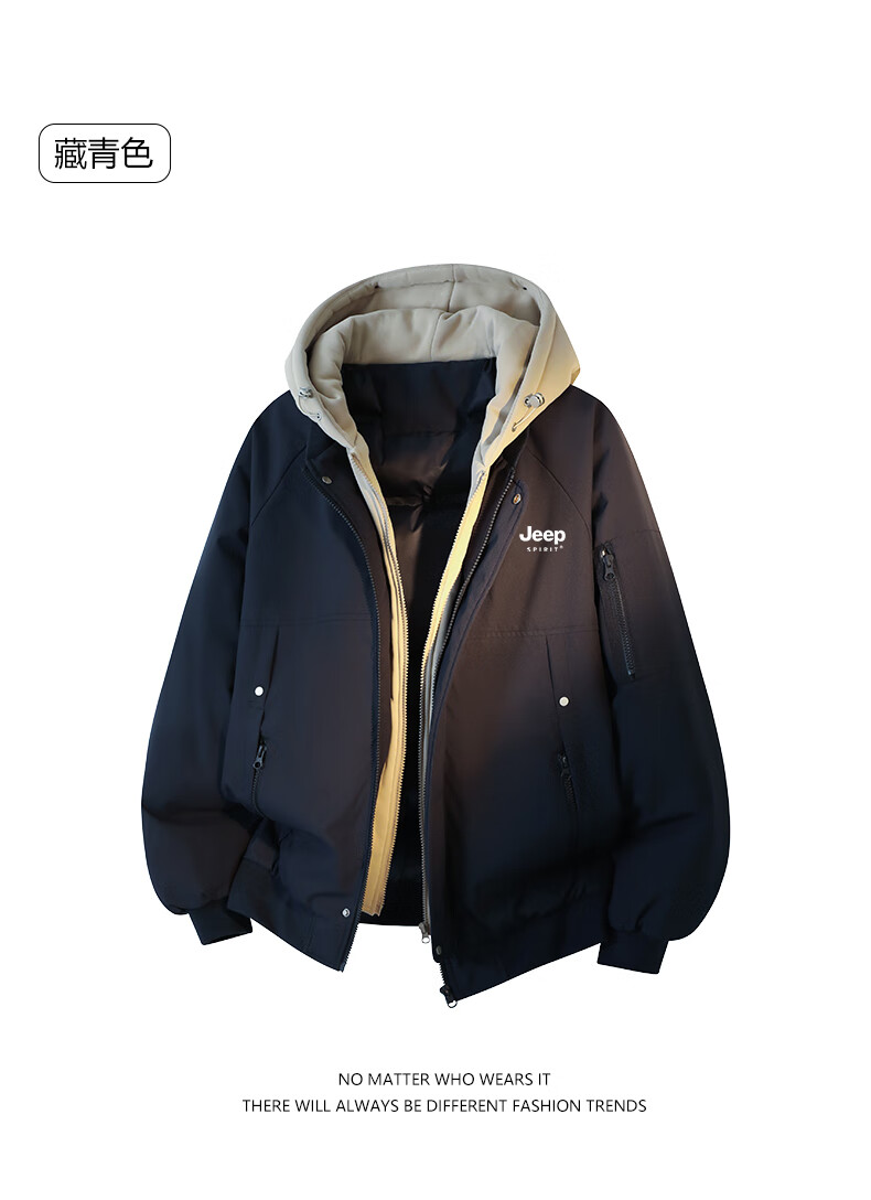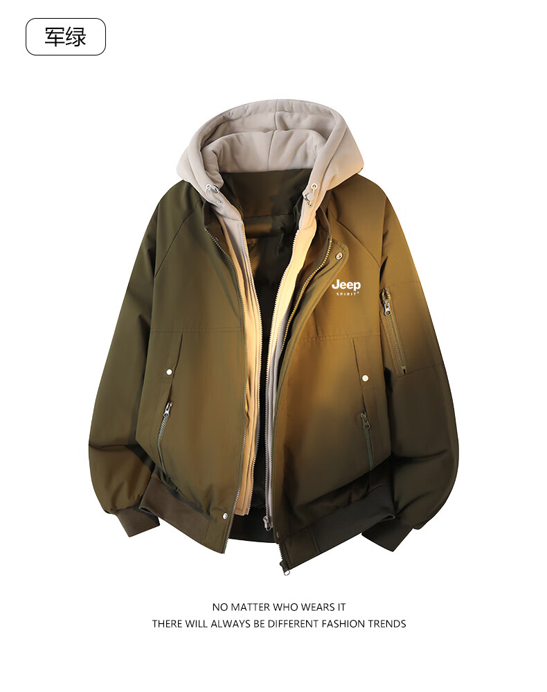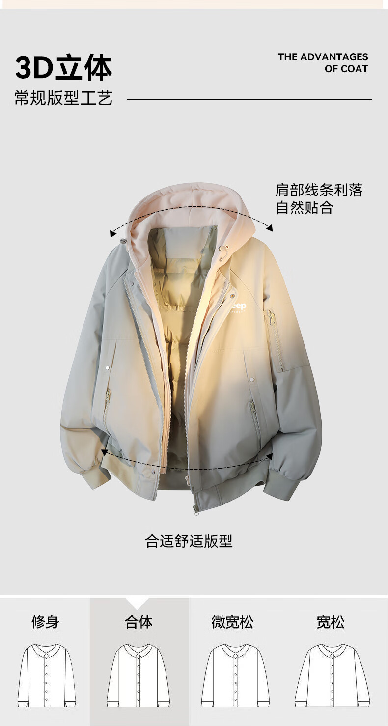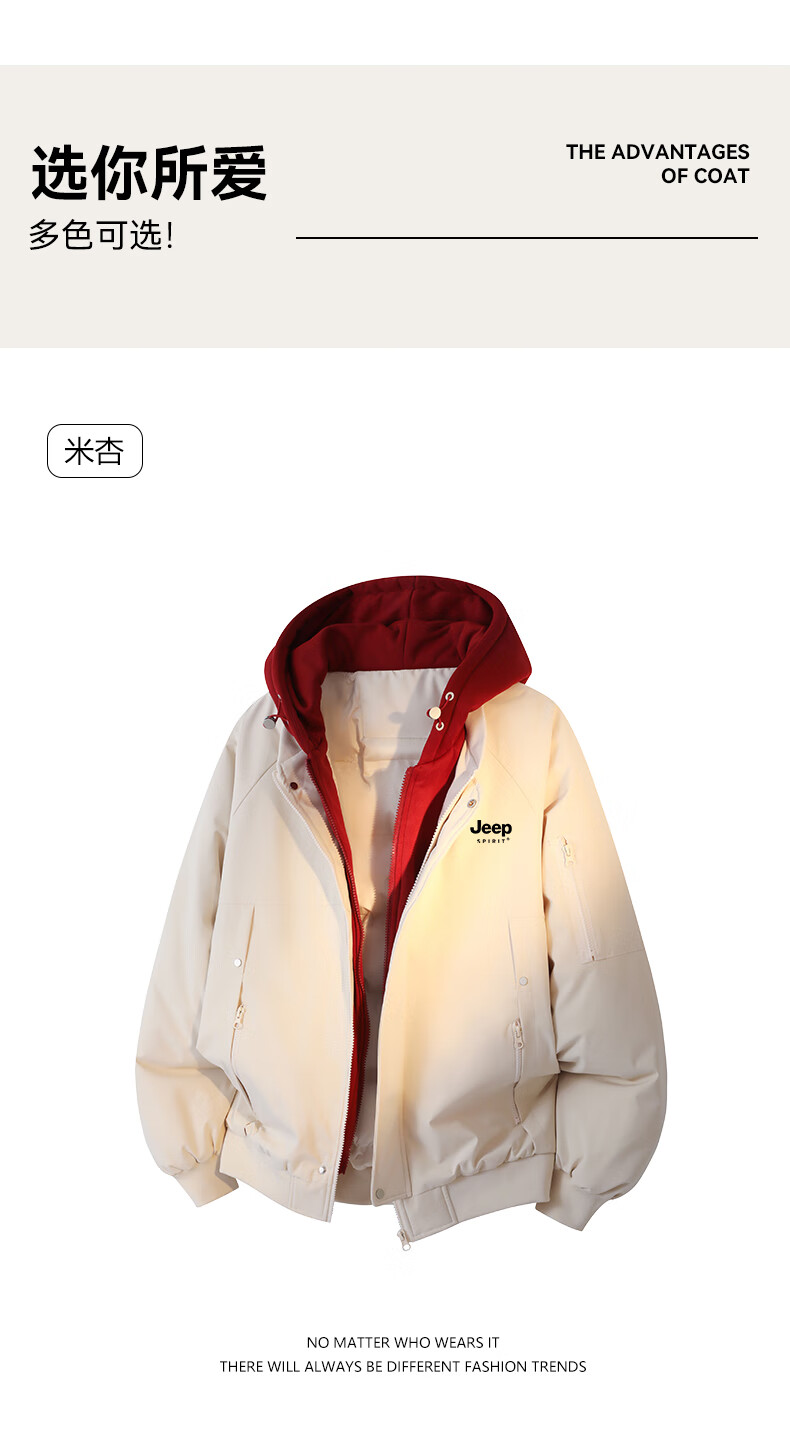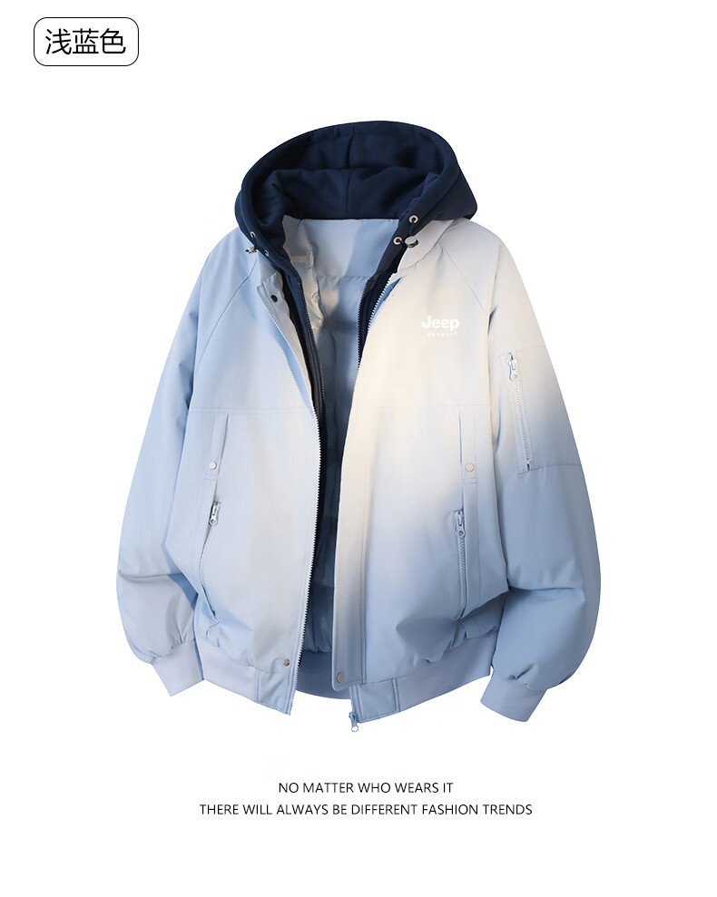 JEEP SPIRIT Jeep down jacket for men and women short winter 2026 new thickened fake two-piece quilted bread jacket waterproof jacket light blue male/female same style S