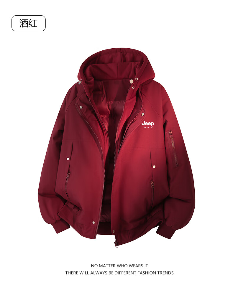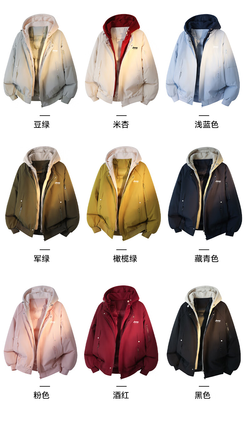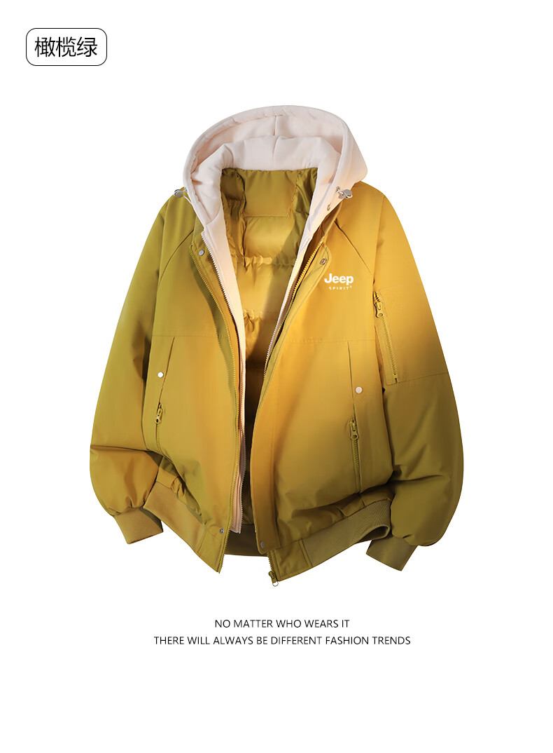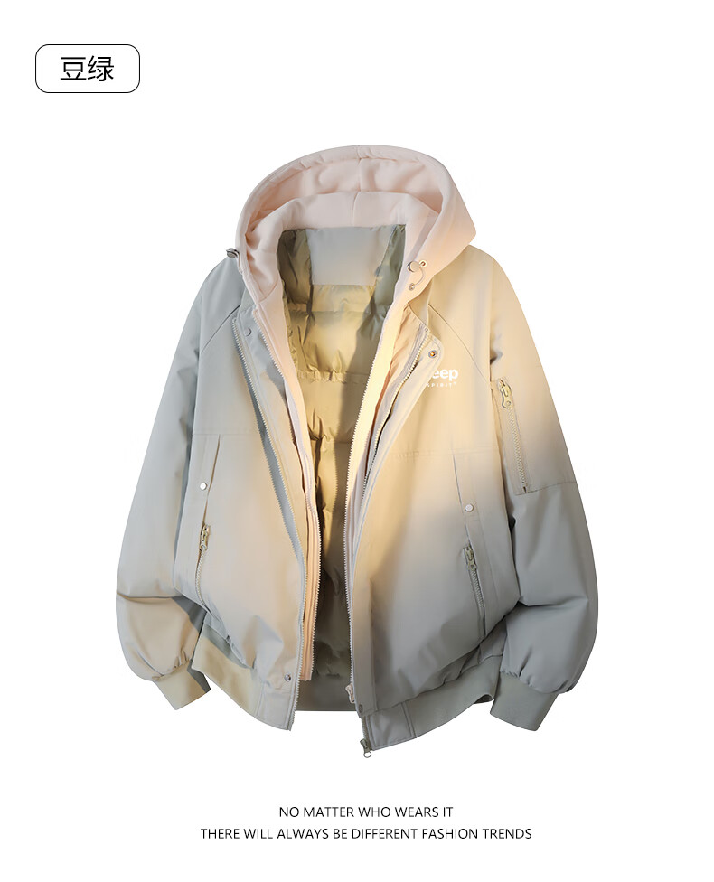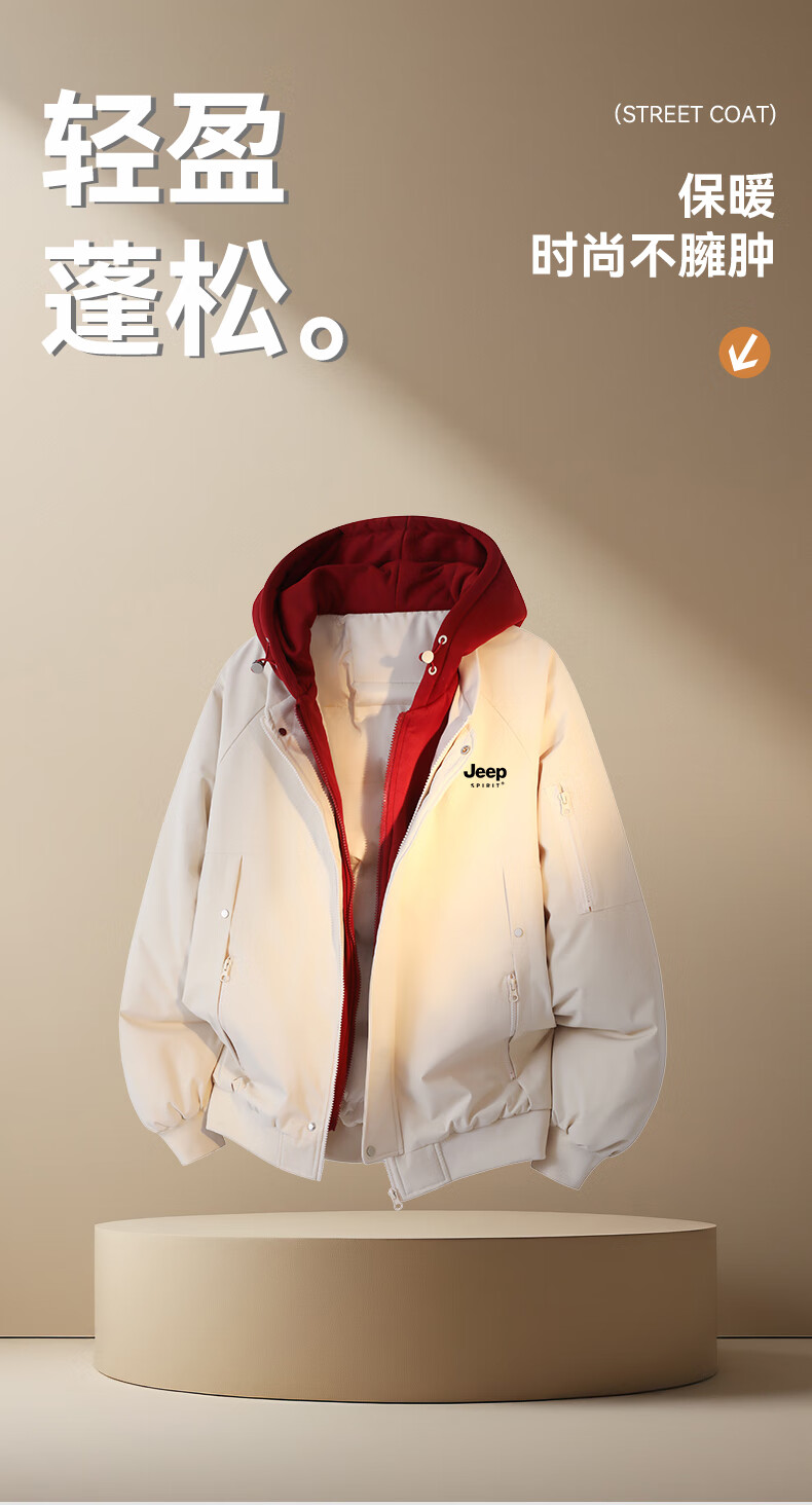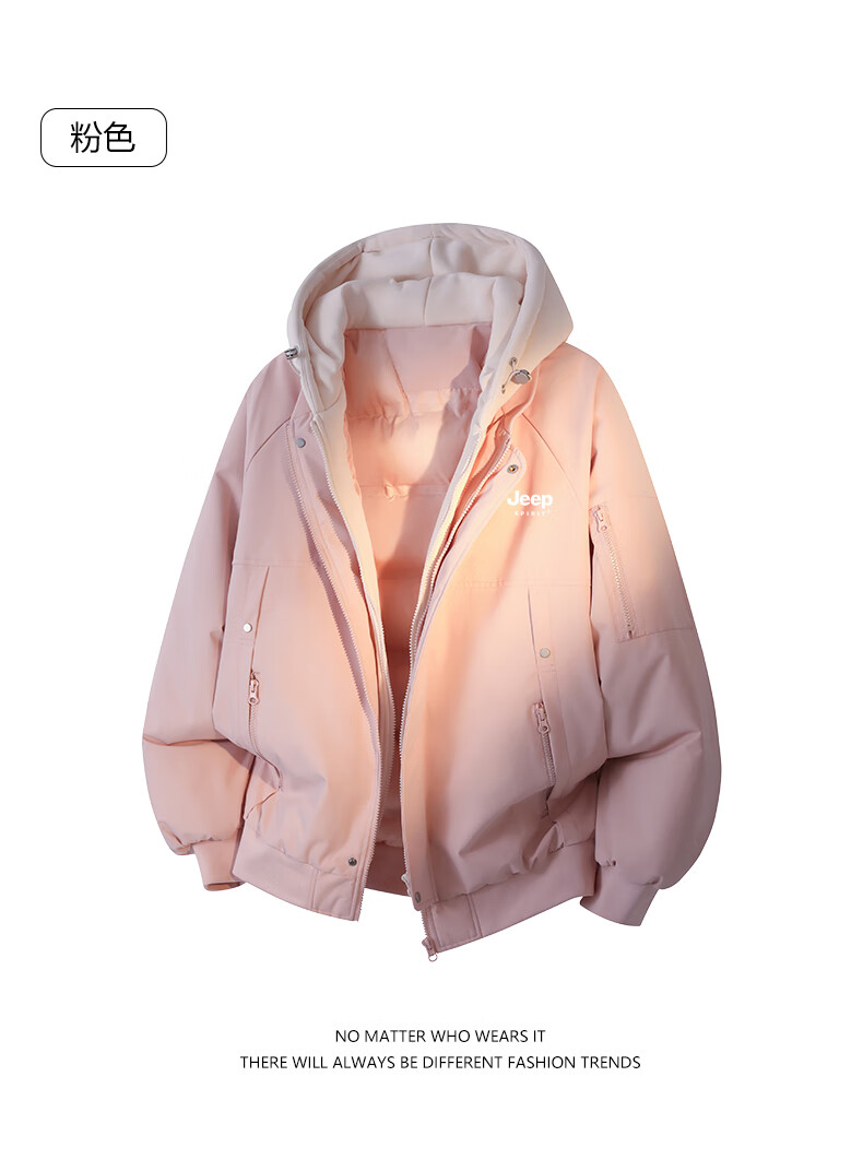 JEEP SPIRIT Jeep down jacket for men and women short winter 2026 new thickened fake two-piece quilted bread jacket waterproof jacket light blue male/female same style S