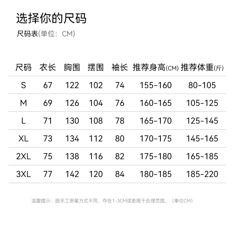 China (cm) 165 / 88-90 170 / 96-98 175 / 108-110 180 / 118-122 185 / 126-130