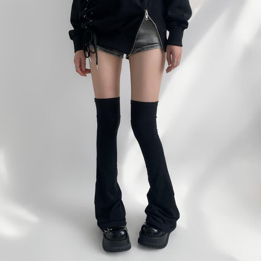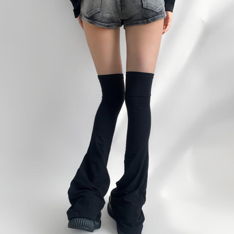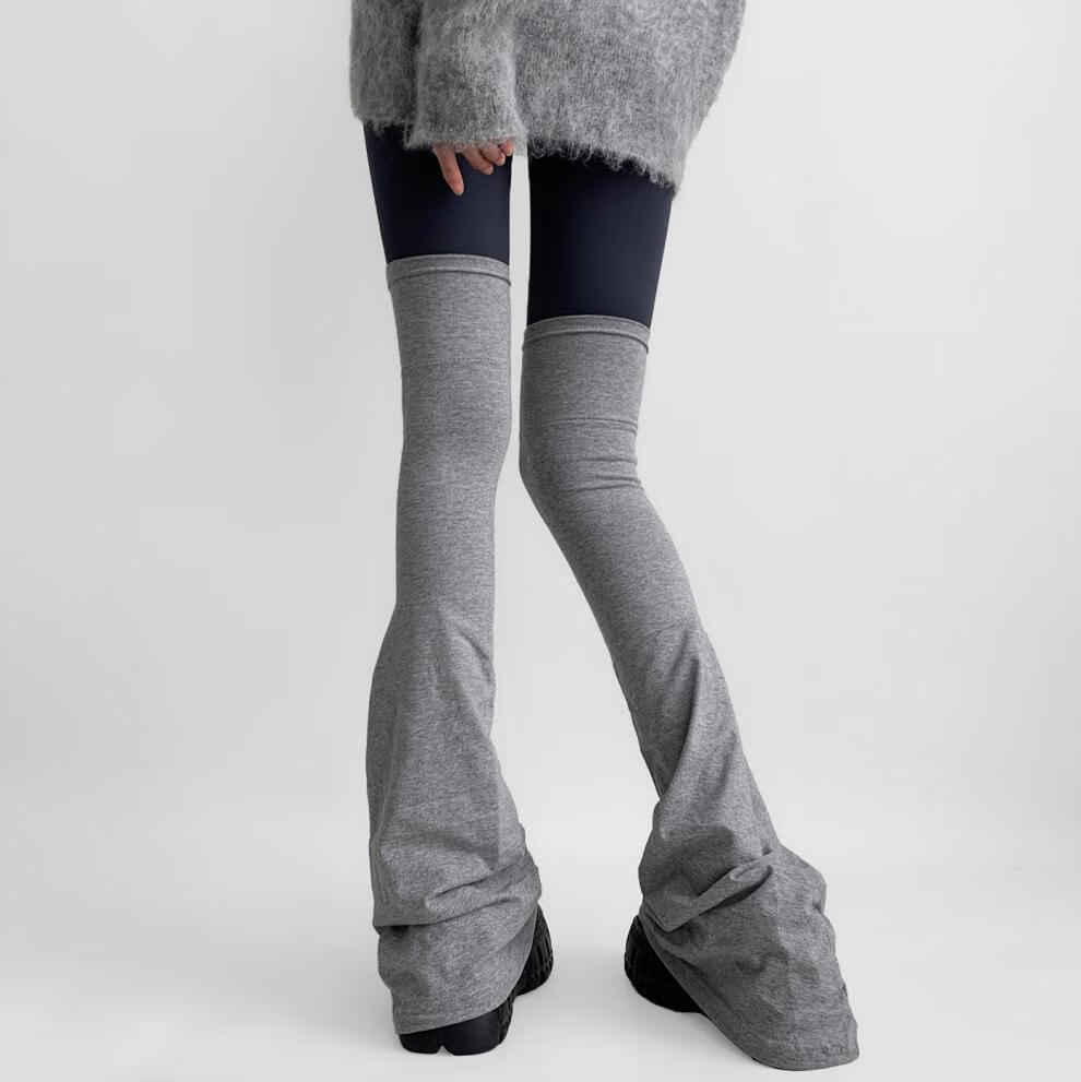 Night Classroom Winter Leg Covers Over the Knees Autumn and Winter Gray Long-Tube Horned Wide-Leg Socks Covers Extra Long Black Socks Women Gray One Size