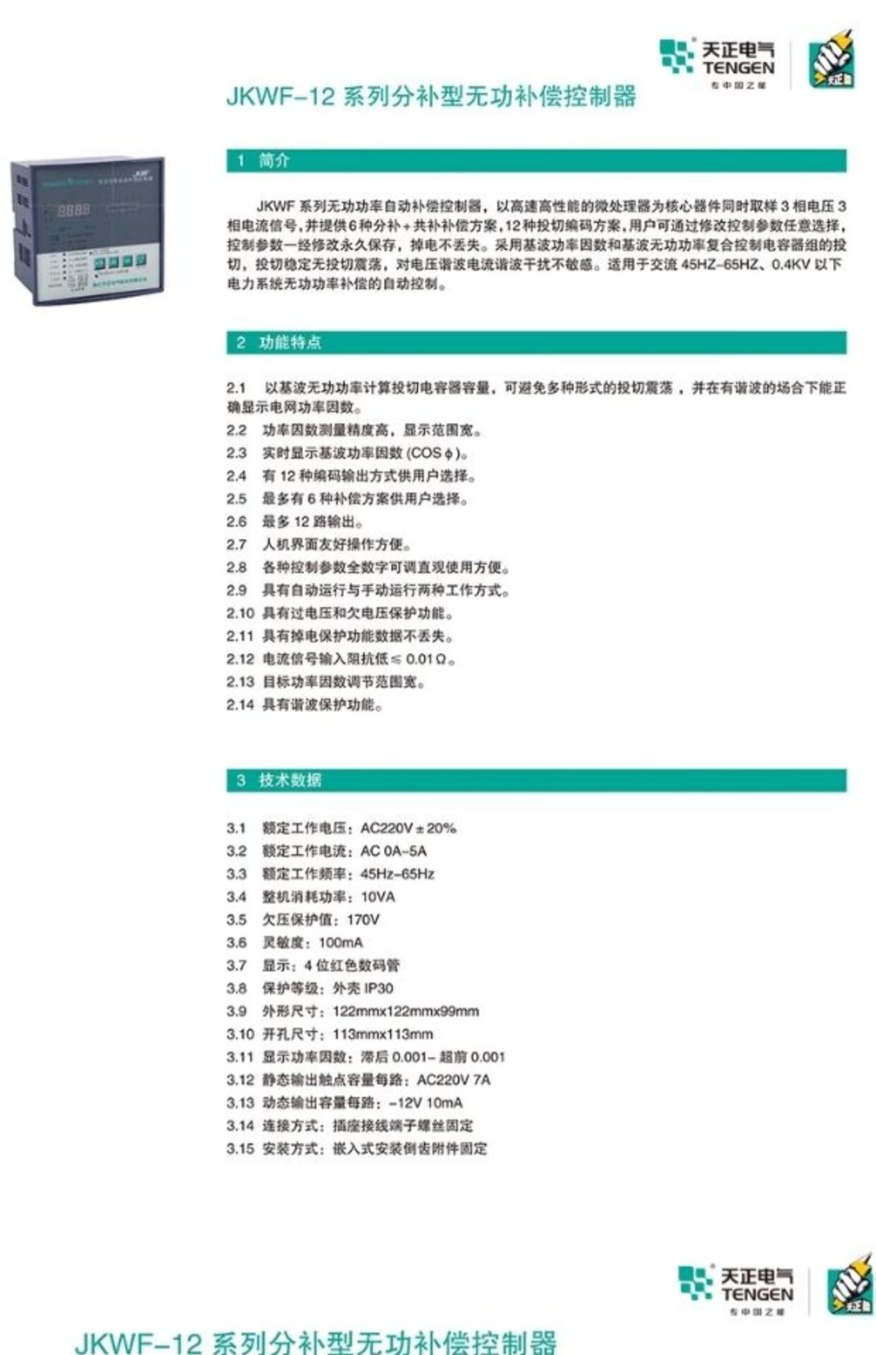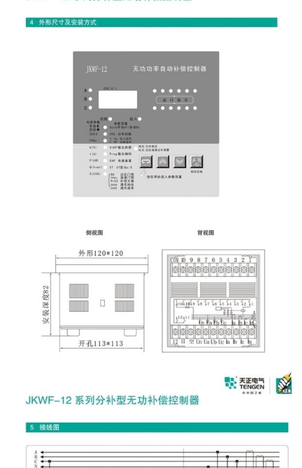 Tianzheng Electric TENGEN sub-compensation reactive power compensation controller JKWF-4/6/8/10/12 dynamic DC12V JKWF-12 dynamic DC12V