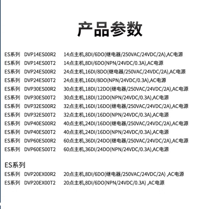 Delta PLC/ES series/DVP14/24/30/32/40/60ES00R2/T2/20EX/ES/E DVP16EC00T3