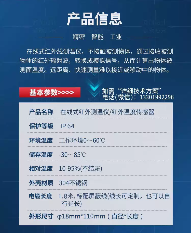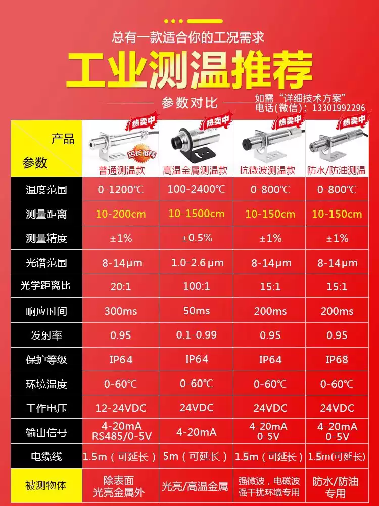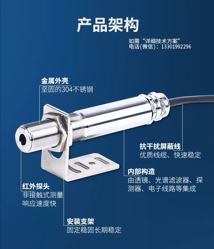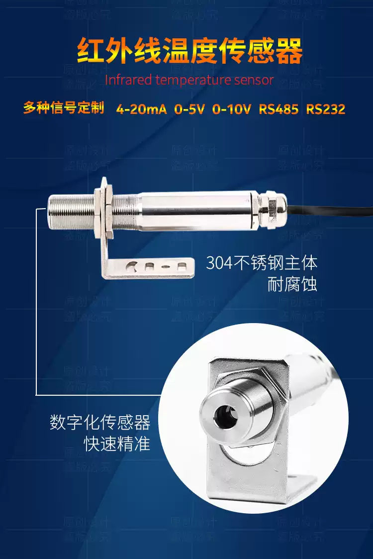 Infrared temperature sensor industrial thermometer metal non-contact transmitter online infrared temperature probe gold