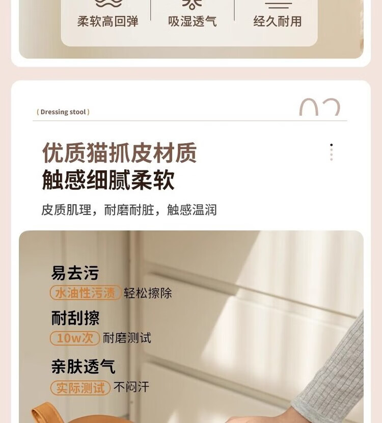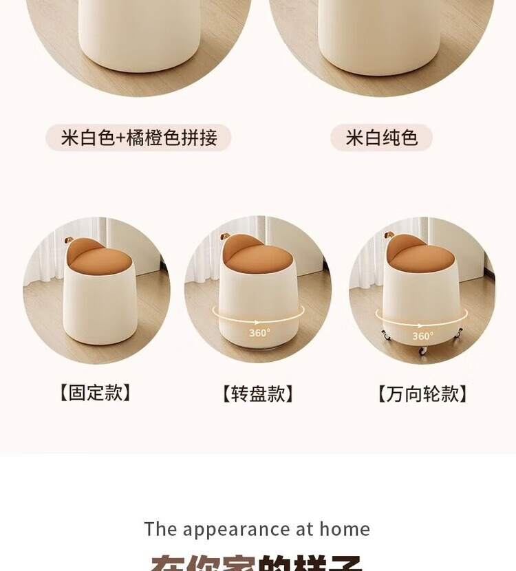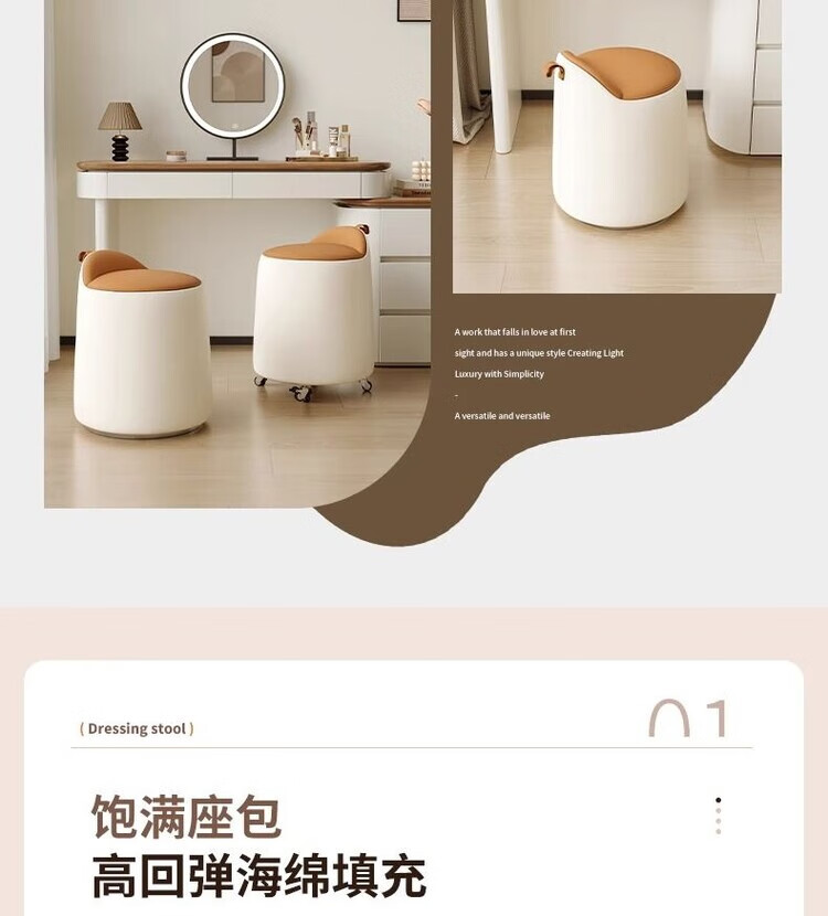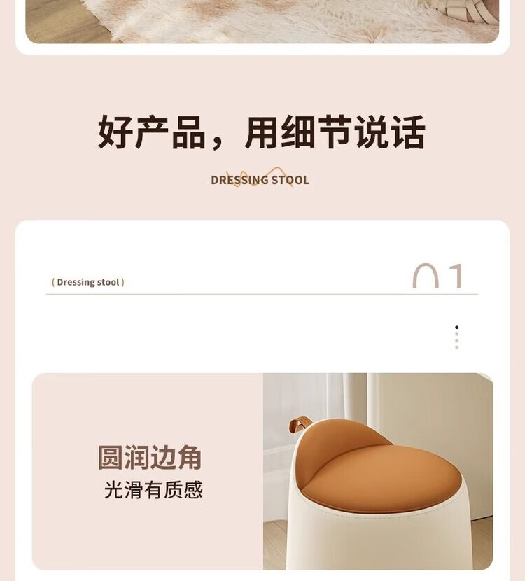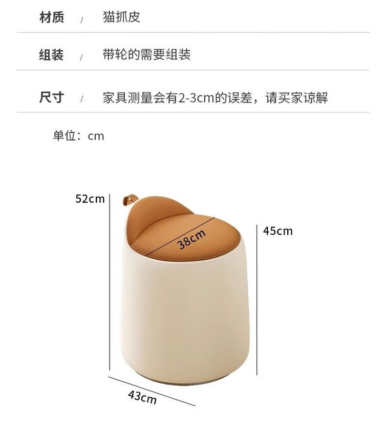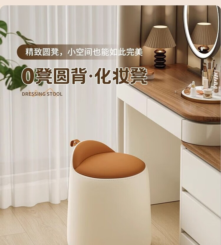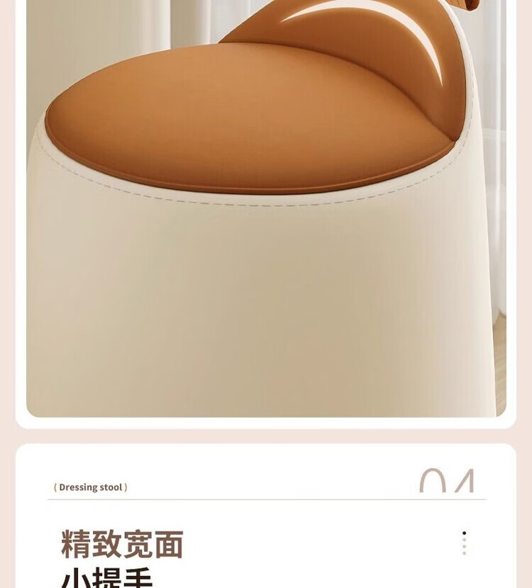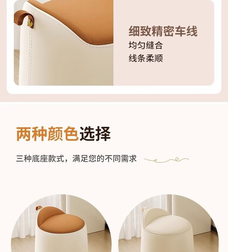 Xiaomi Master Bedroom Girls Makeup Stool Bedroom Dressing Stool Rotating Makeup Chair Italian Minimalist Round Stool Light Luxurious and High-end Fixed Style Cat Scratch Leather Beige + Orange