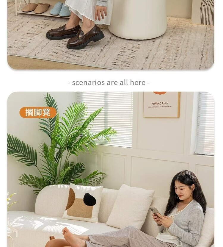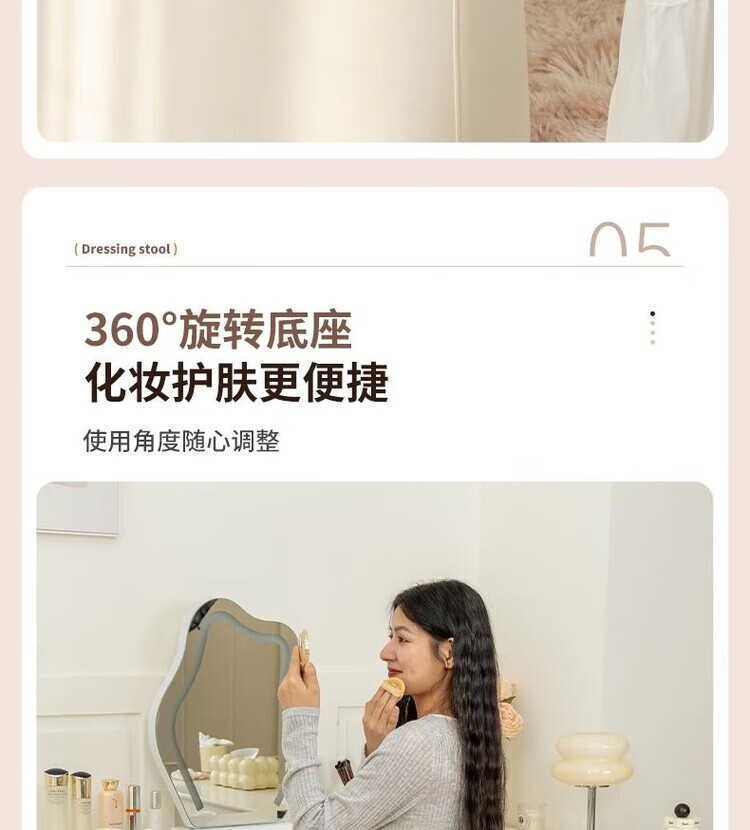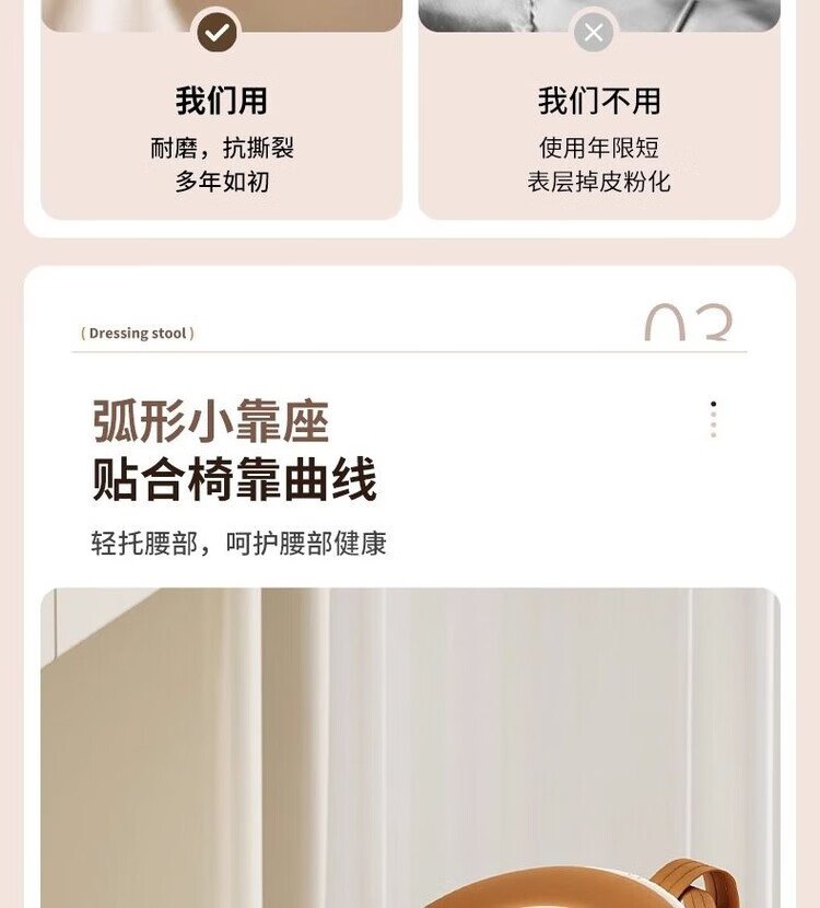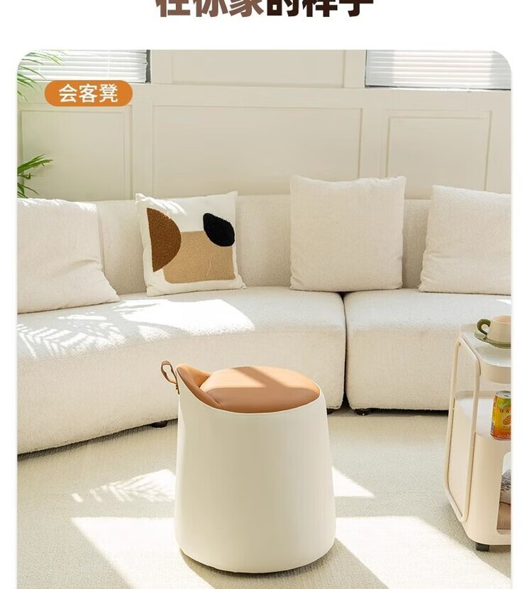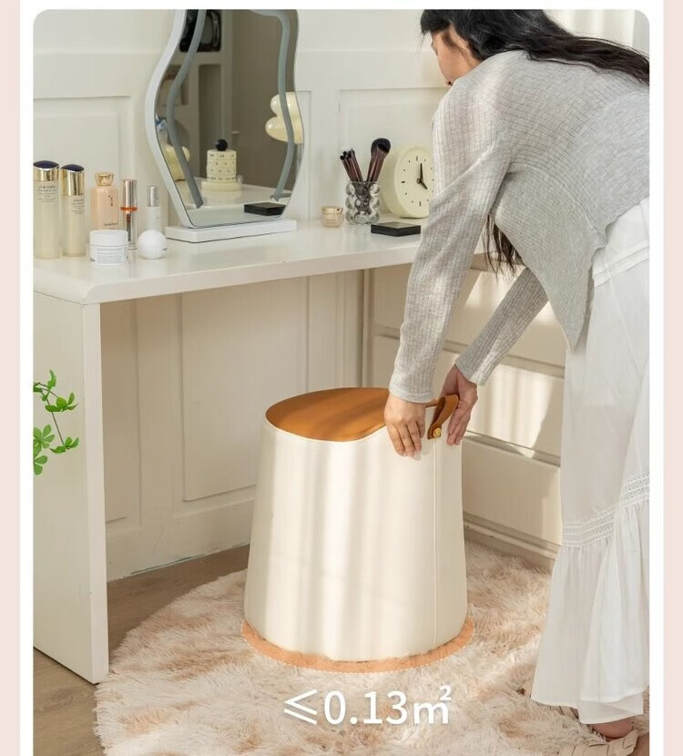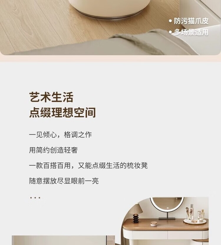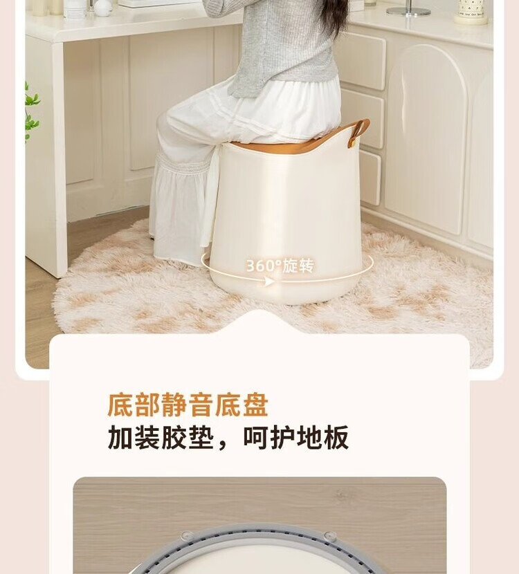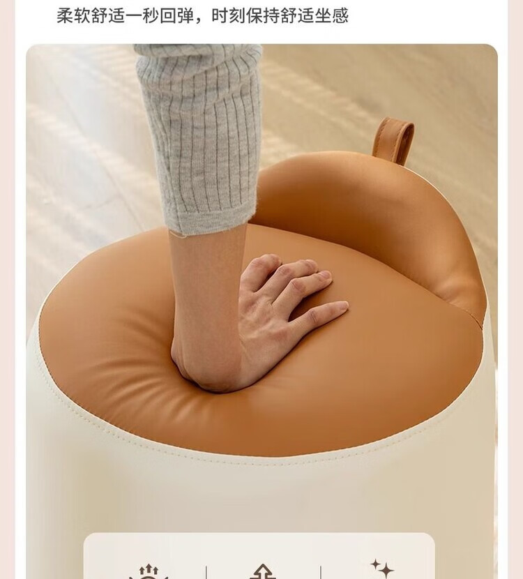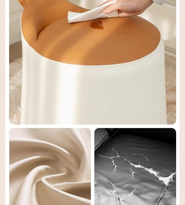 Xiaomi Master Bedroom Girls Makeup Stool Bedroom Dressing Stool Rotating Makeup Chair Italian Minimalist Round Stool Light Luxurious and High-end Fixed Style Cat Scratch Leather Beige + Orange